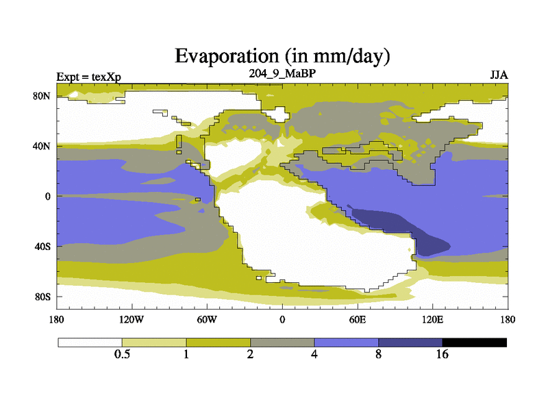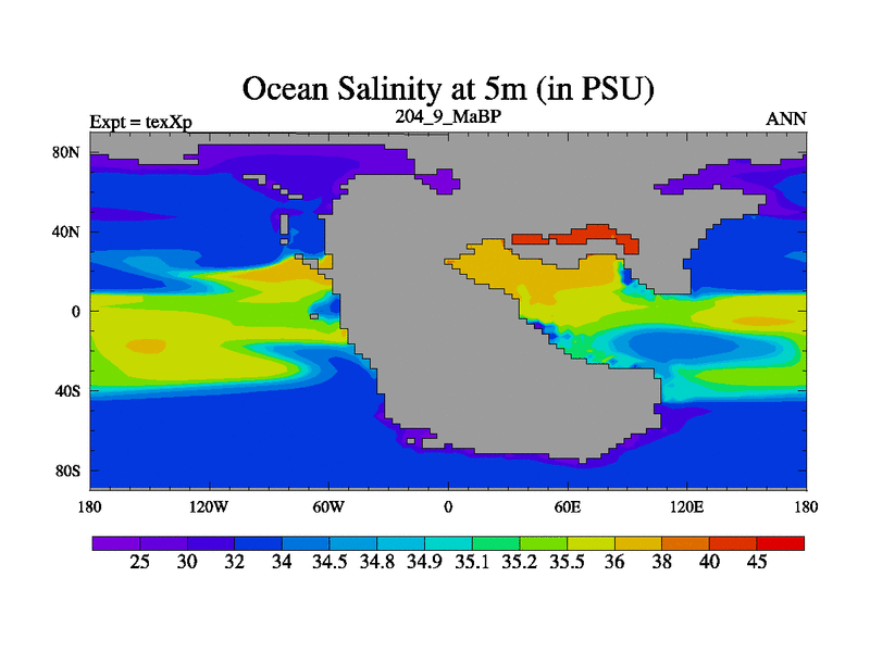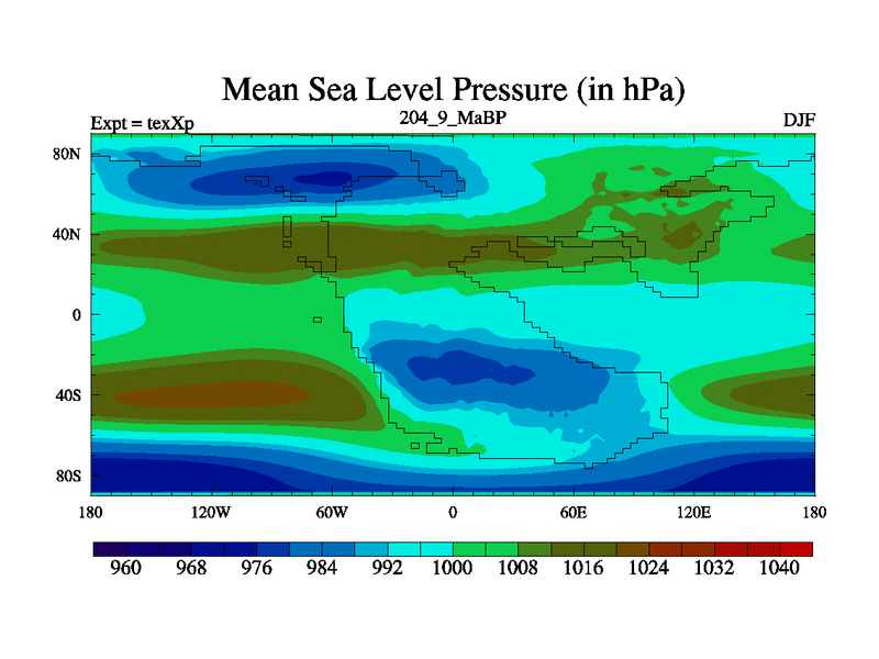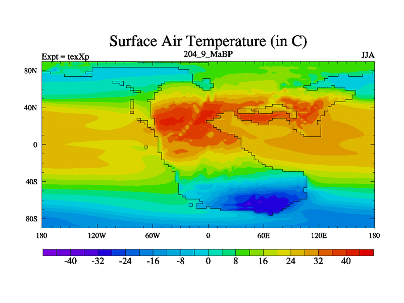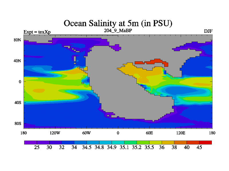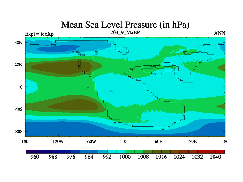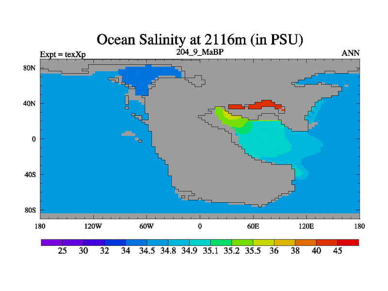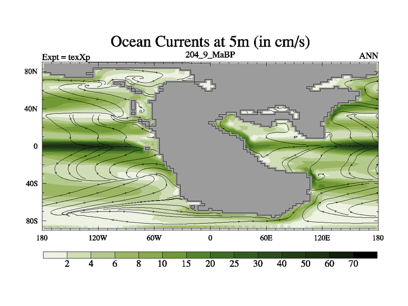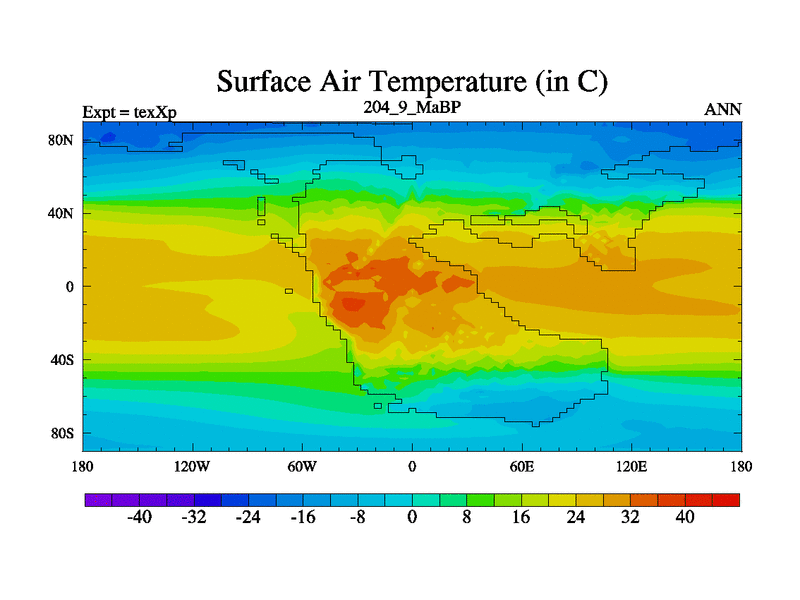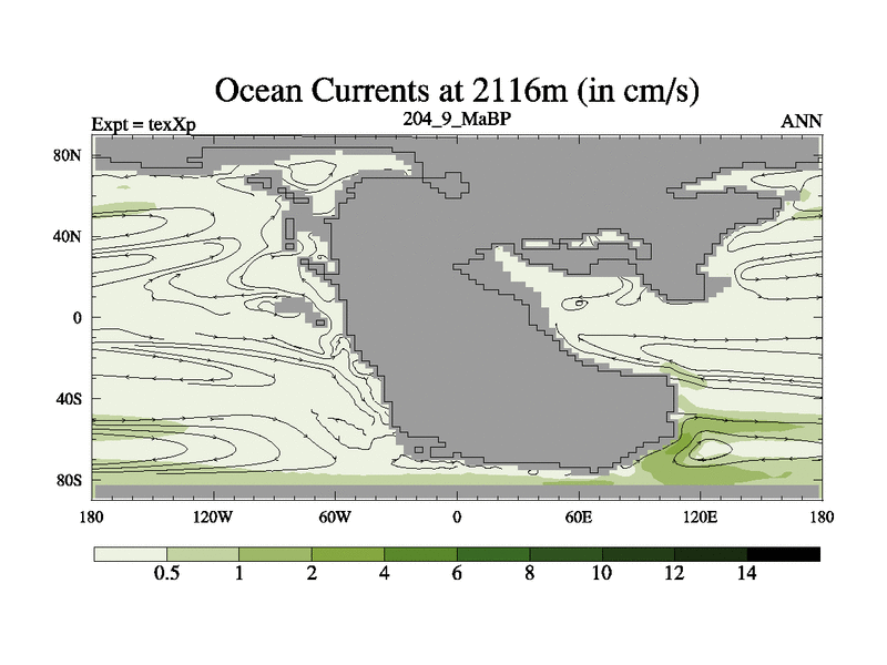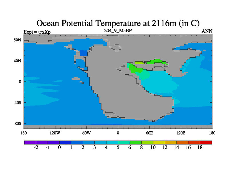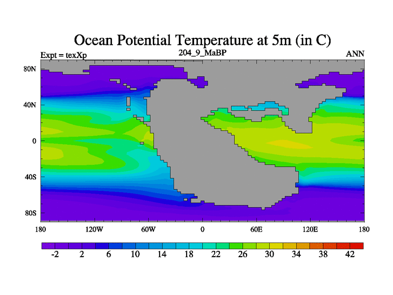 This is the 204.9 Ma simulation using the Scotese palaeogeographies.