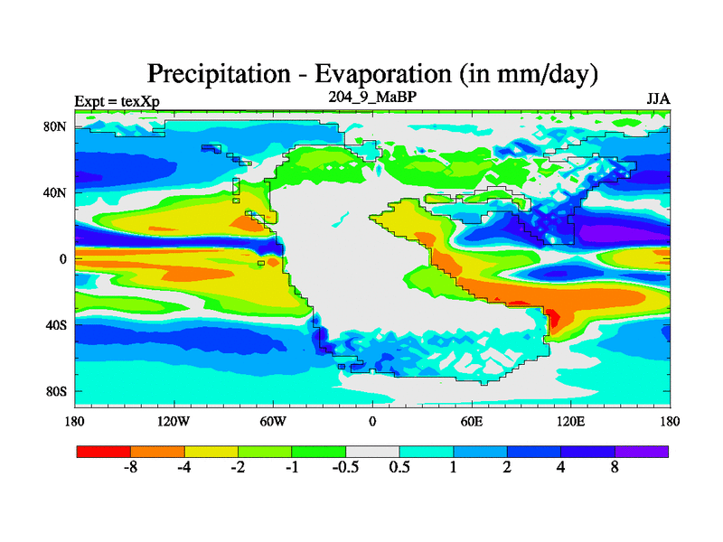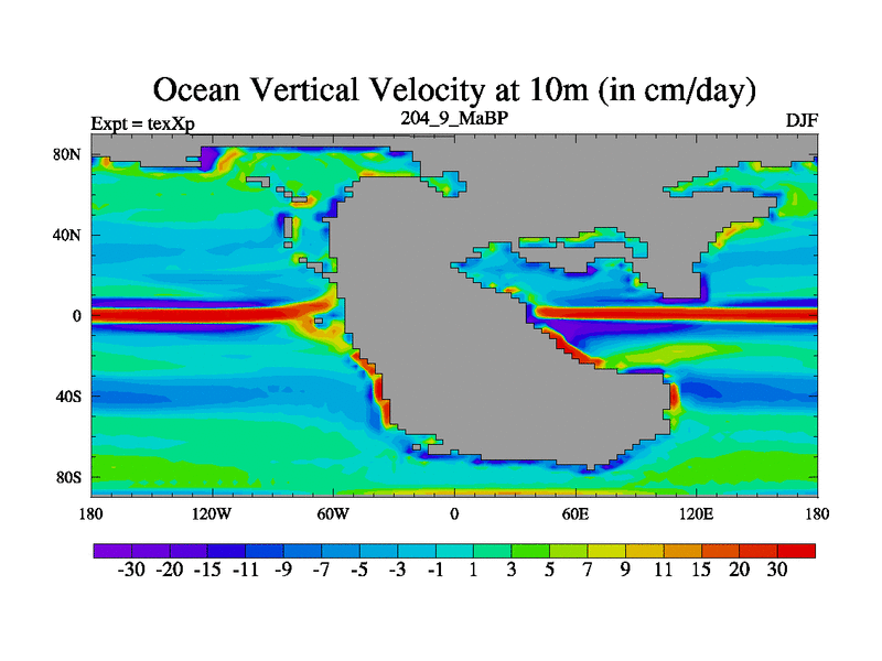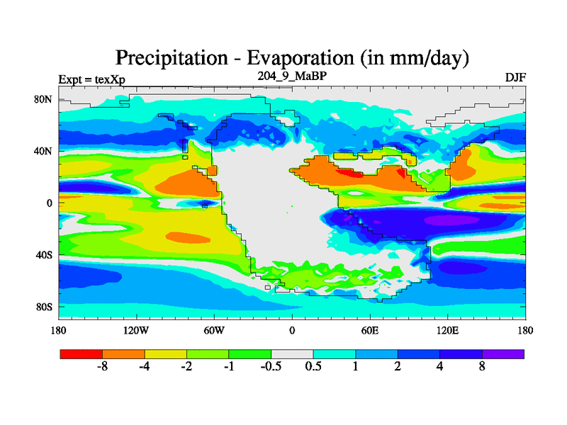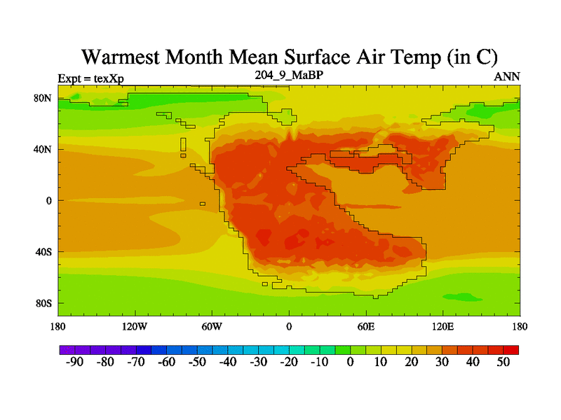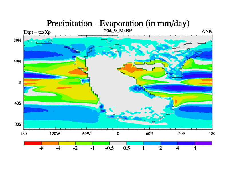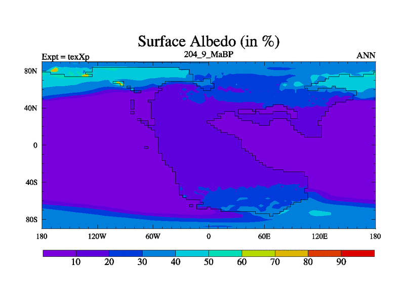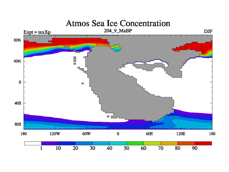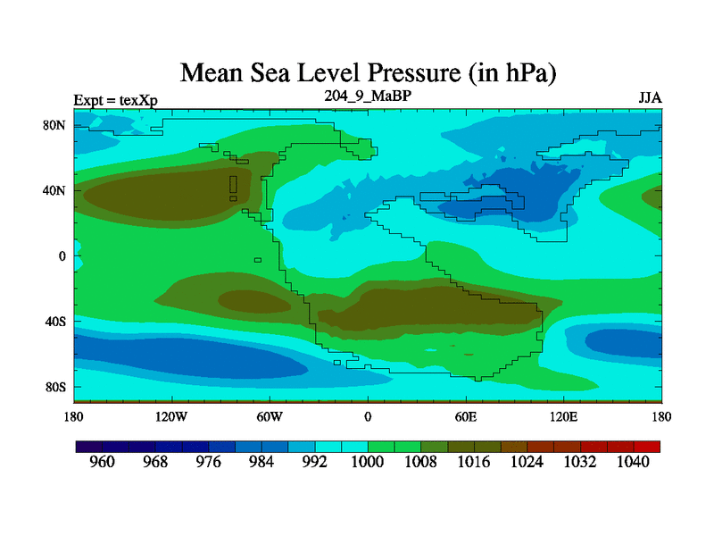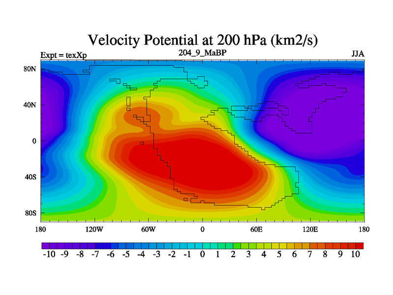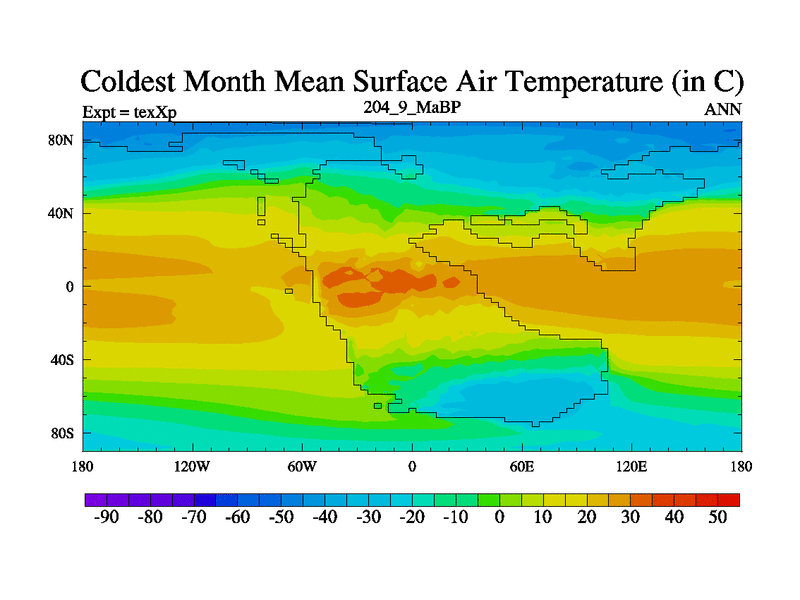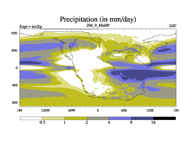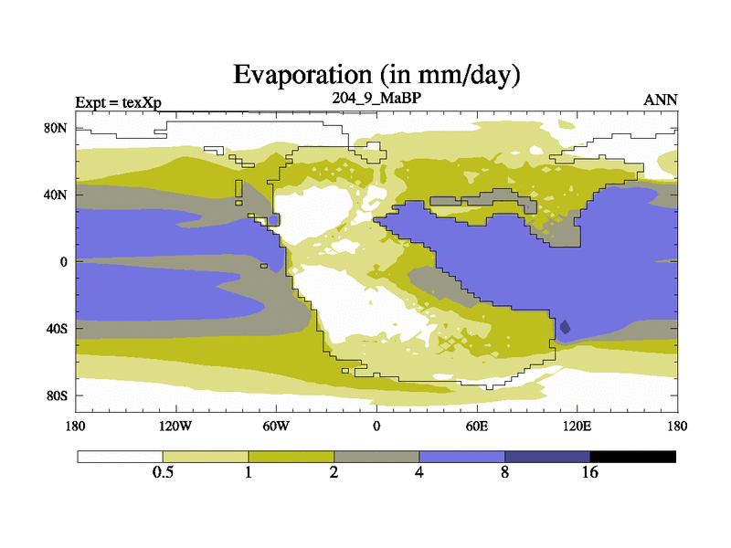 This is the 204.9 Ma simulation using the Scotese palaeogeographies.