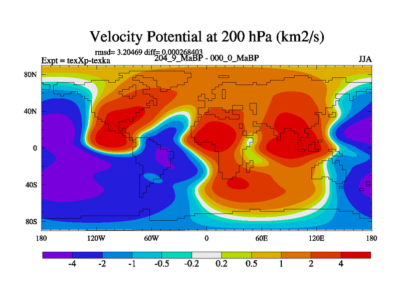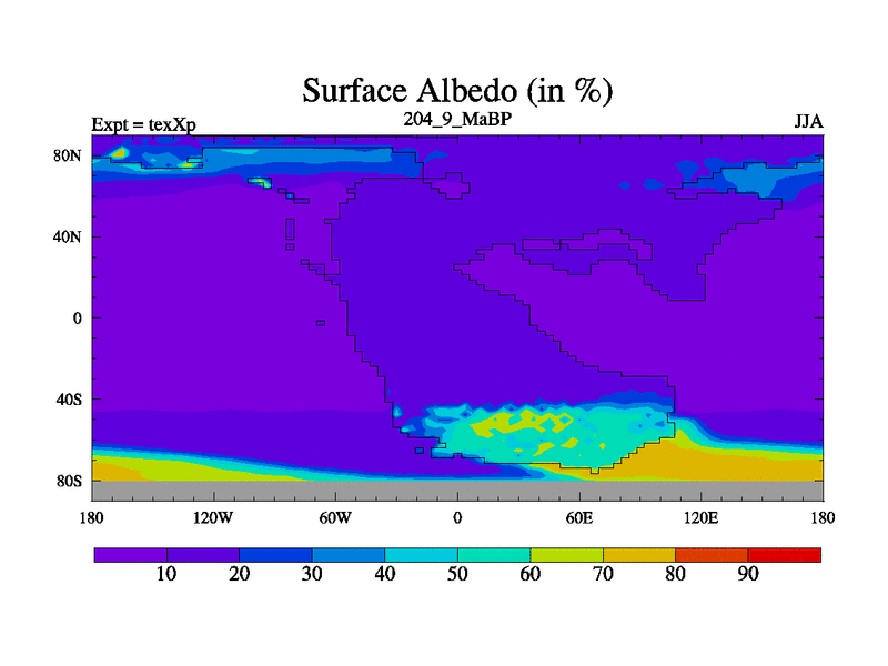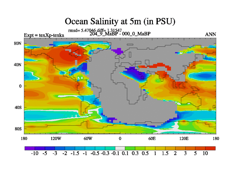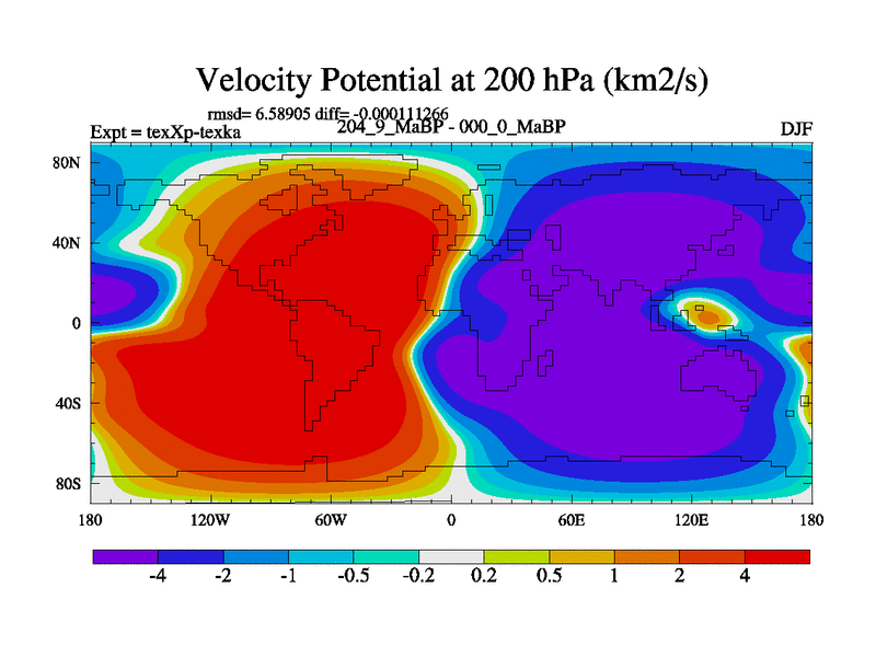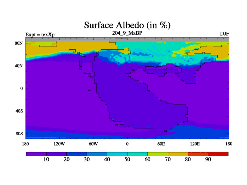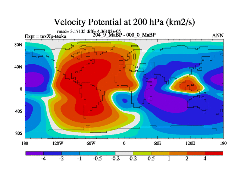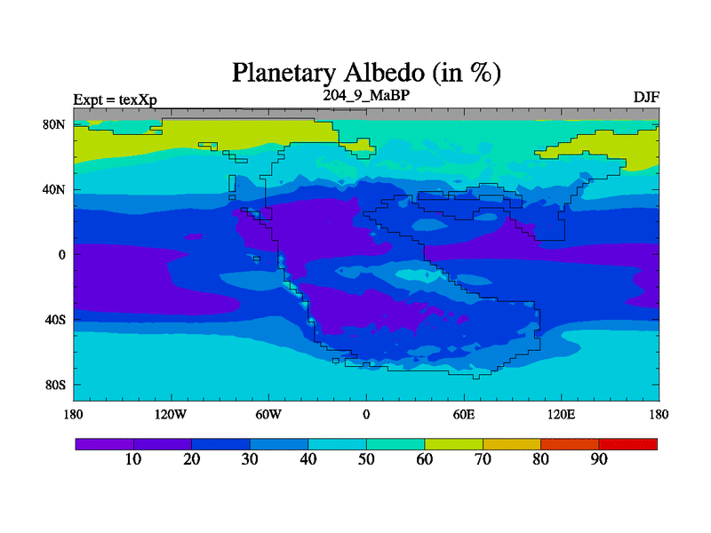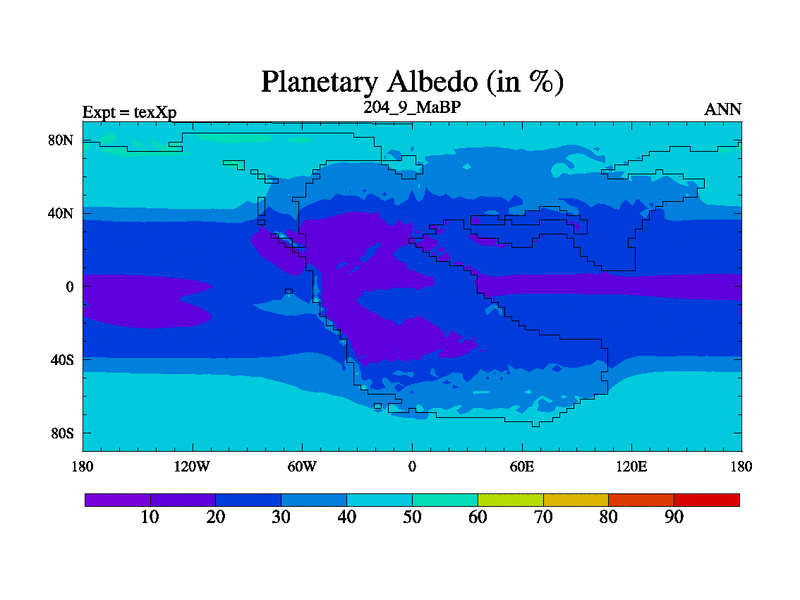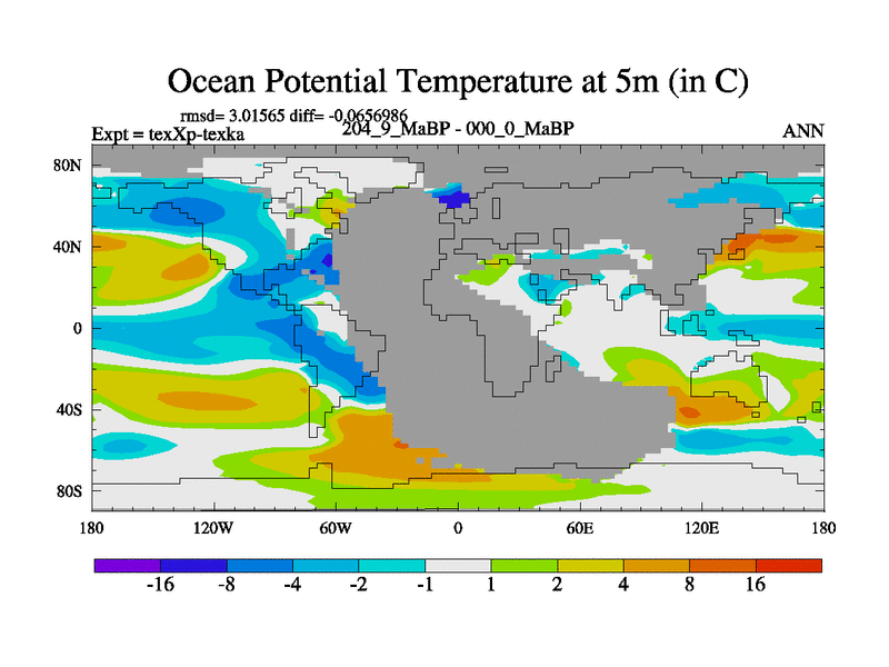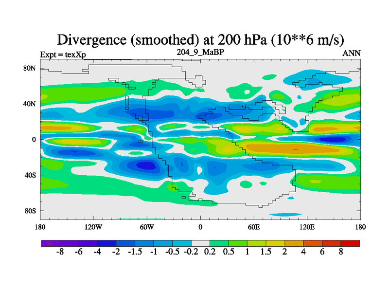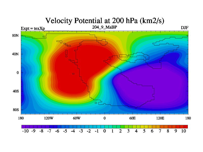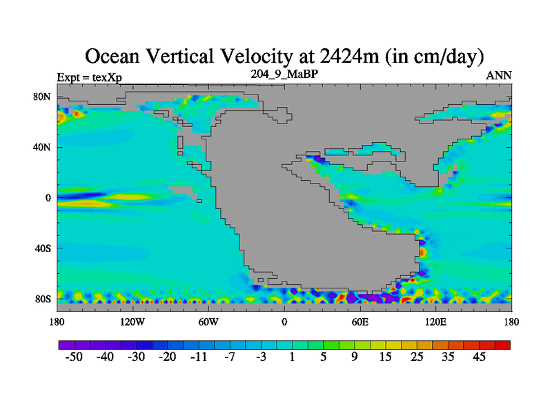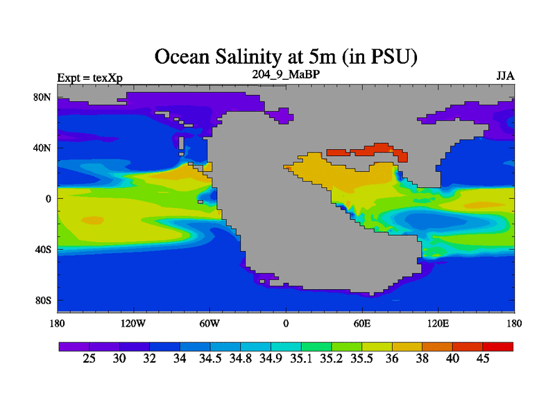 This is the 204.9 Ma simulation using the Scotese palaeogeographies.