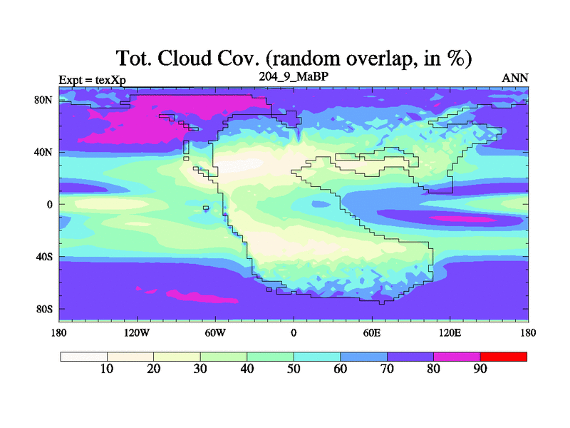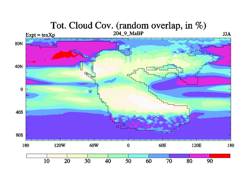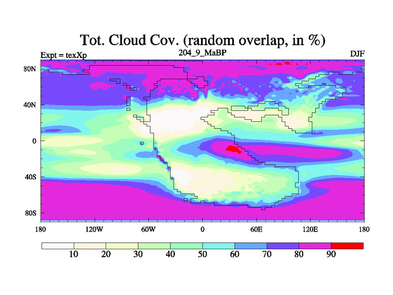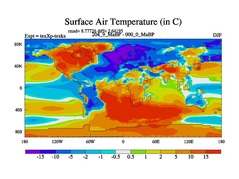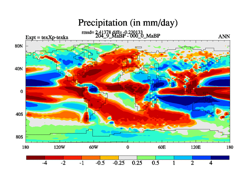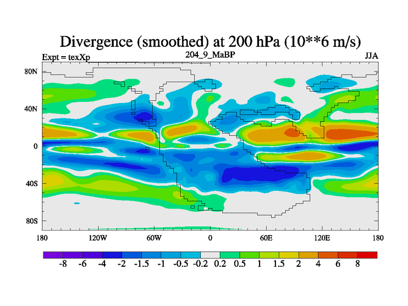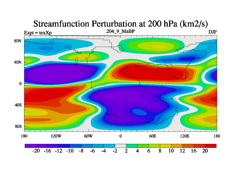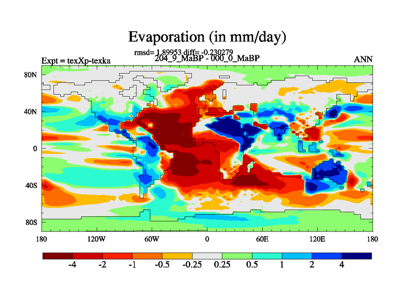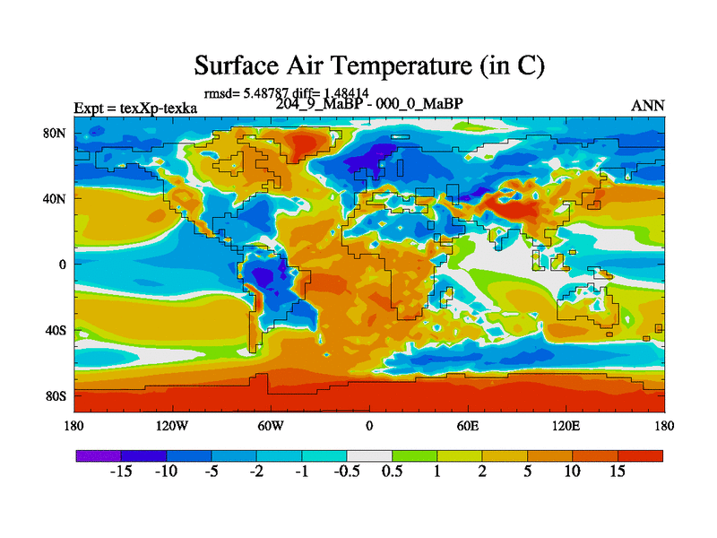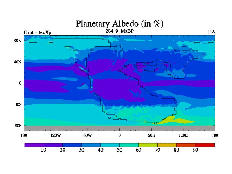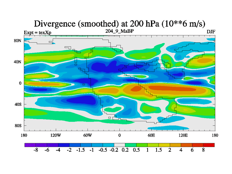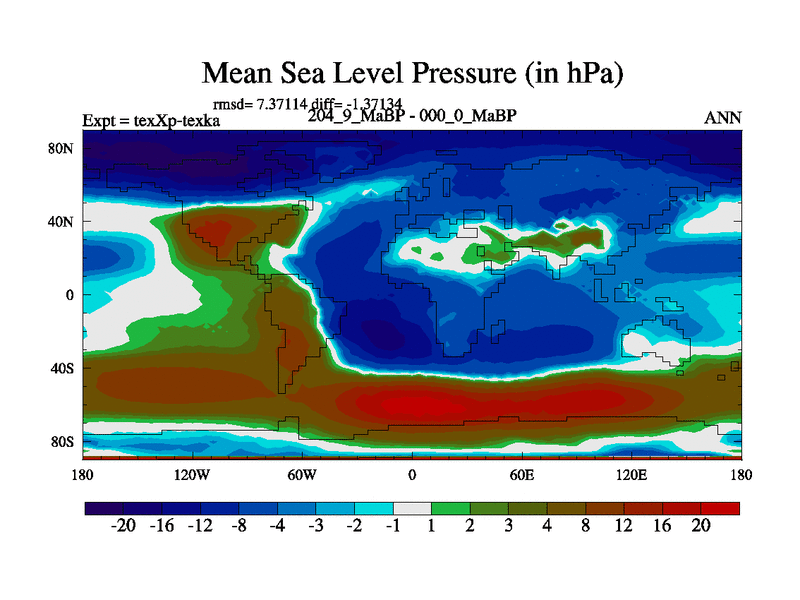 This is the 204.9 Ma simulation using the Scotese palaeogeographies.