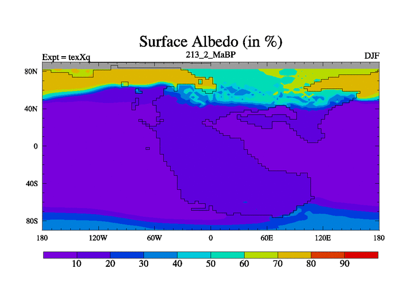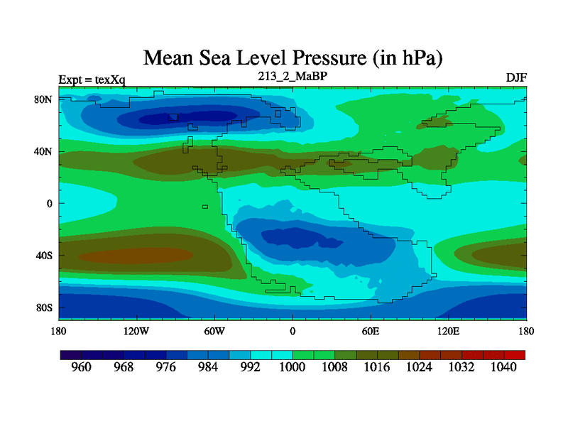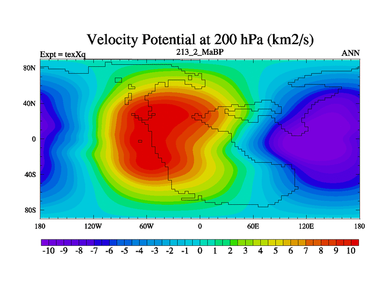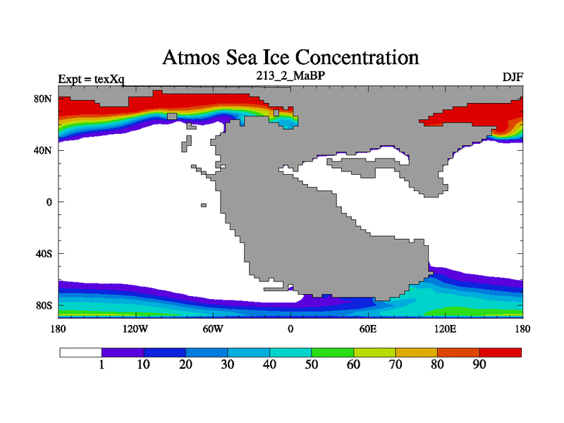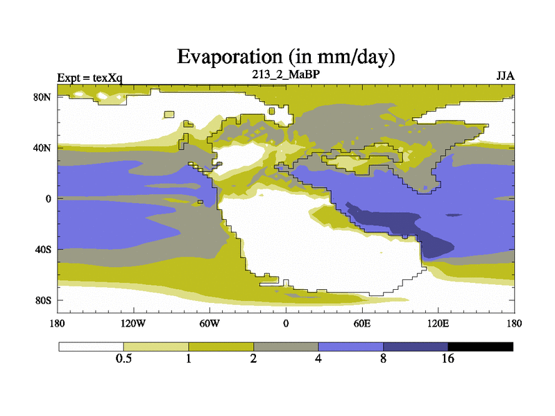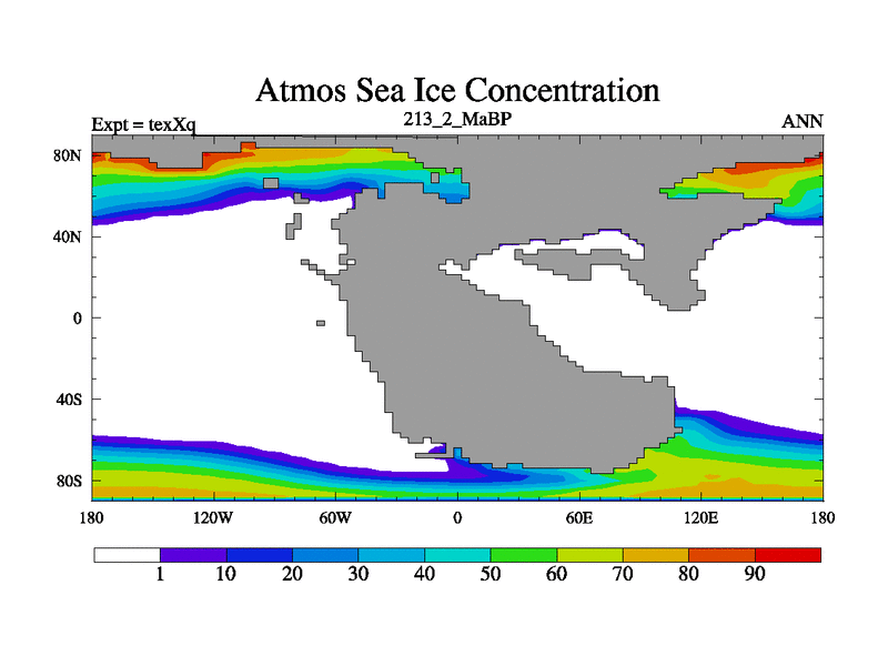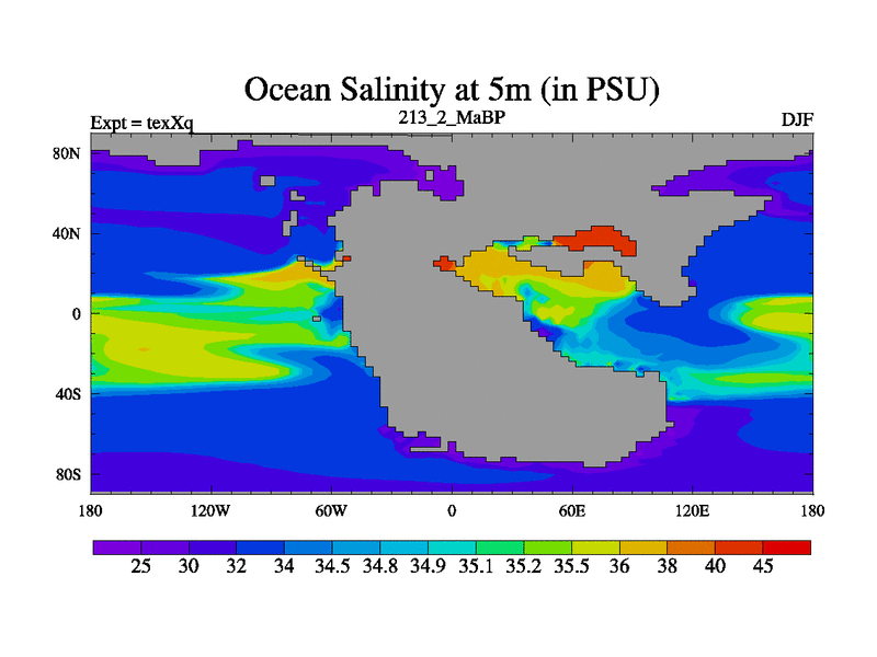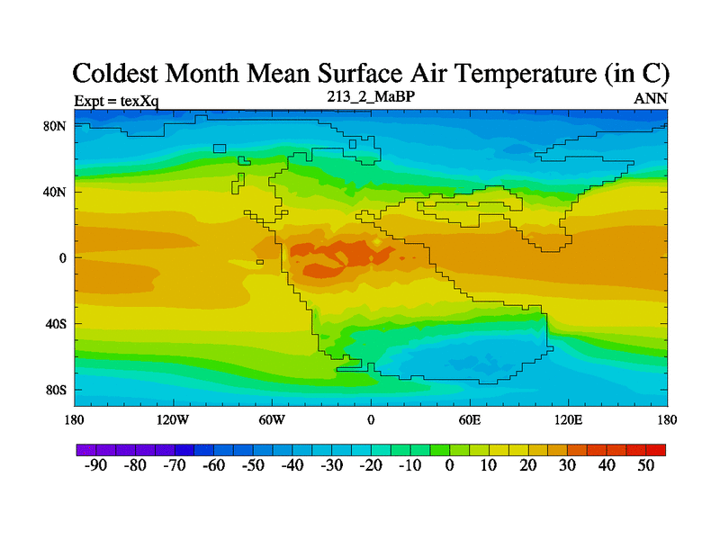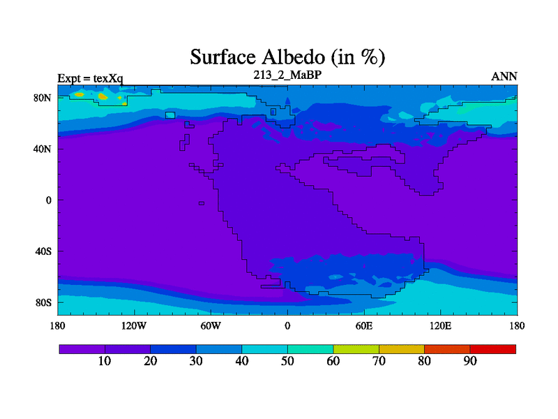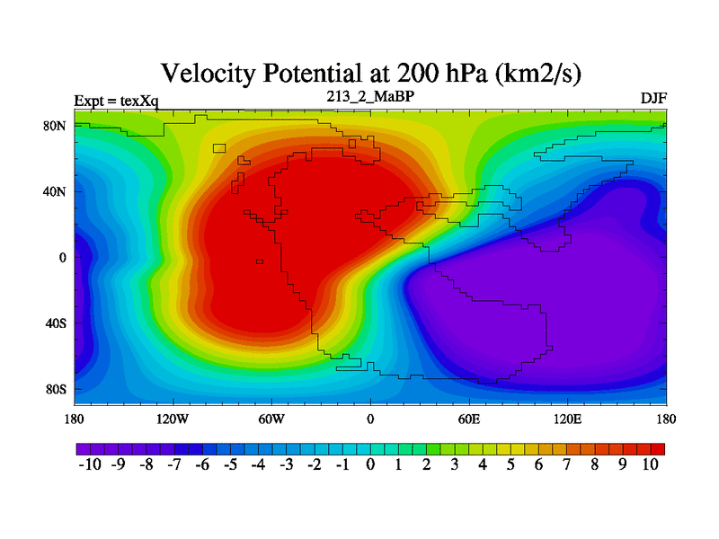 This is the 213.2 Ma simulation using the Scotese palaeogeographies.