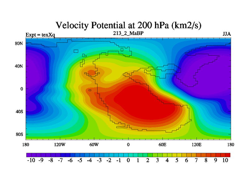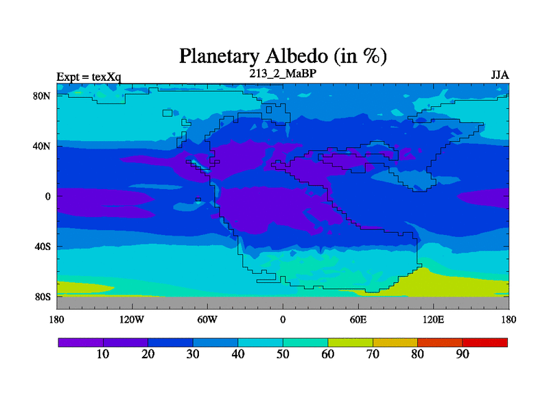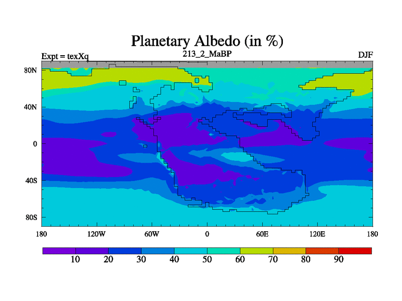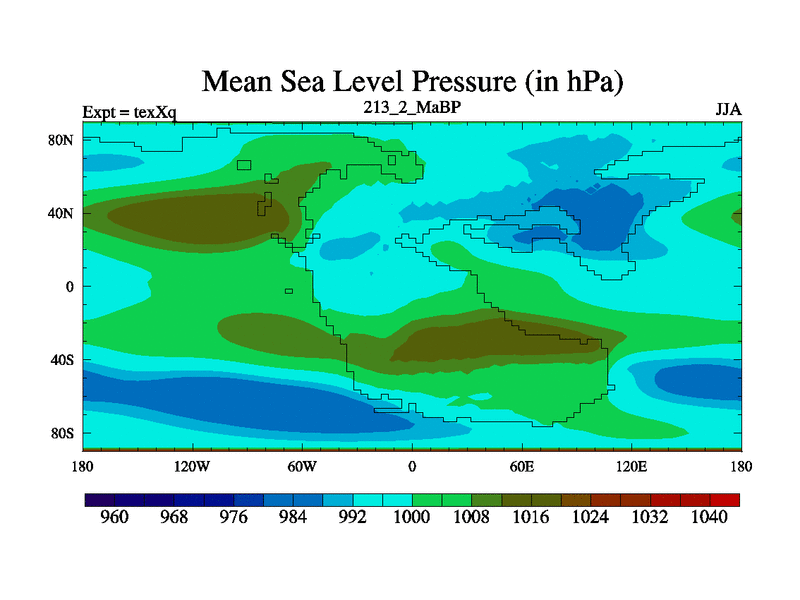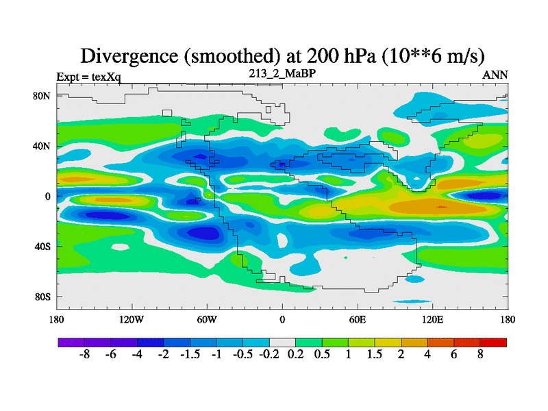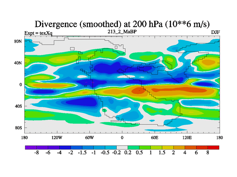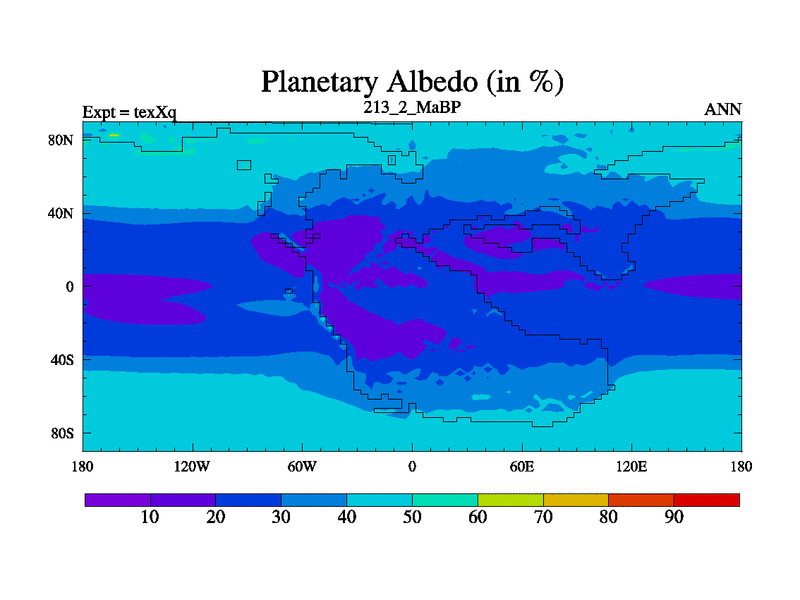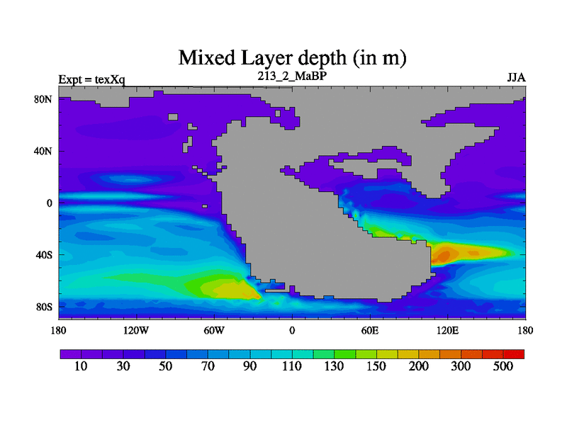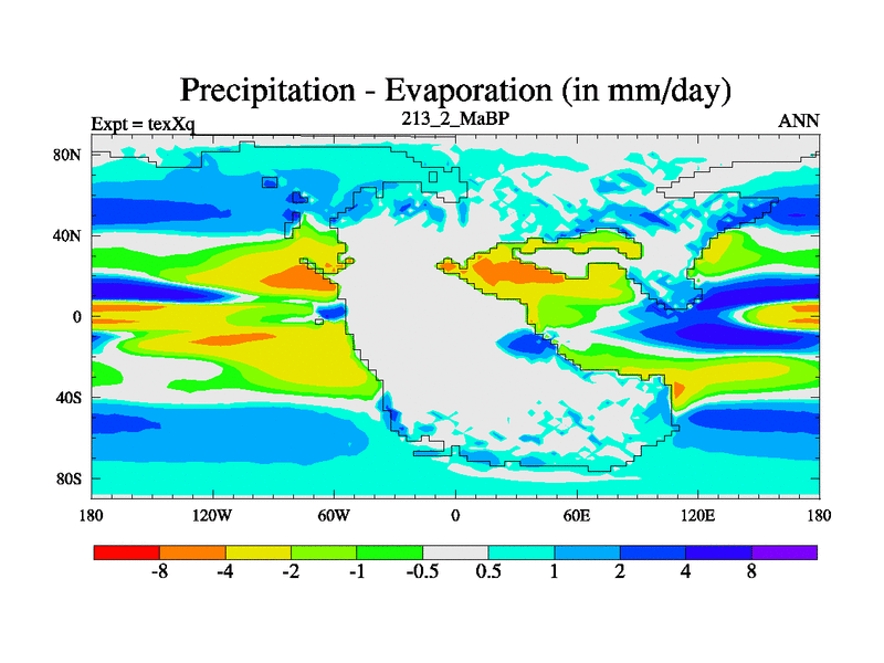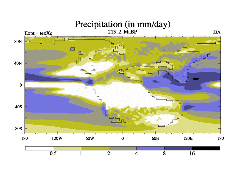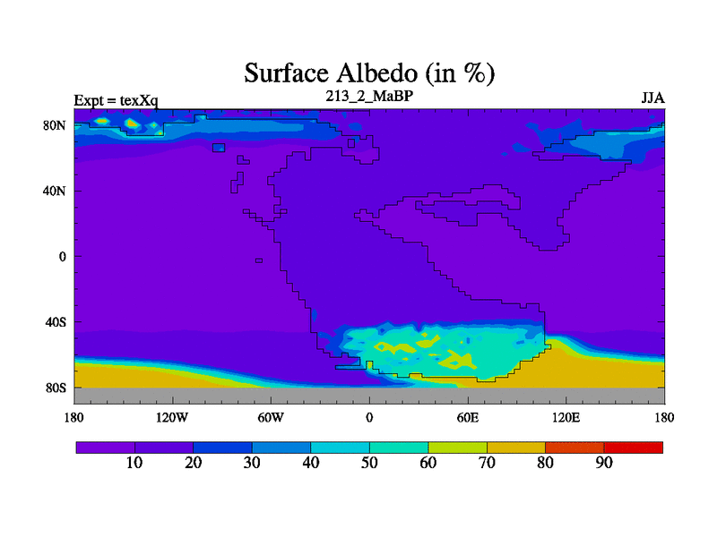 This is the 213.2 Ma simulation using the Scotese palaeogeographies.