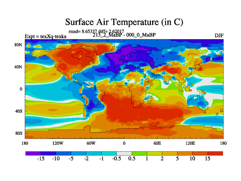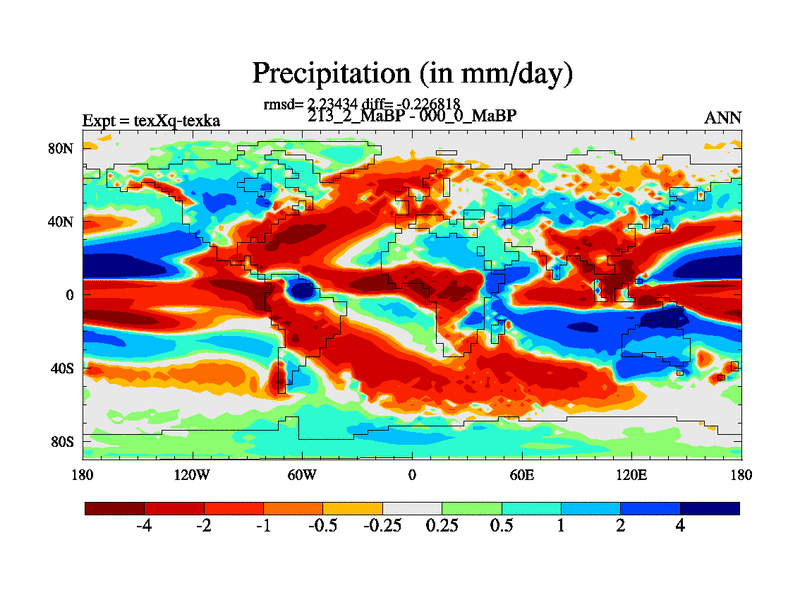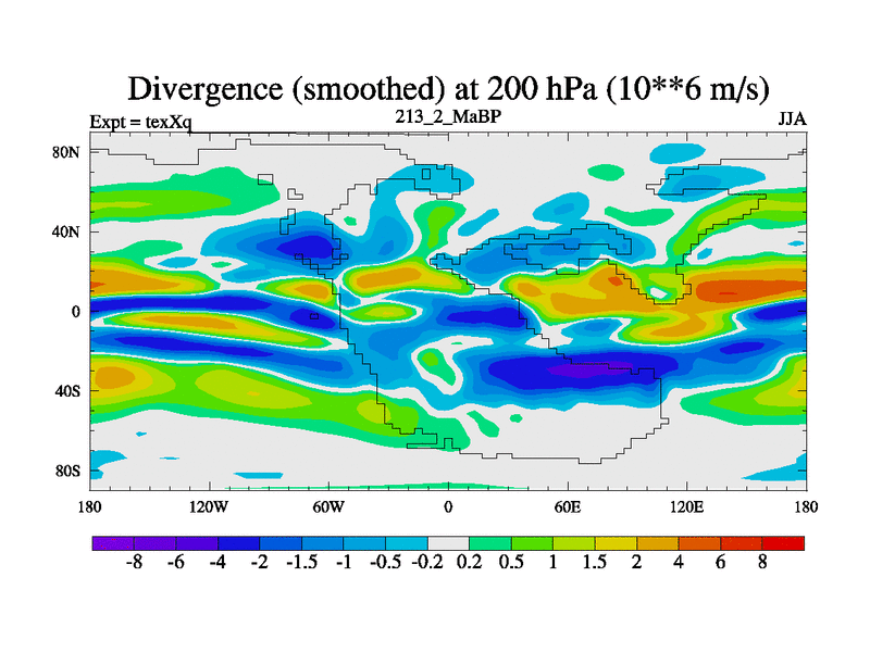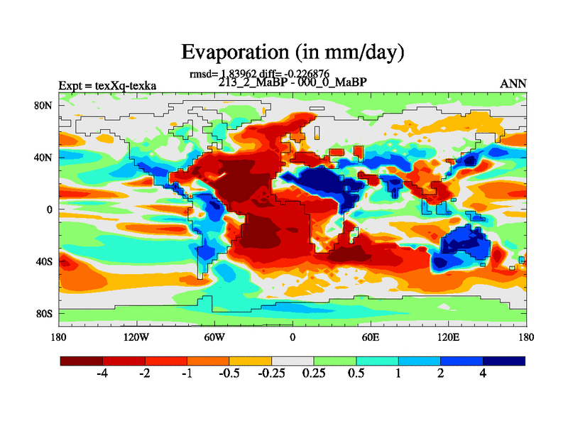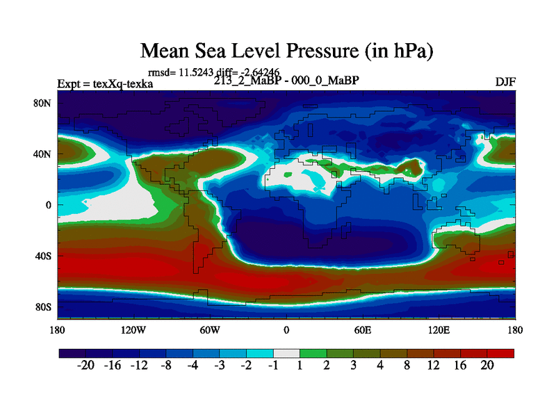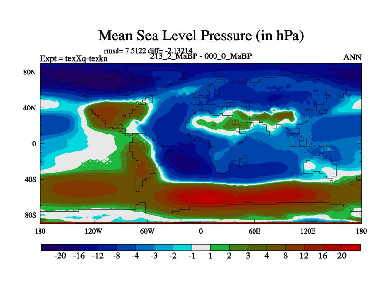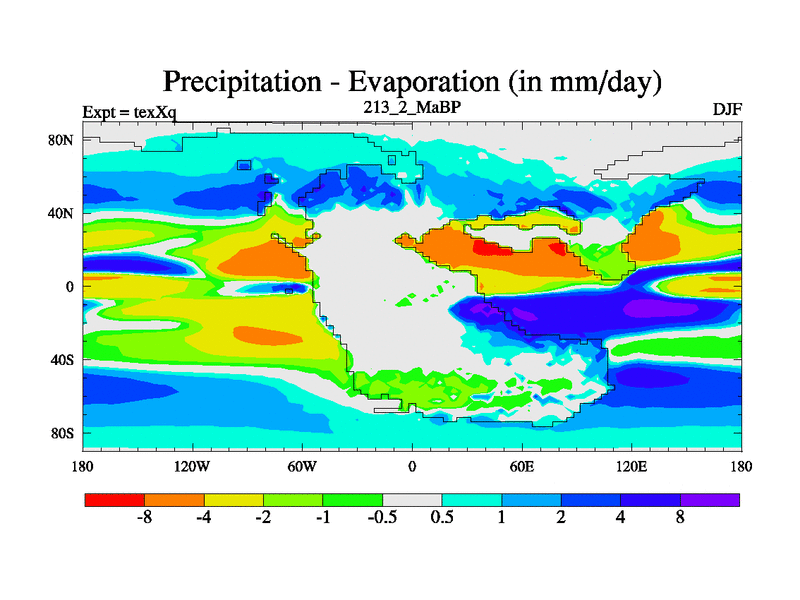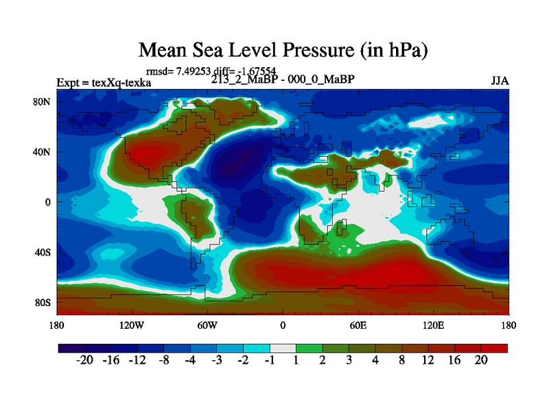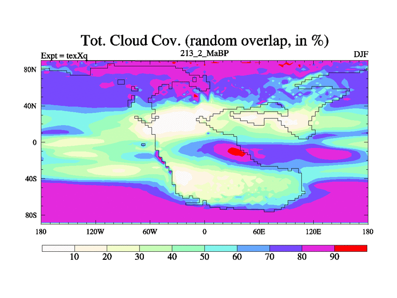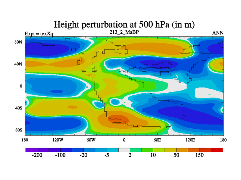 This is the 213.2 Ma simulation using the Scotese palaeogeographies.