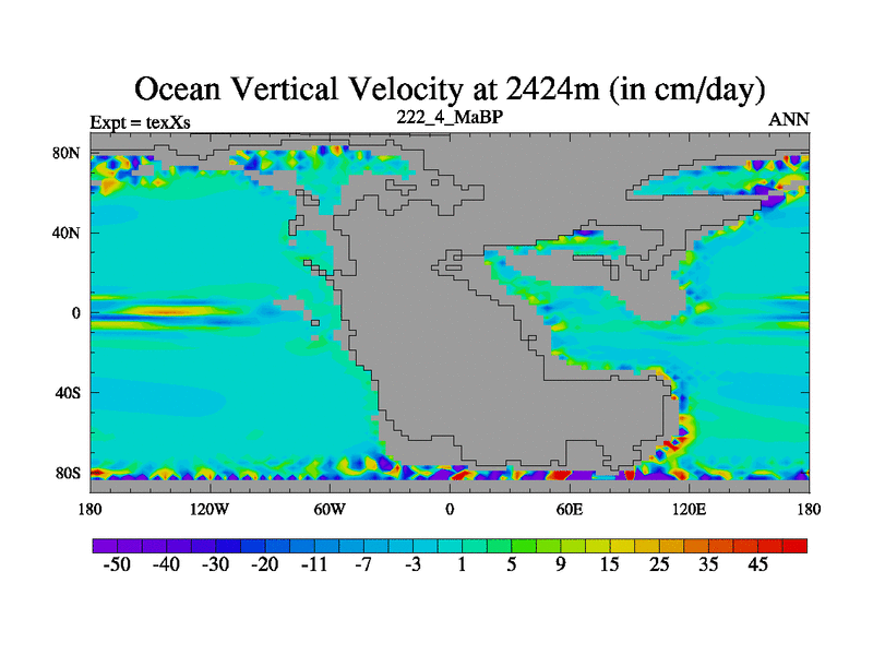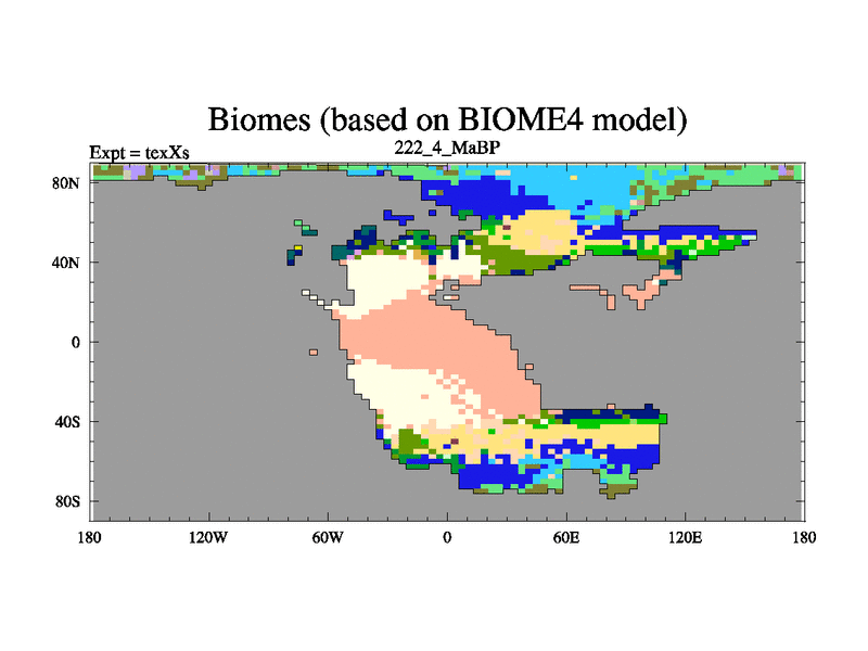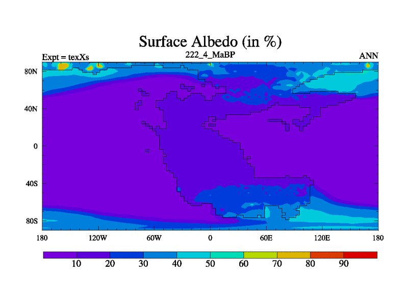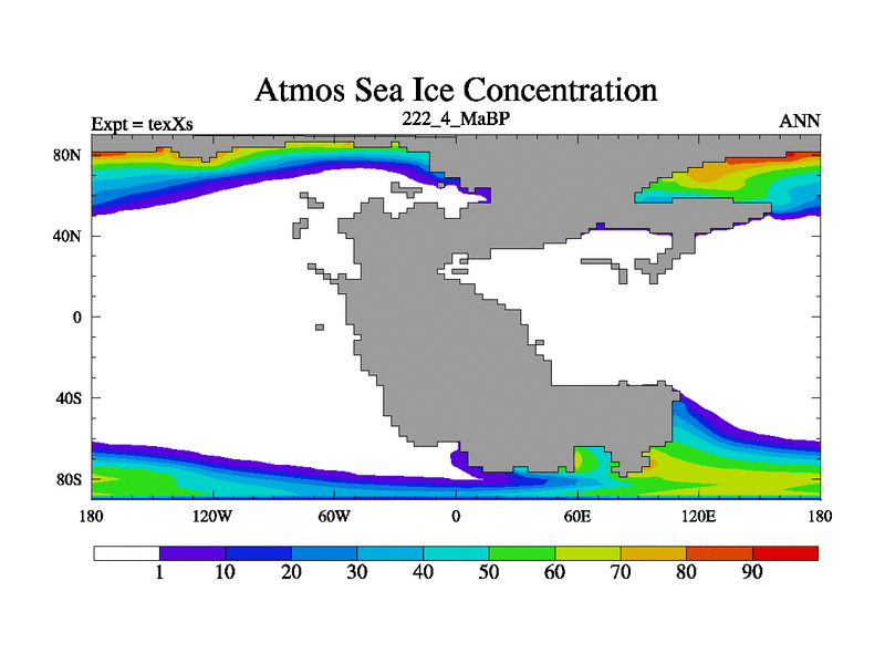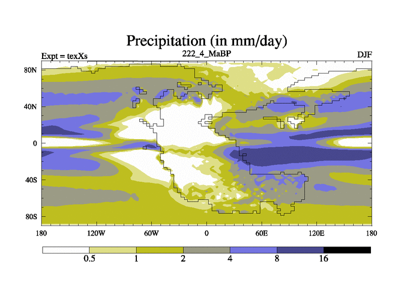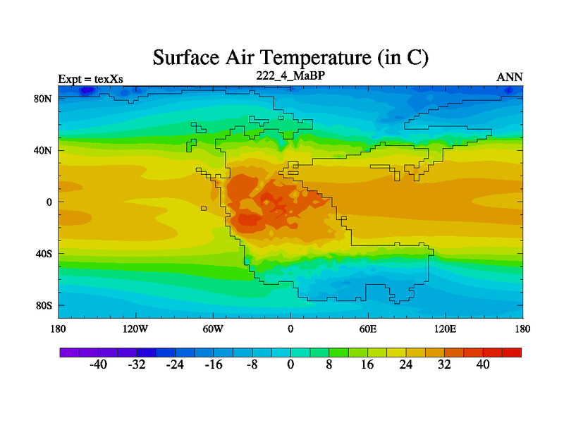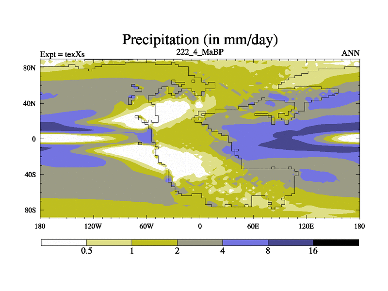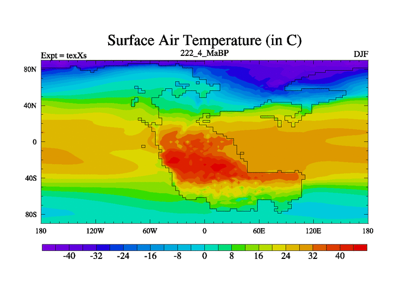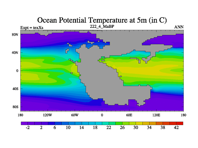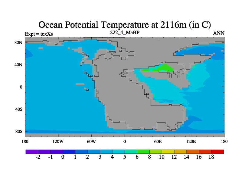 This is the 222.4 Ma simulation using the Scotese palaeogeographies.