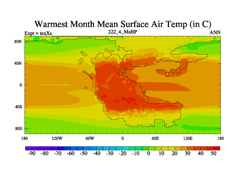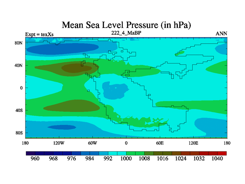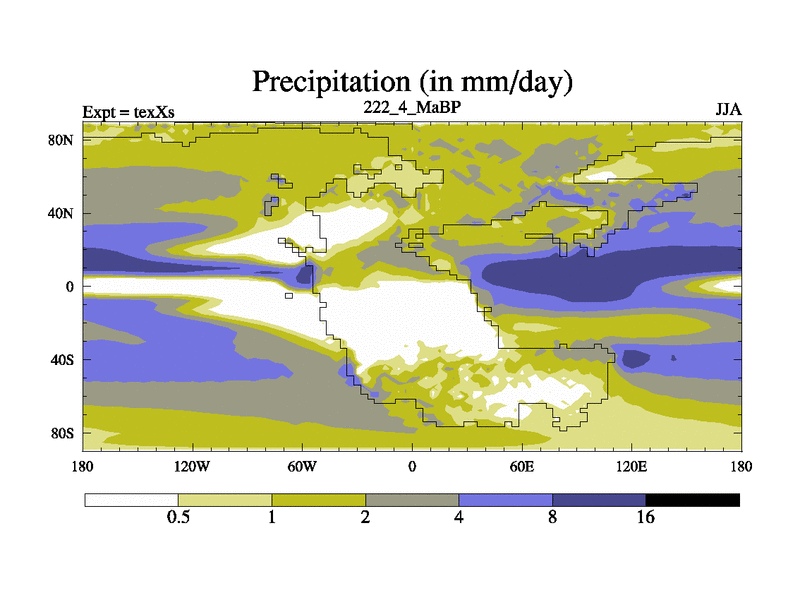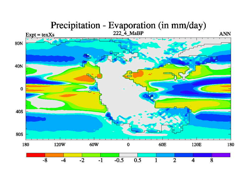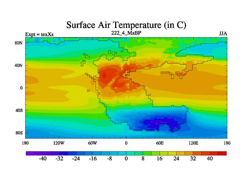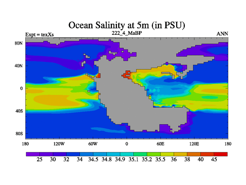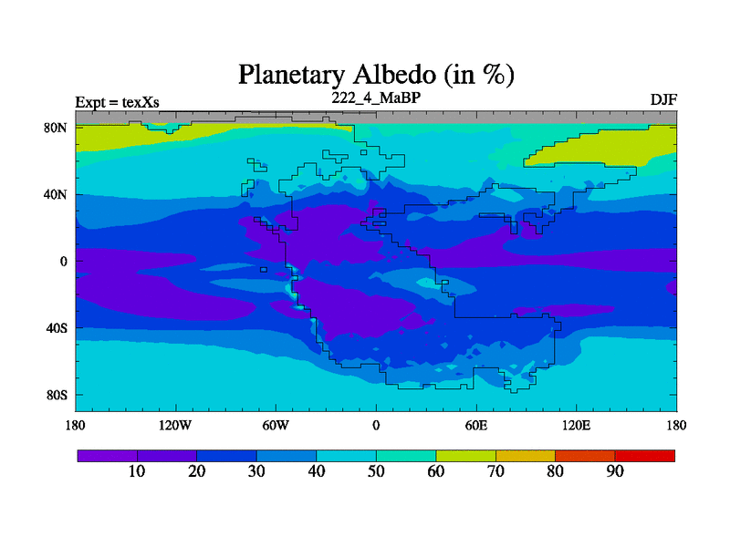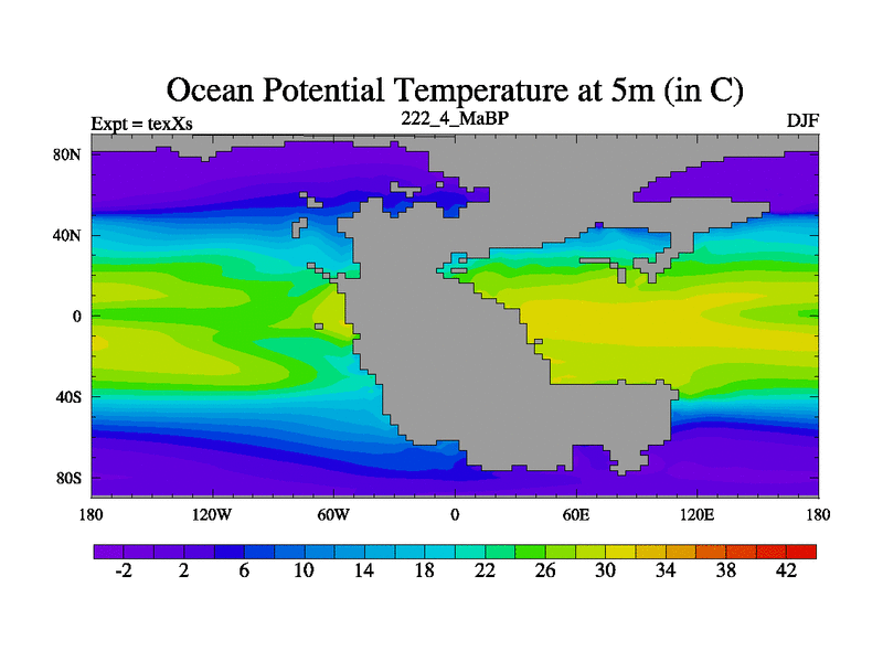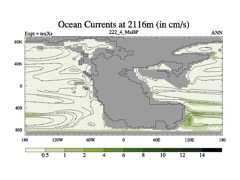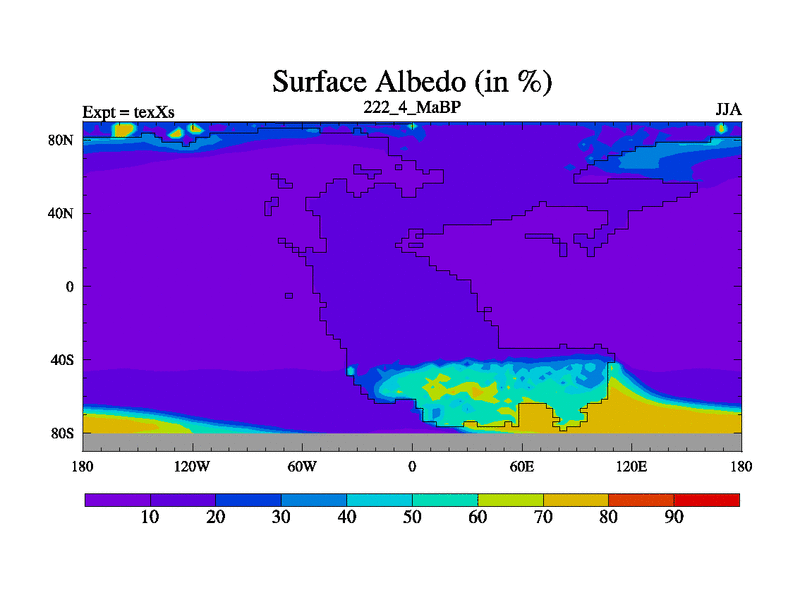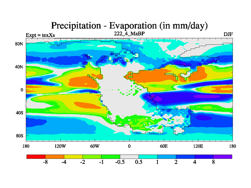 This is the 222.4 Ma simulation using the Scotese palaeogeographies.