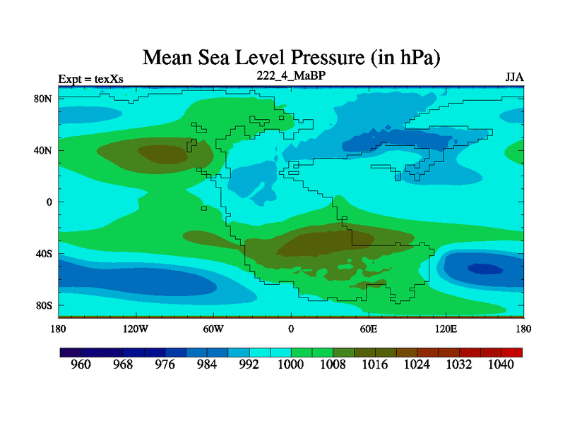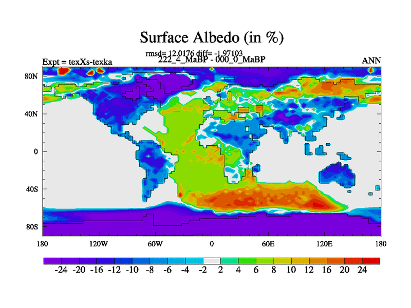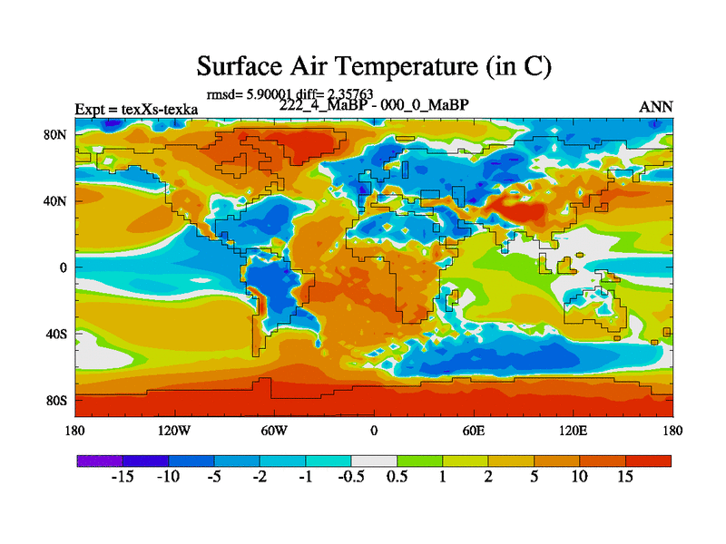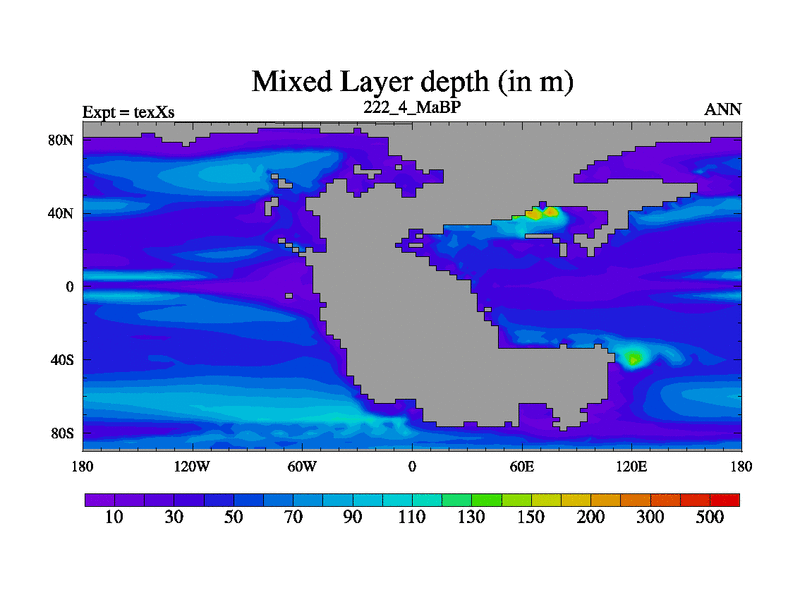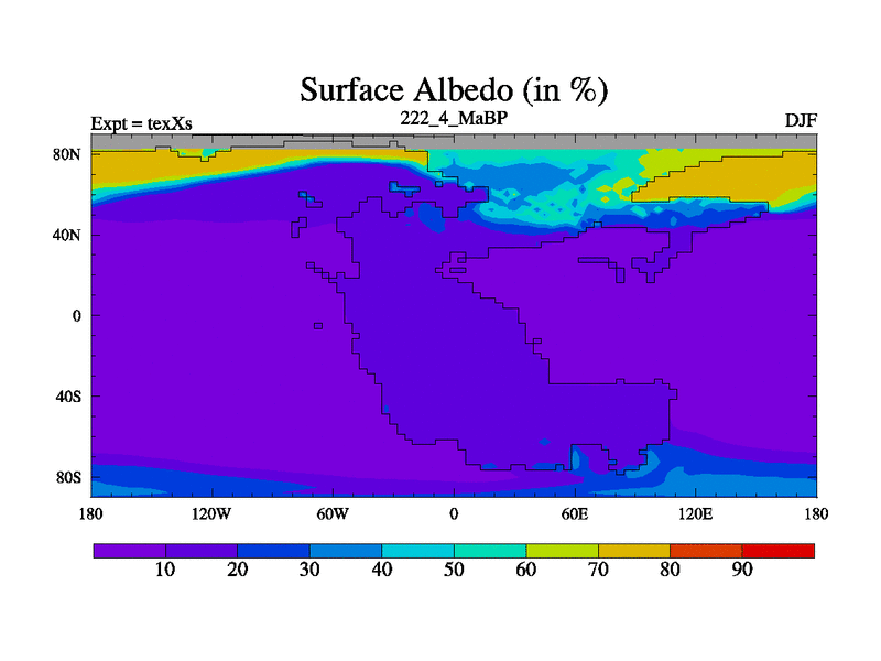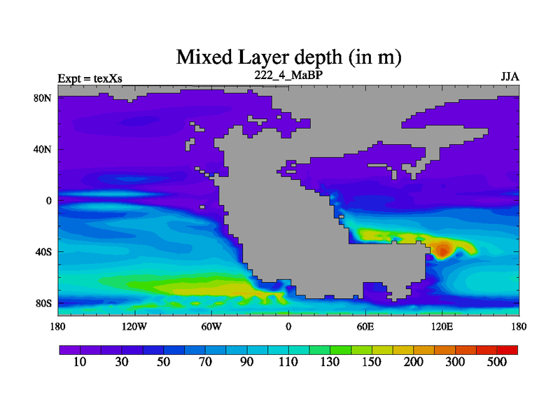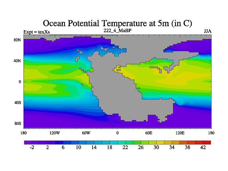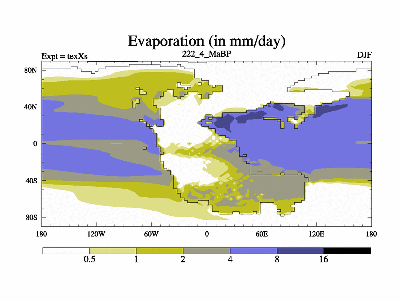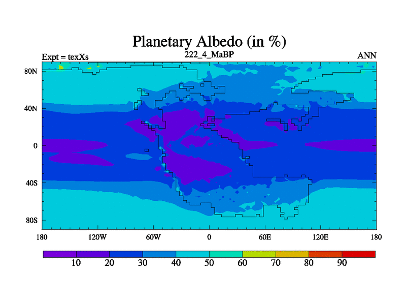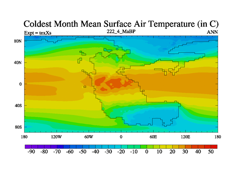 This is the 222.4 Ma simulation using the Scotese palaeogeographies.