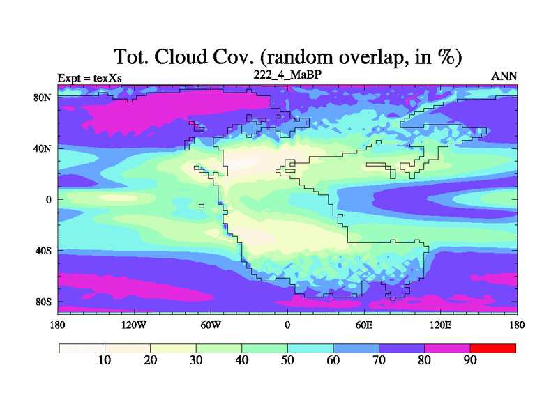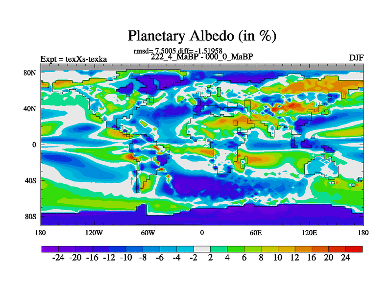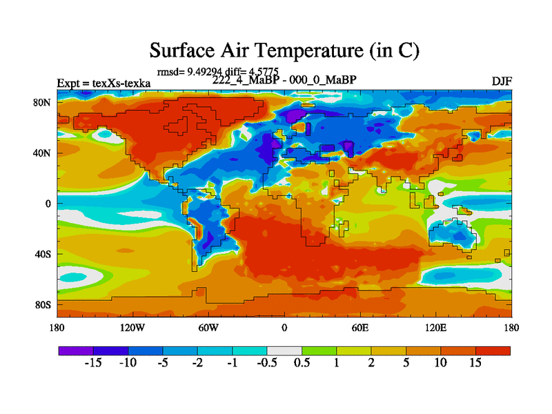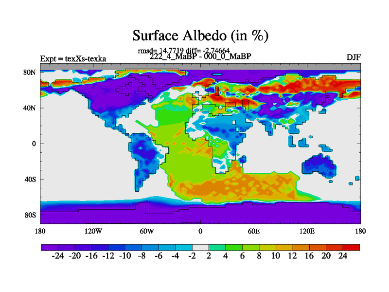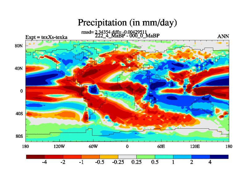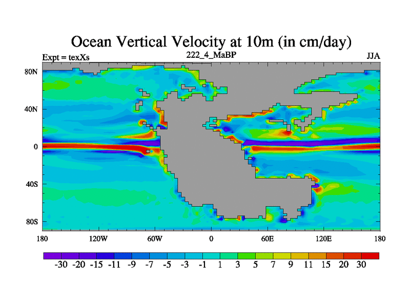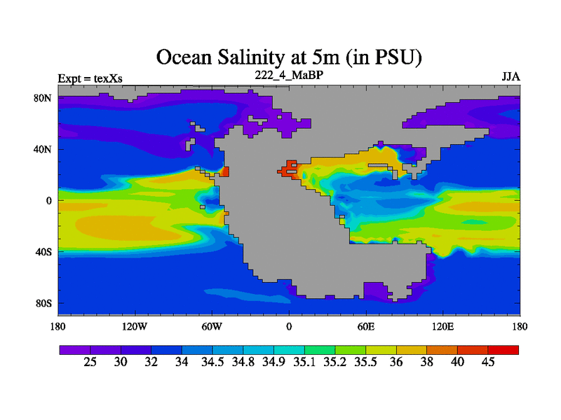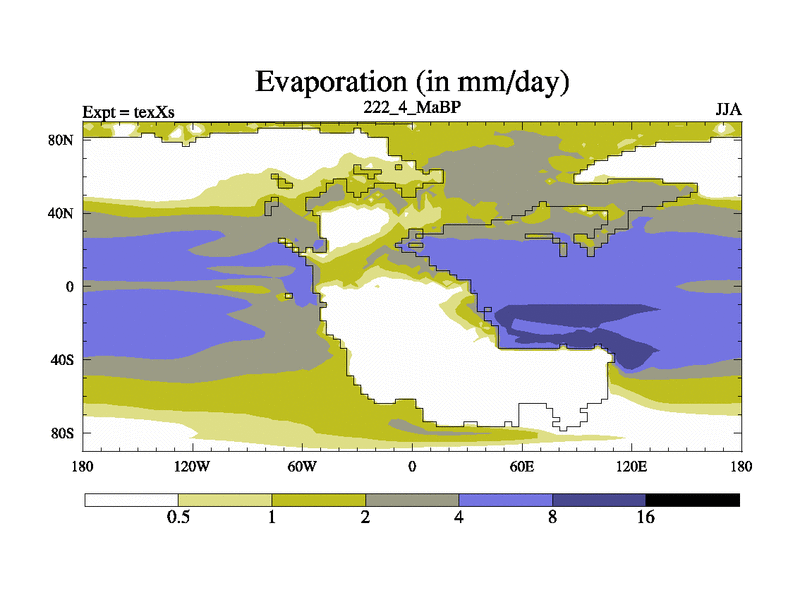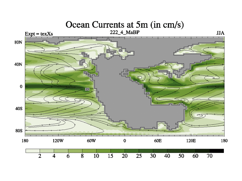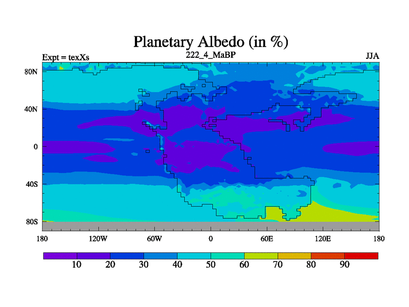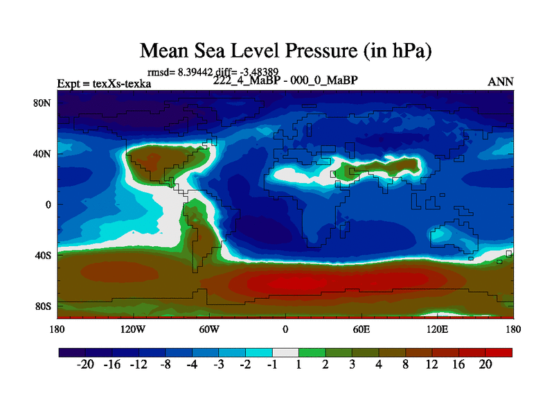 This is the 222.4 Ma simulation using the Scotese palaeogeographies.