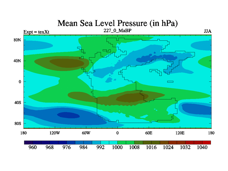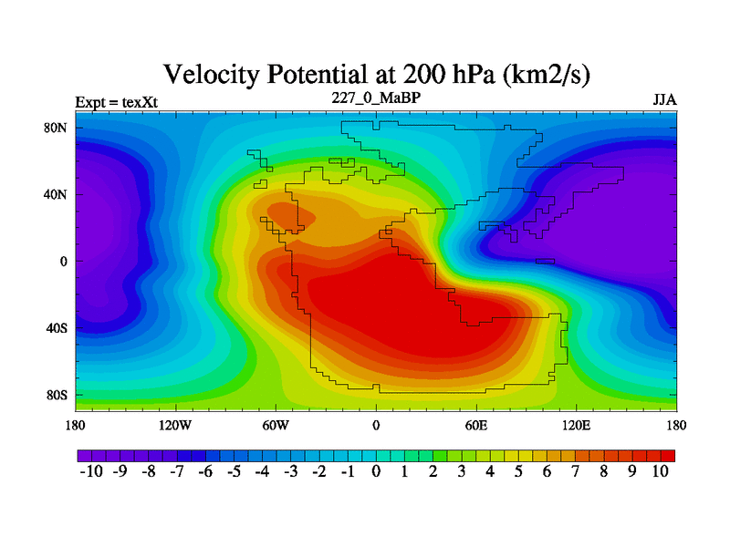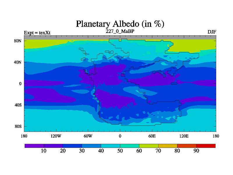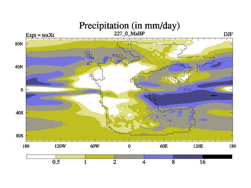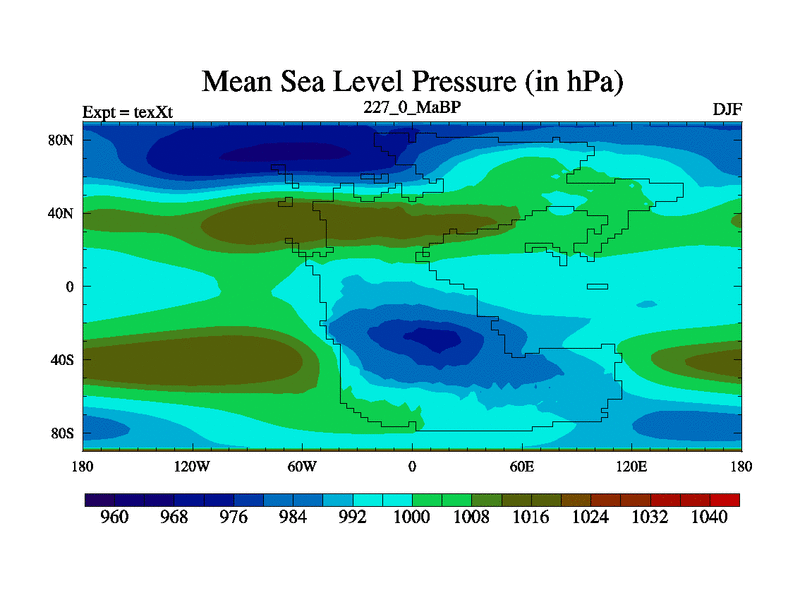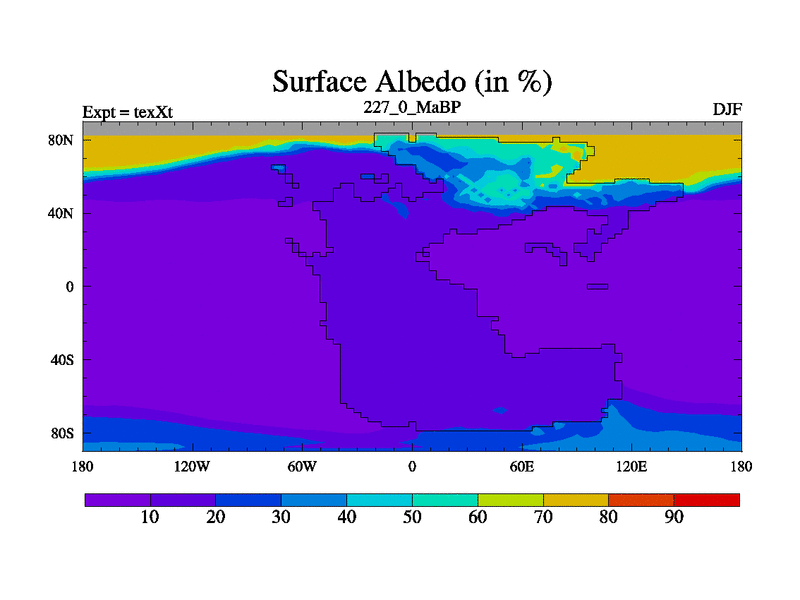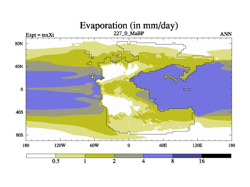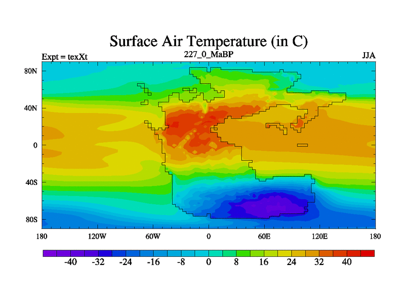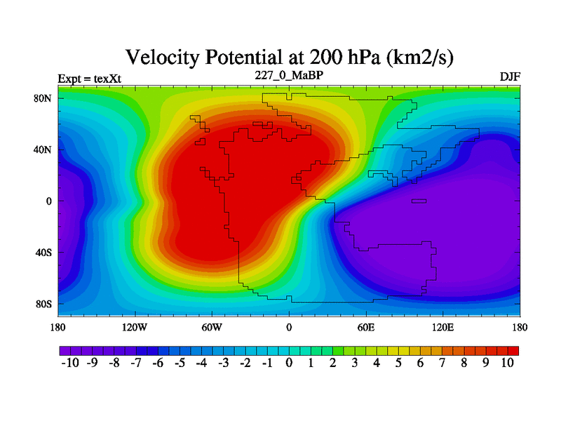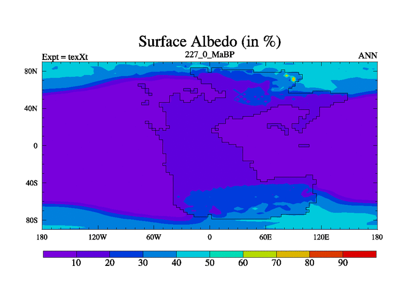 This is the 227.0 Ma simulation using the Scotese palaeogeographies.