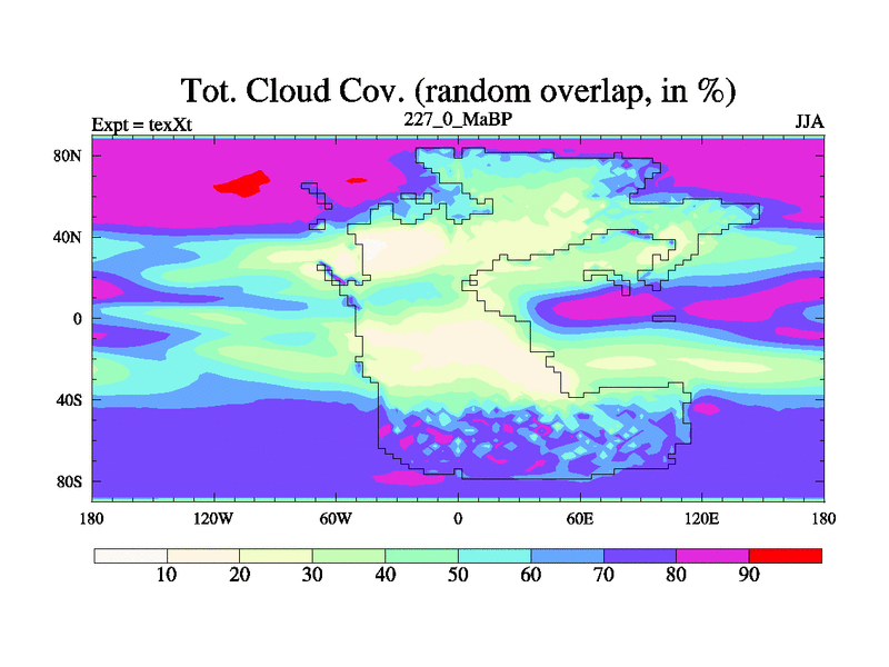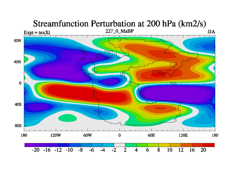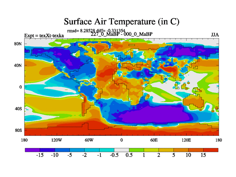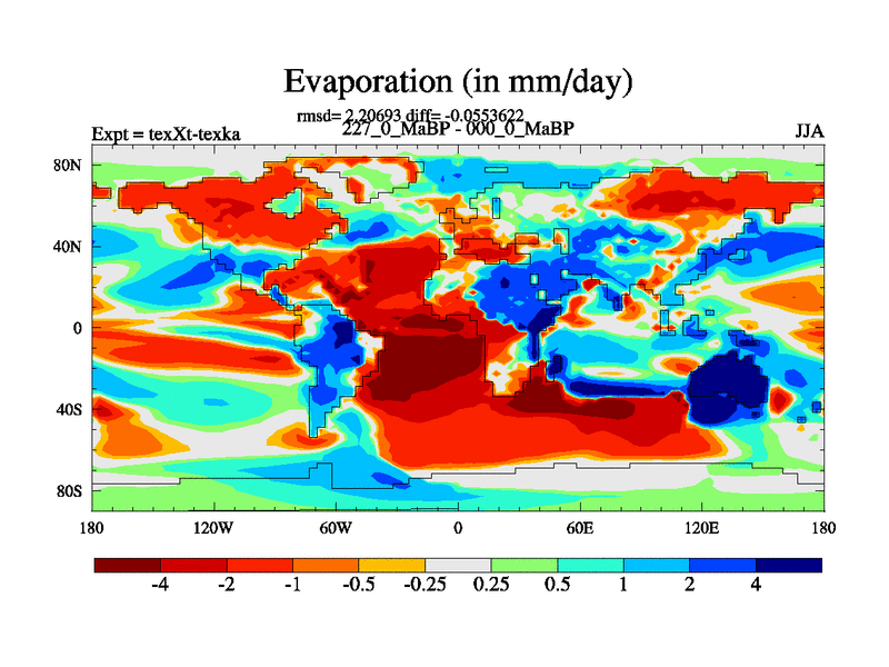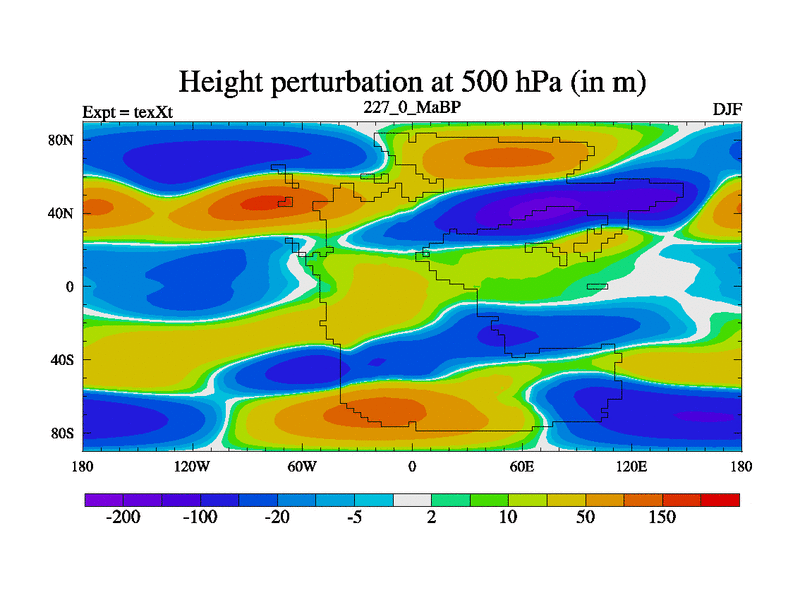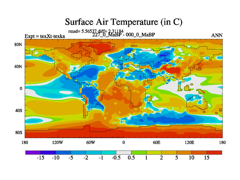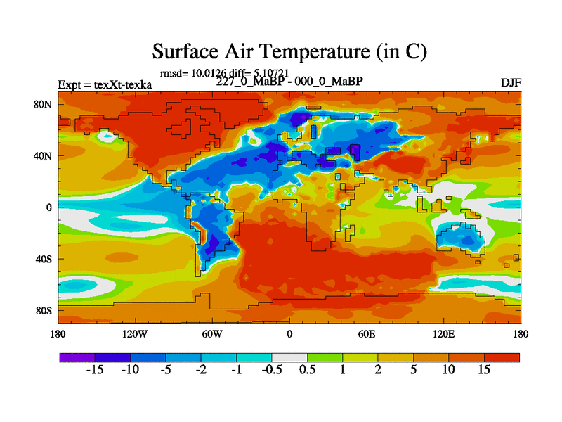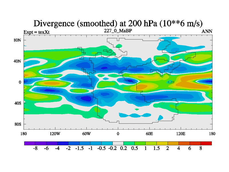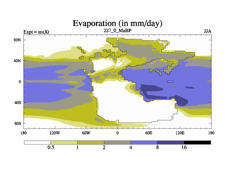 This is the 227.0 Ma simulation using the Scotese palaeogeographies.