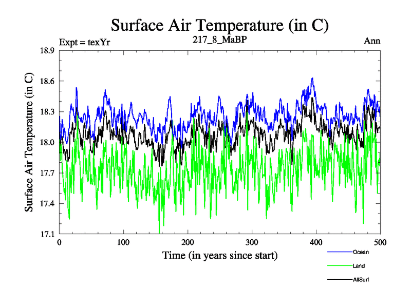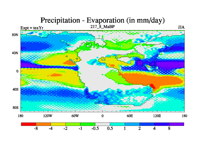 This is the 217.8 Ma simulation using the Scotese palaeogeographies. Extension of the tex[f..j] series.