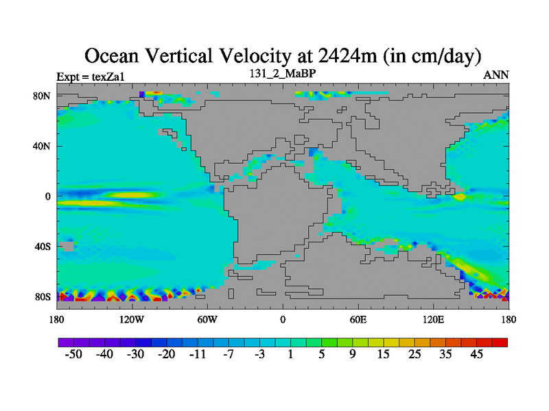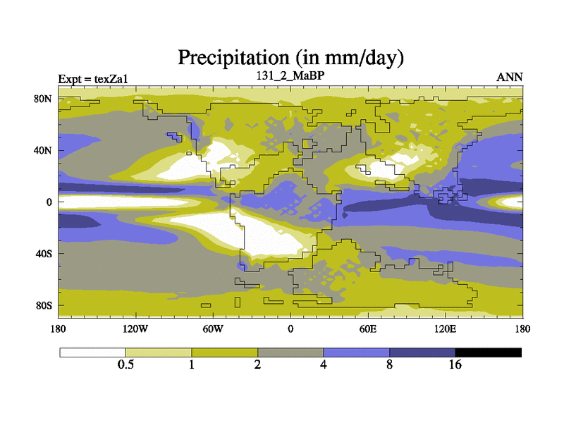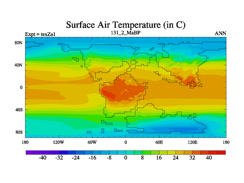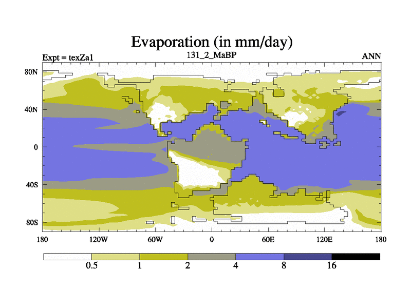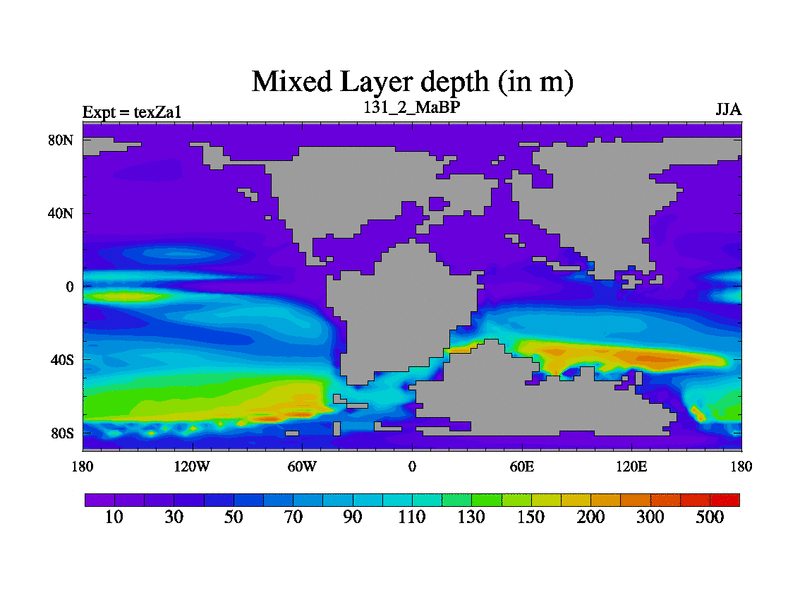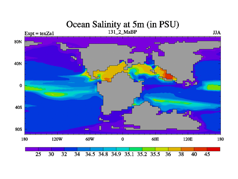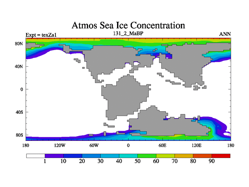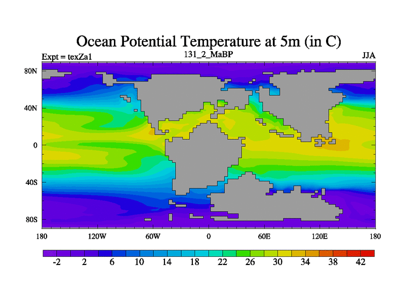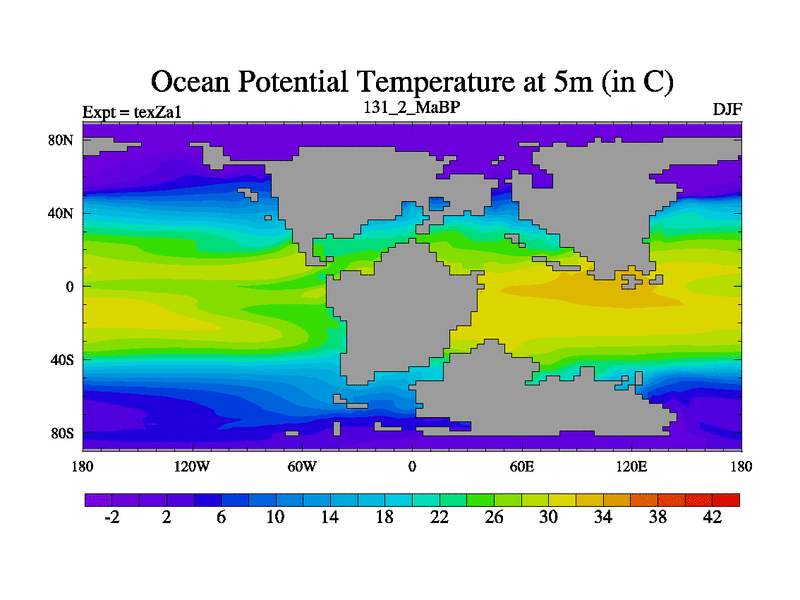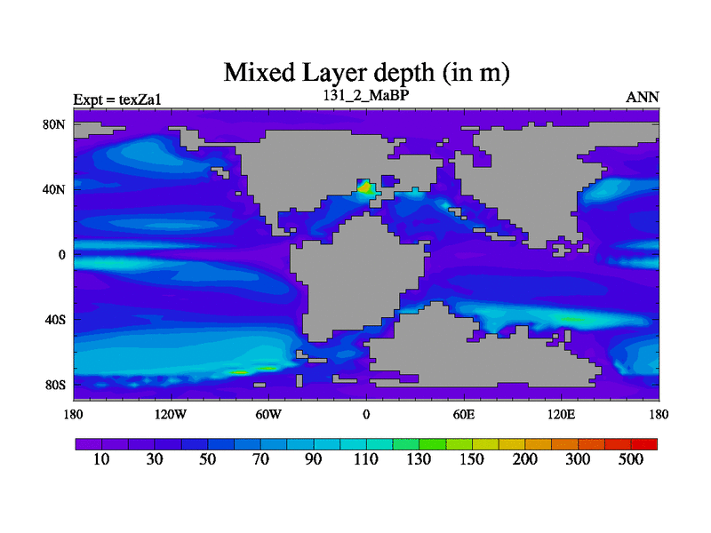This is the 131.2 Ma simulation using the Scotese palaeogeographies. Extension of the tex[f..j] series.