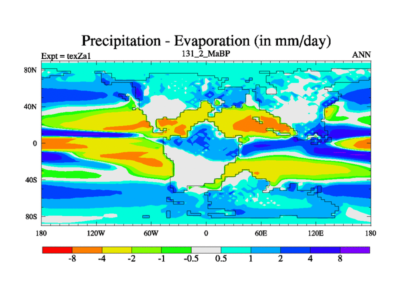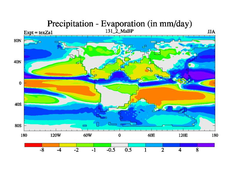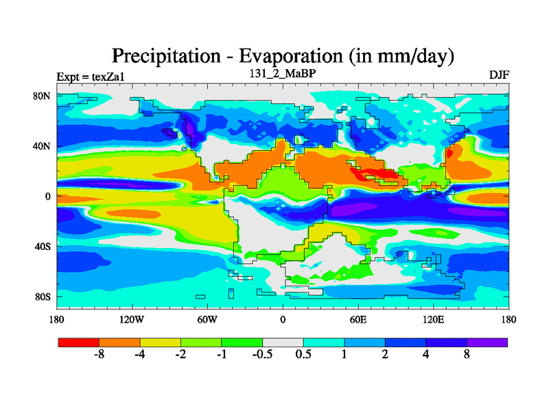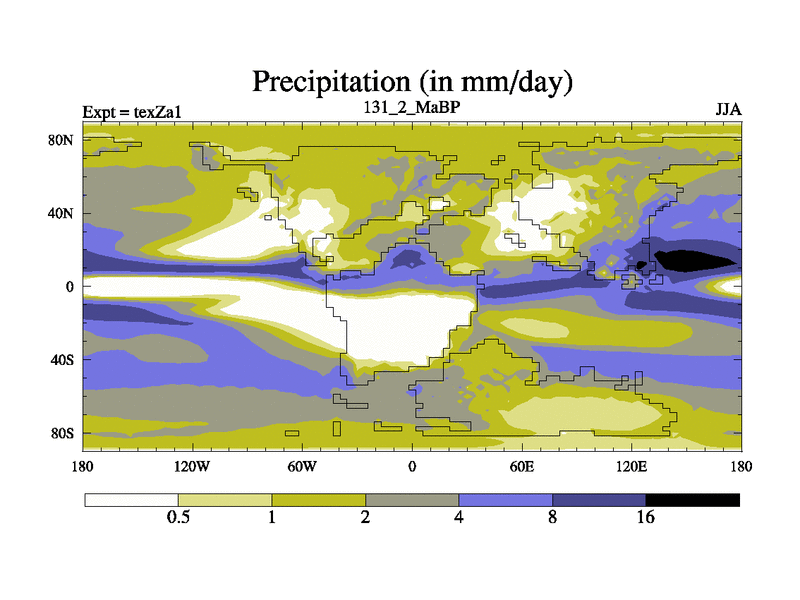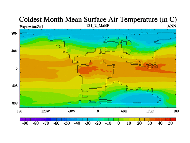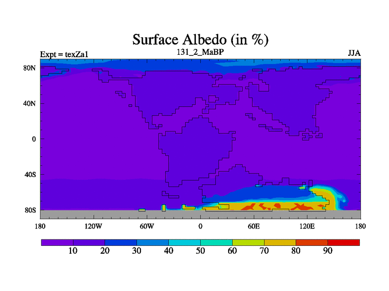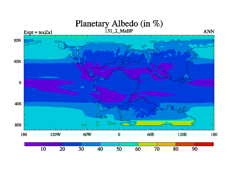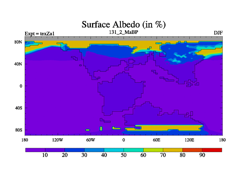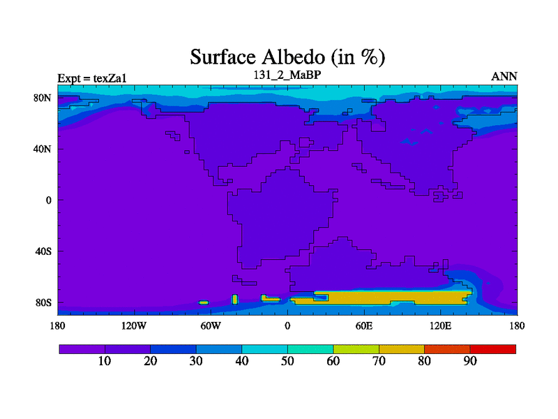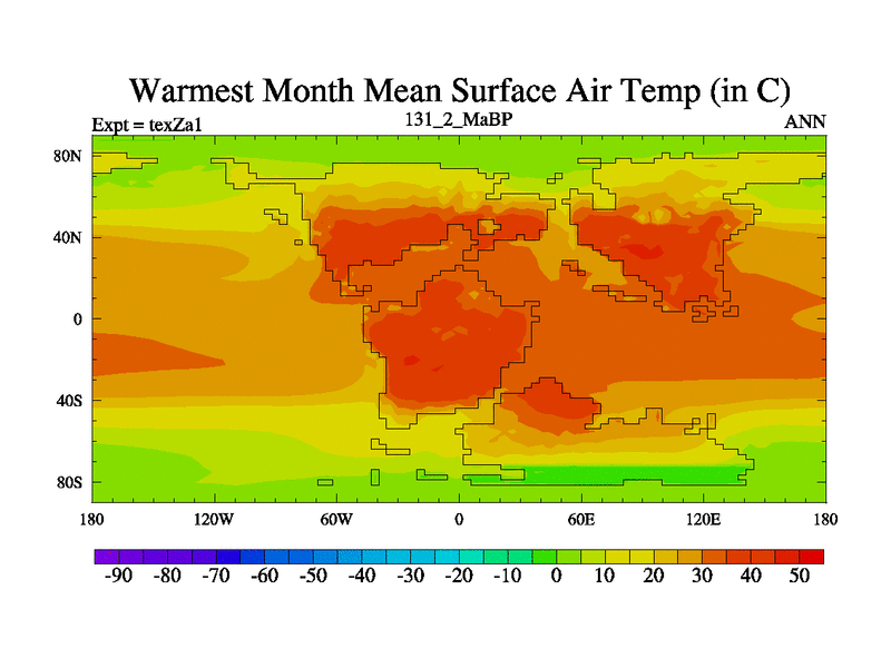 This is the 131.2 Ma simulation using the Scotese palaeogeographies. Extension of the tex[f..j] series.