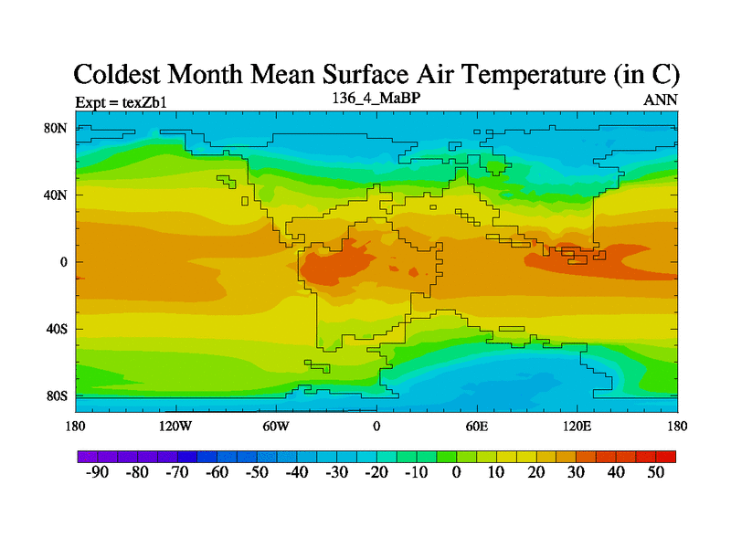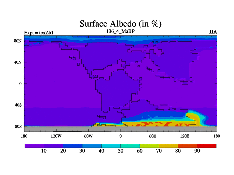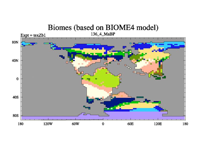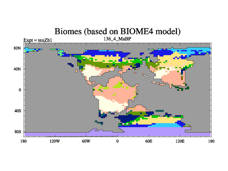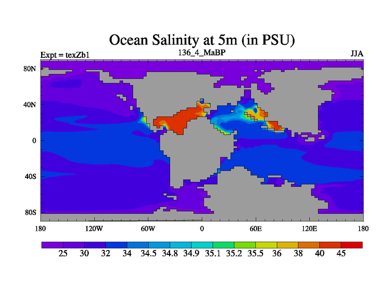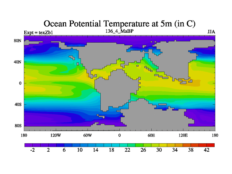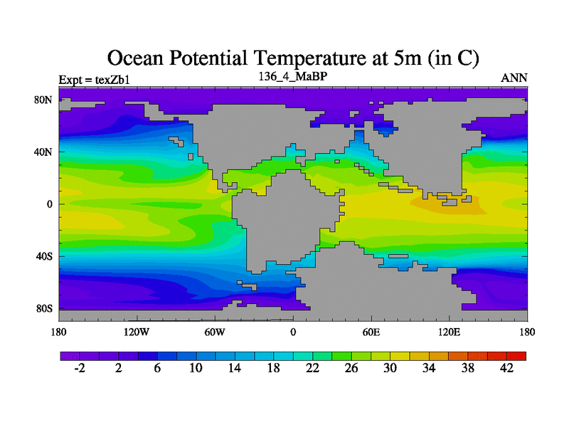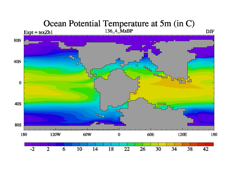 This is the 136.4 Ma simulation using the Scotese palaeogeographies. Extension of the tex[f..j] series.