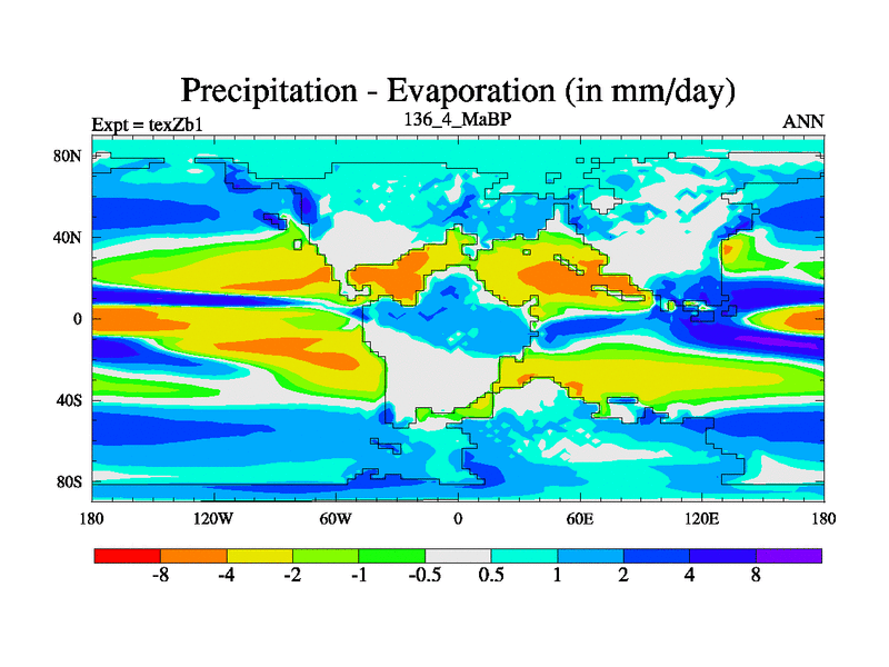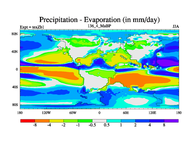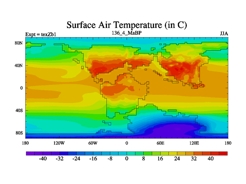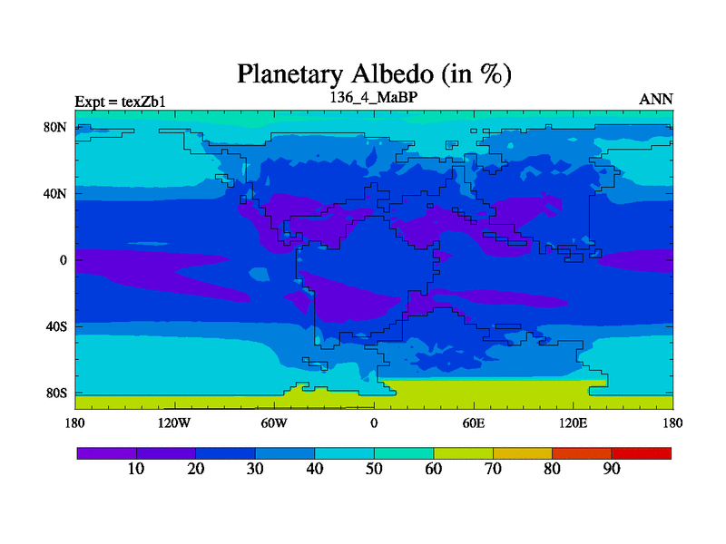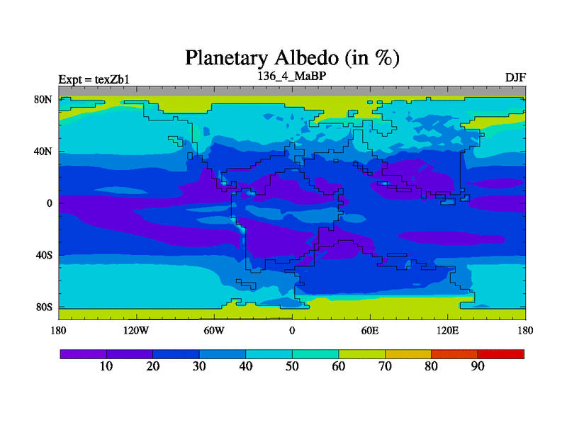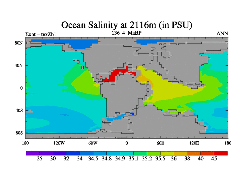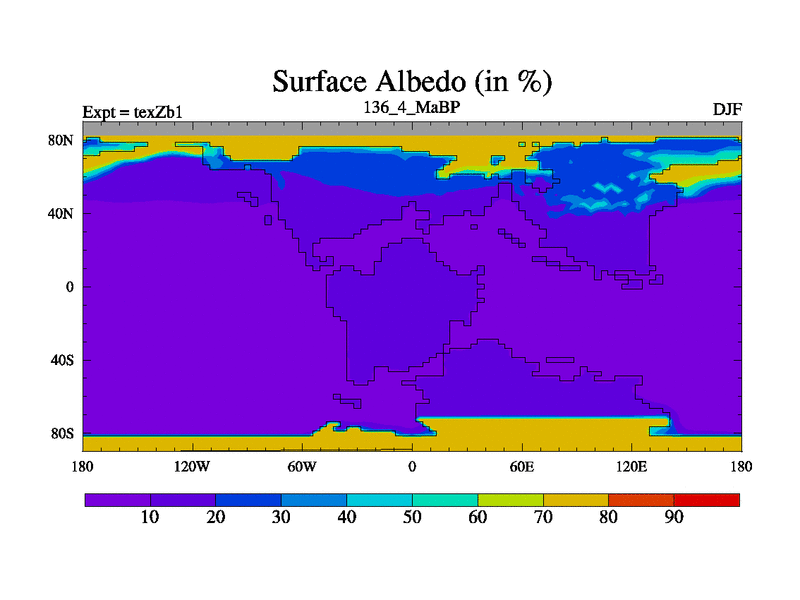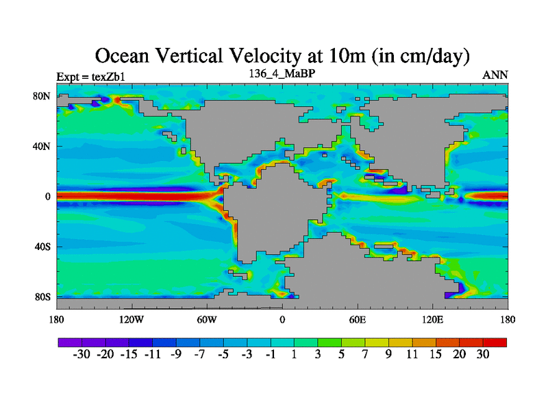 This is the 136.4 Ma simulation using the Scotese palaeogeographies. Extension of the tex[f..j] series.
