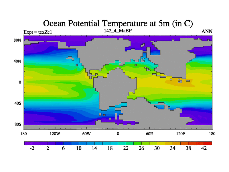 This is the 142.4 Ma simulation using the Scotese palaeogeographies. Extension of the tex[f..j] series.