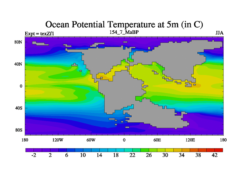 This is the 154.7 Ma simulation using the Scotese palaeogeographies. Extension of the tex[f..j] series.