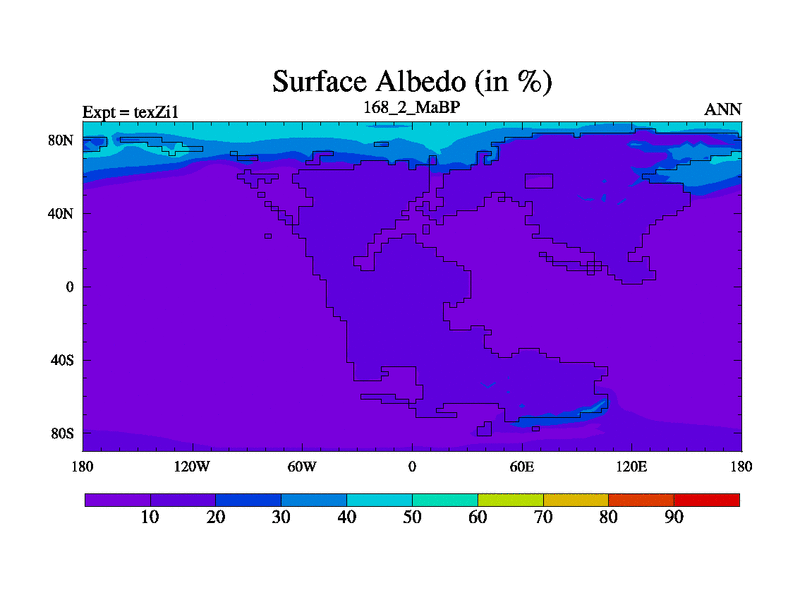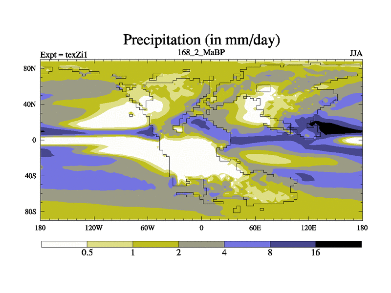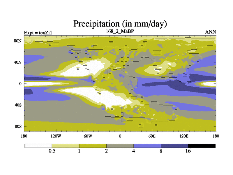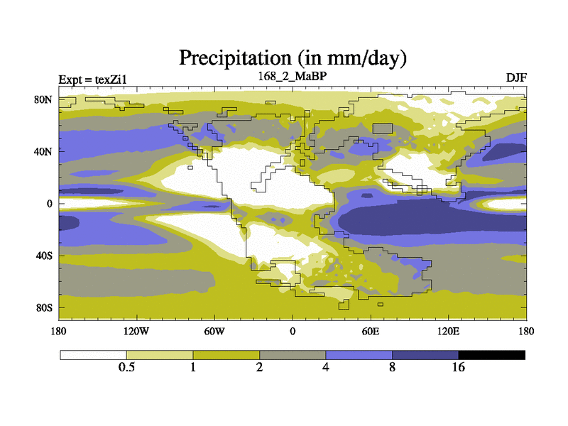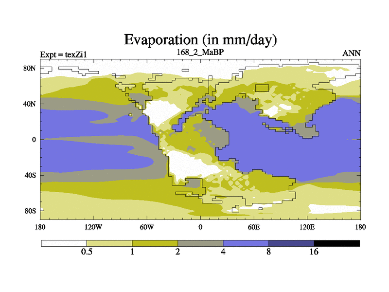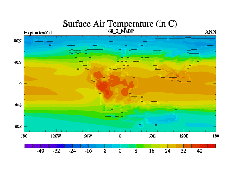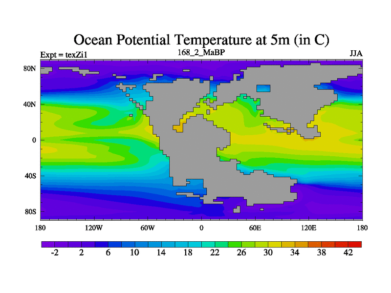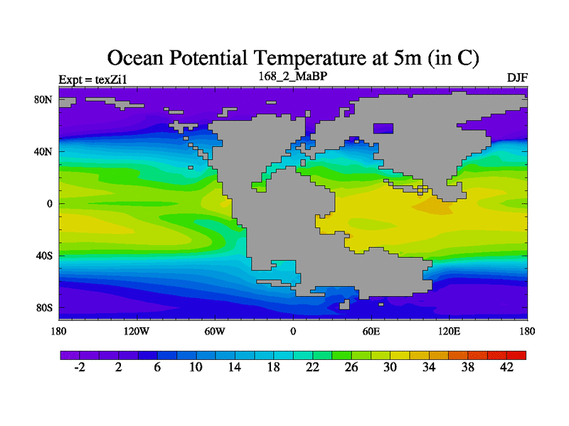 This is the 168.2 Ma simulation using the Scotese palaeogeographies. Extension of the tex[f..j] series.