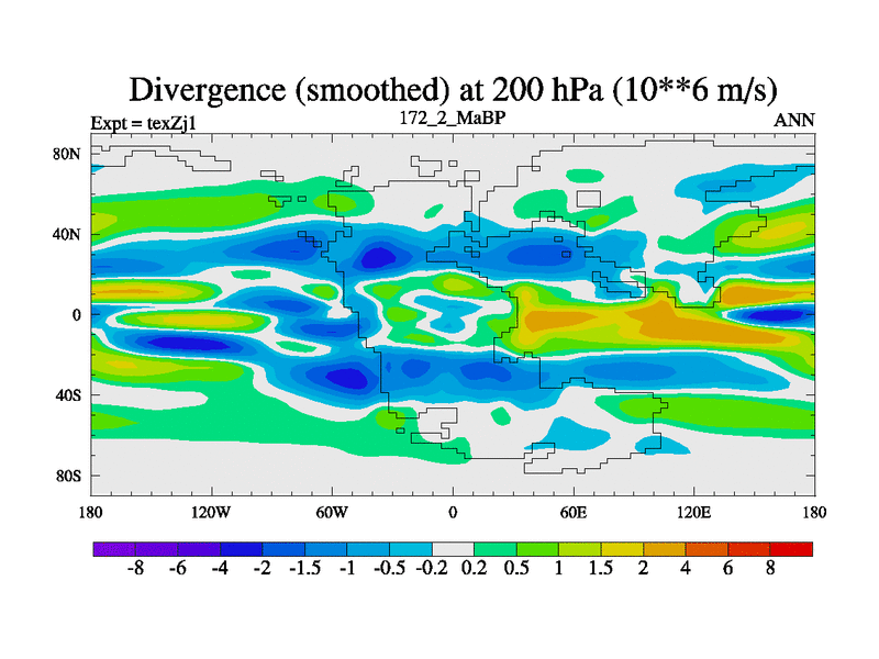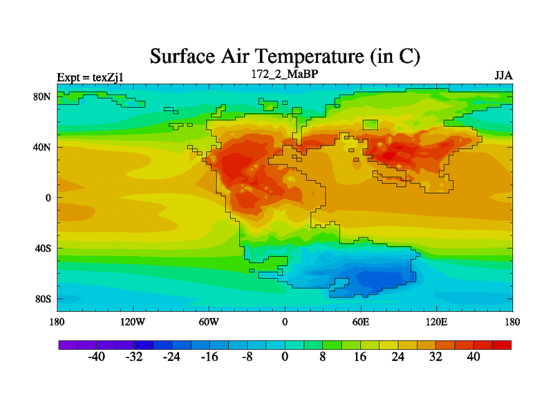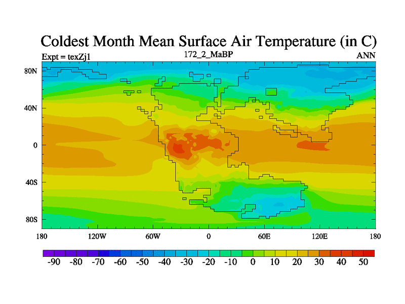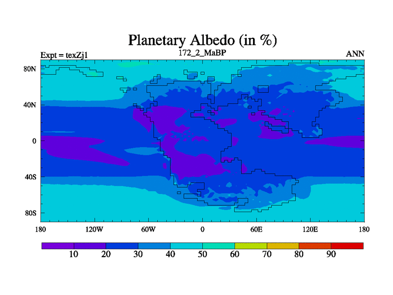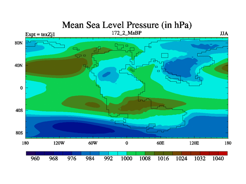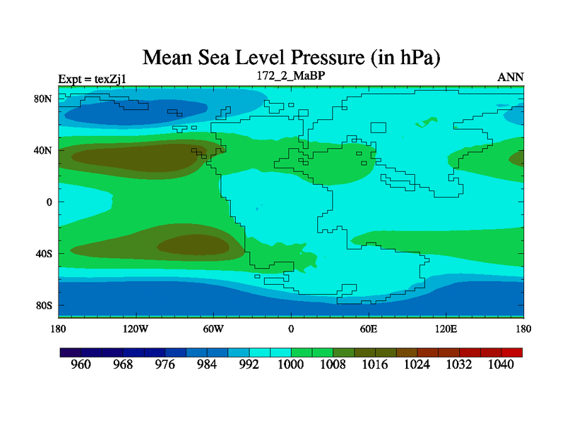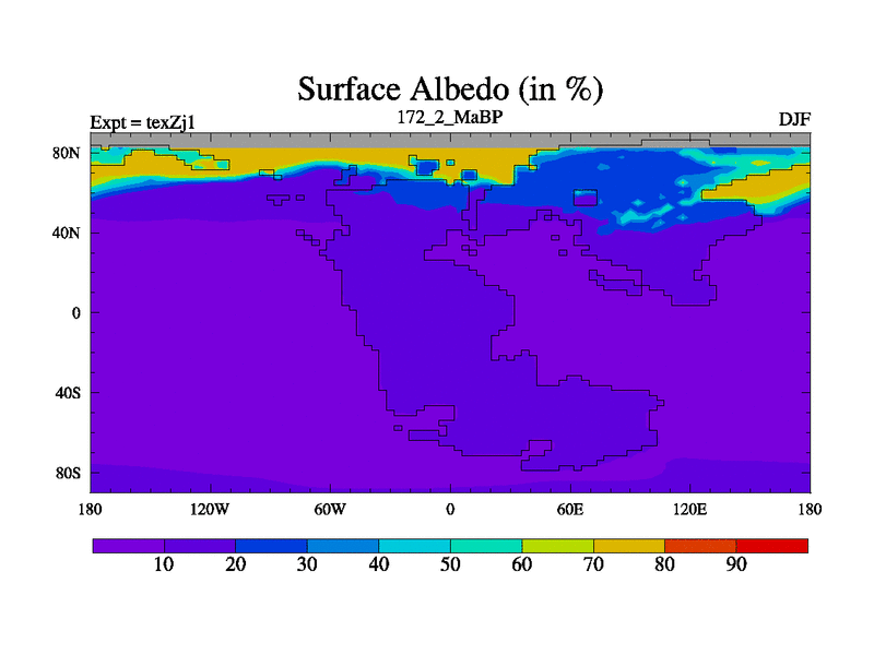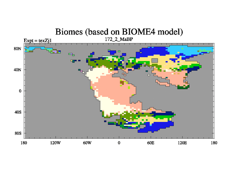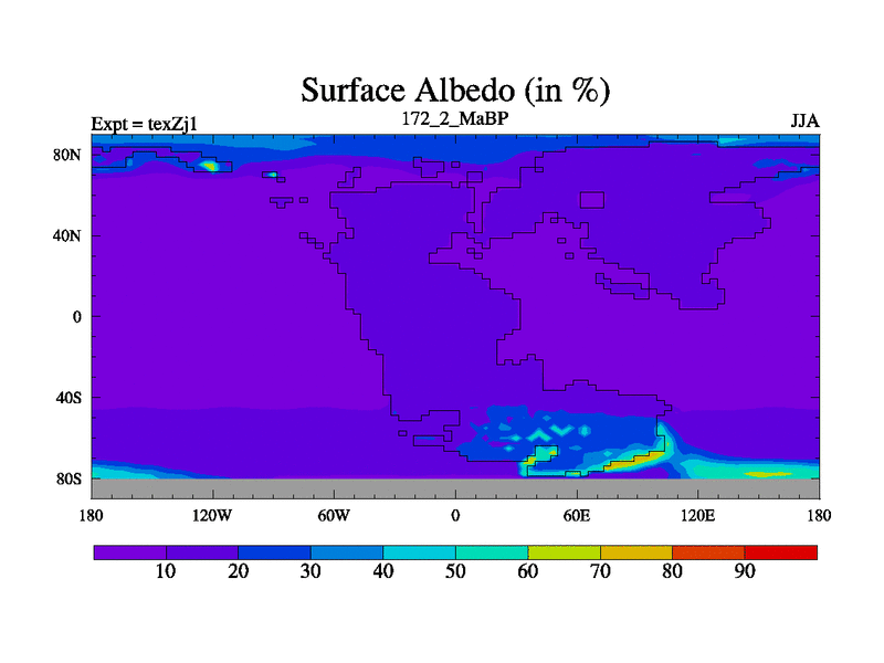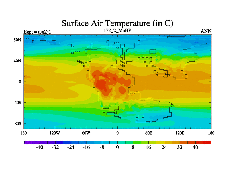 This is the 172.2 Ma simulation using the Scotese palaeogeographies. Extension of the tex[f..j] series.