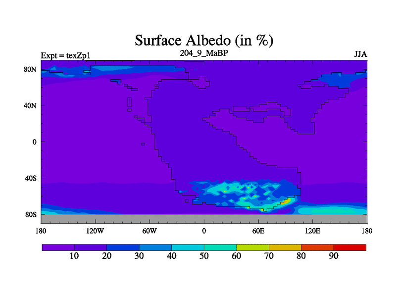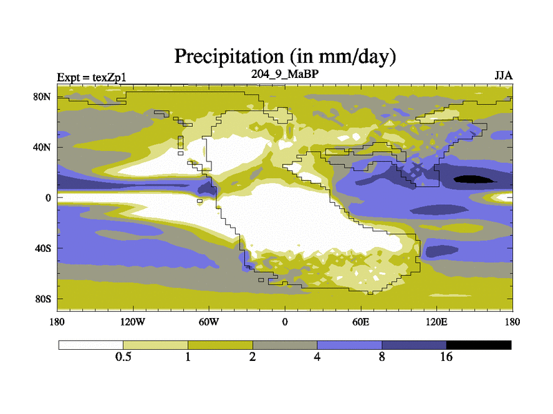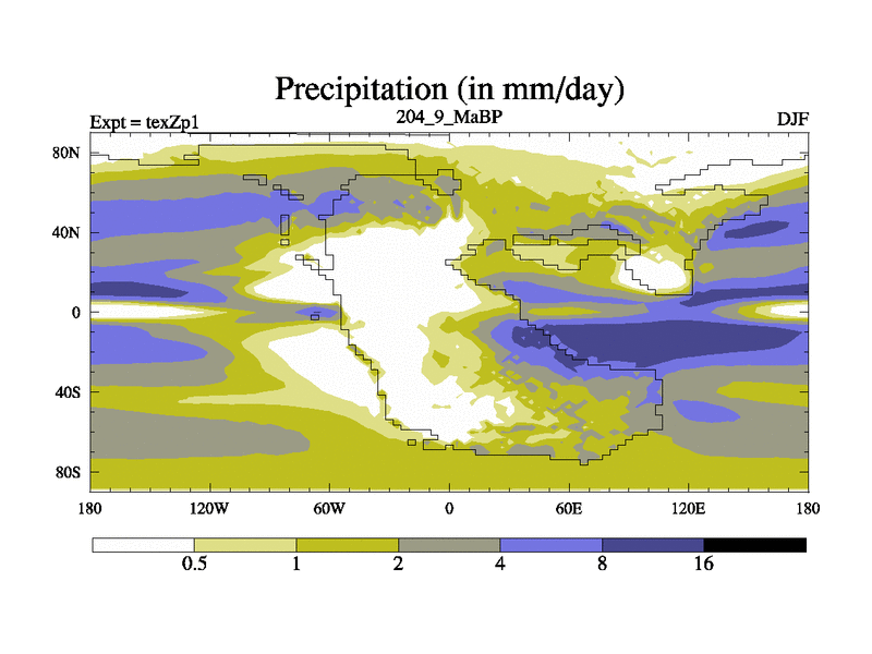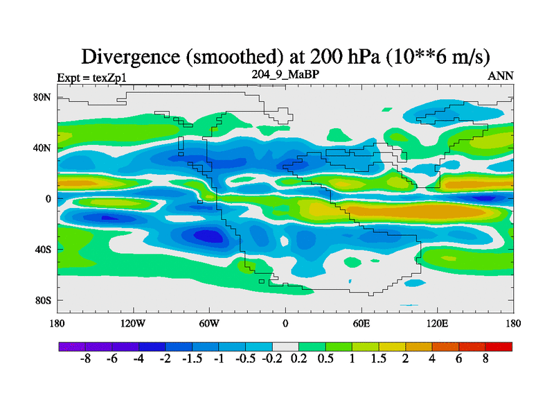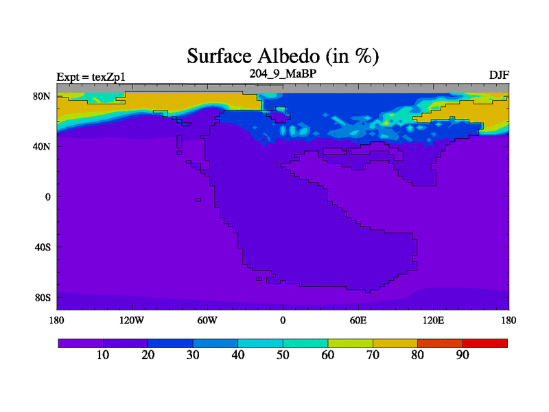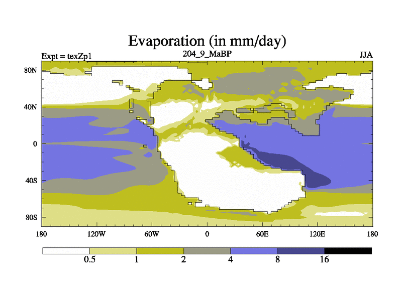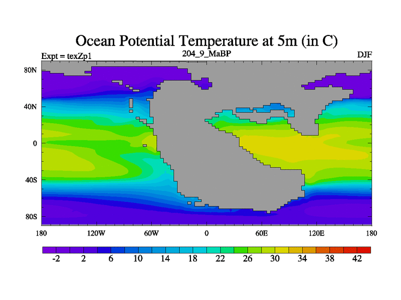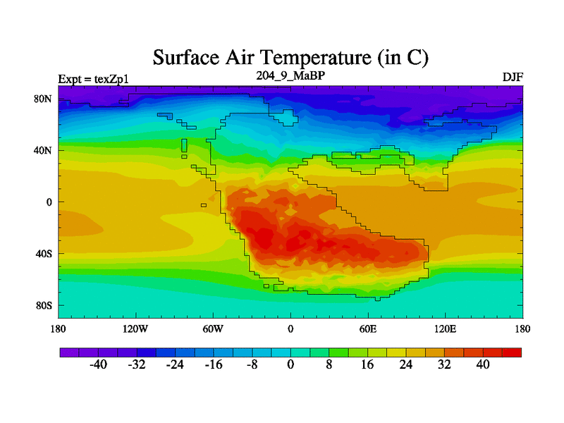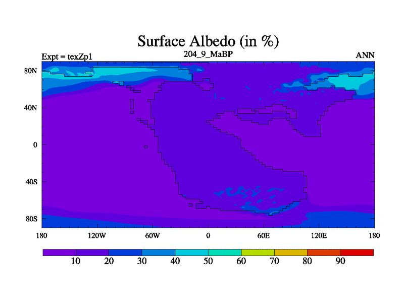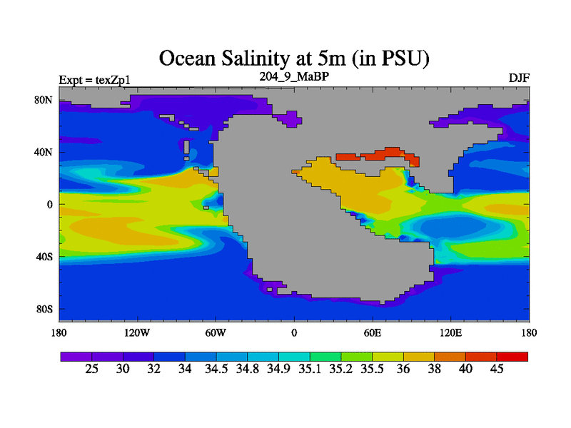 This is the 204.9 Ma simulation using the Scotese palaeogeographies. Extension of the tex[f..j] series.