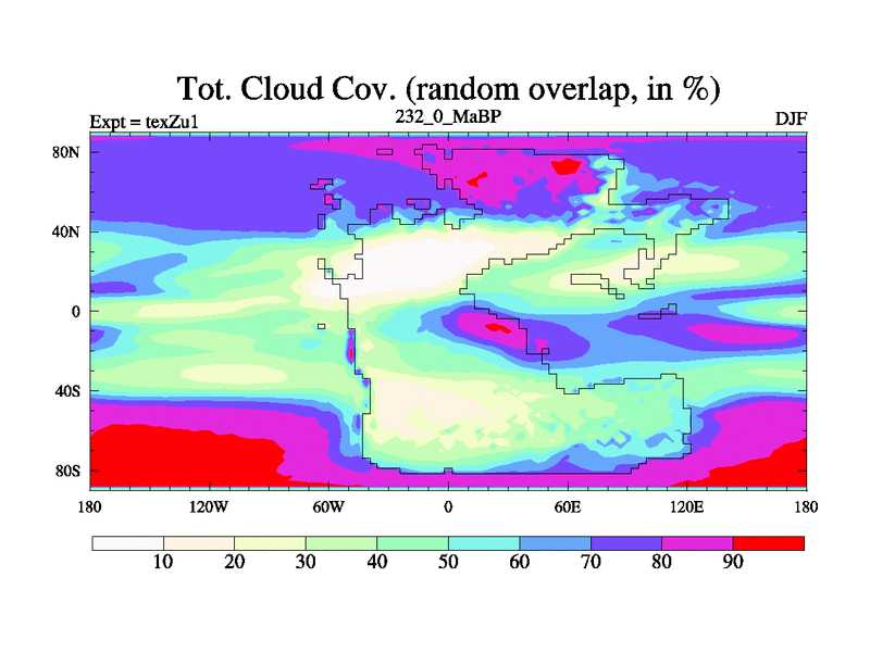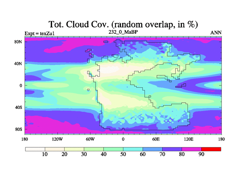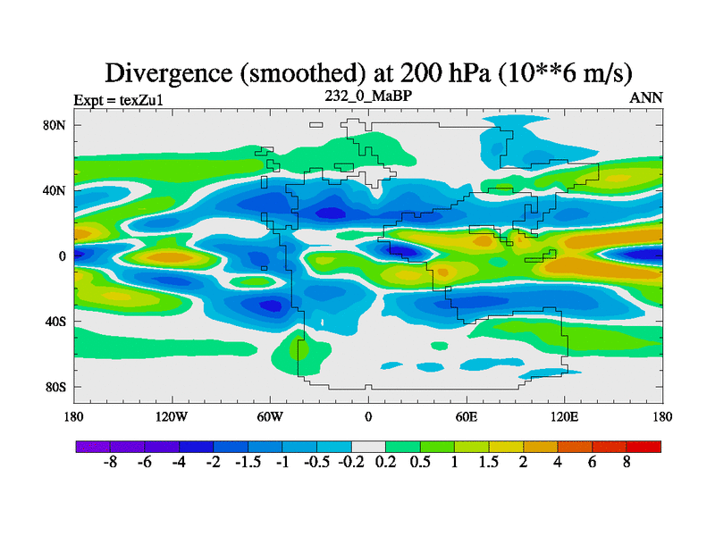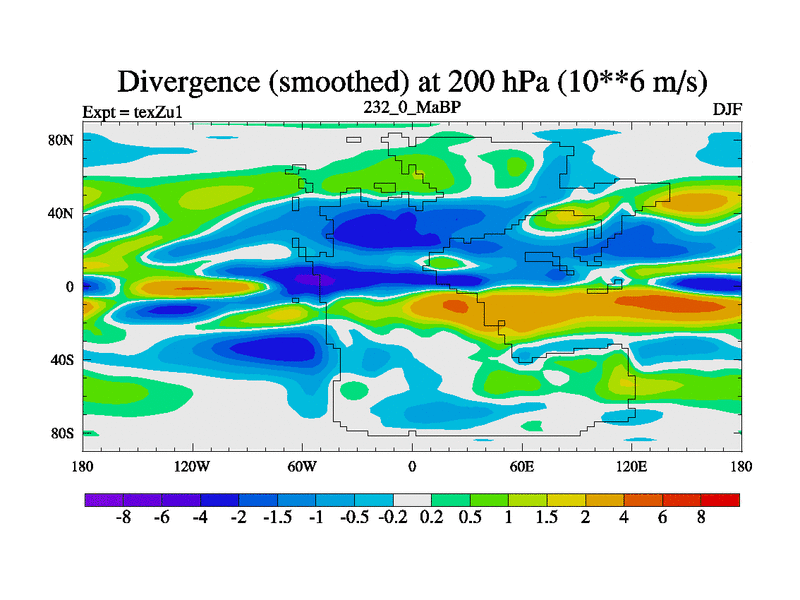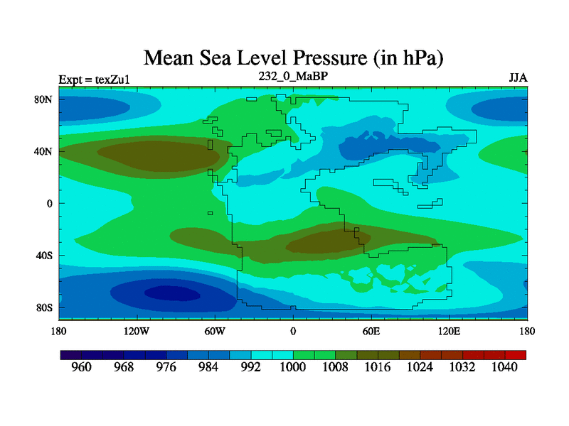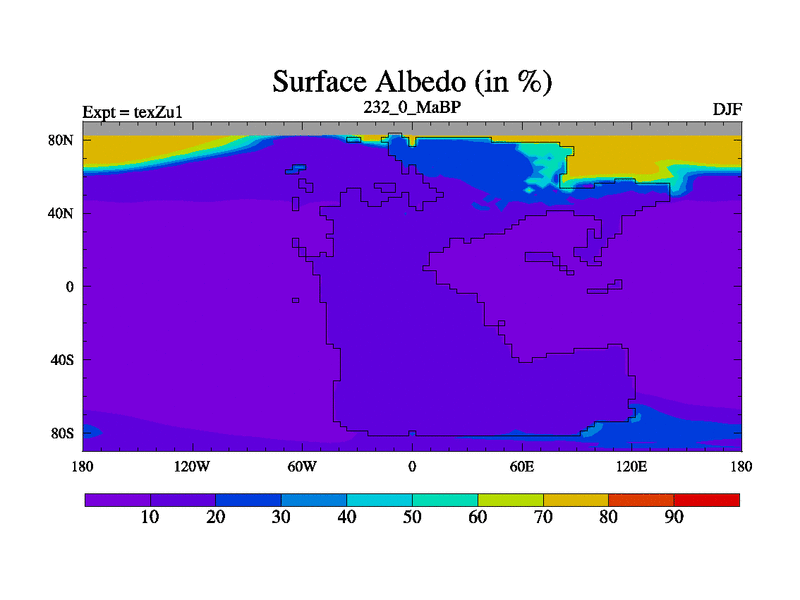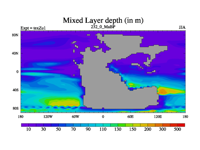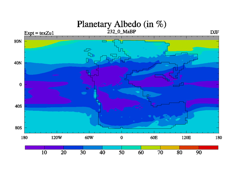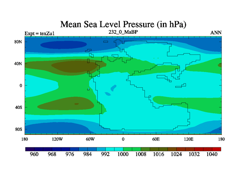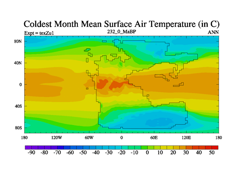 This is the 232.0 Ma simulation using the Scotese palaeogeographies. Extension of the tex[f..j] series.
