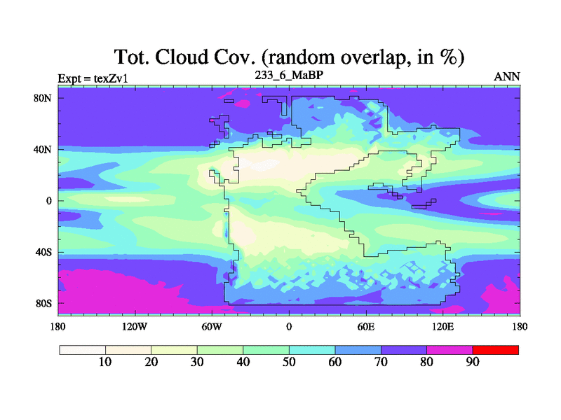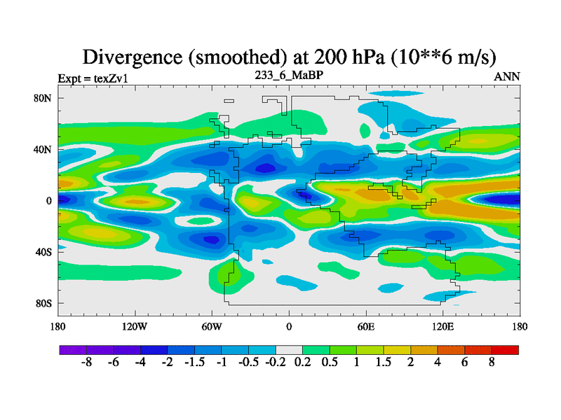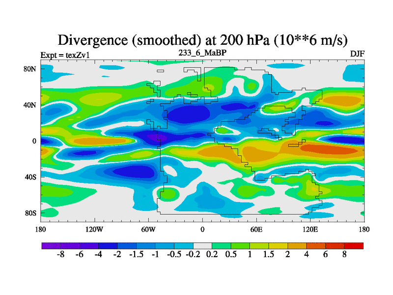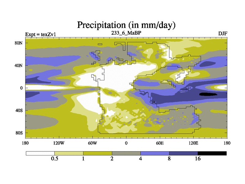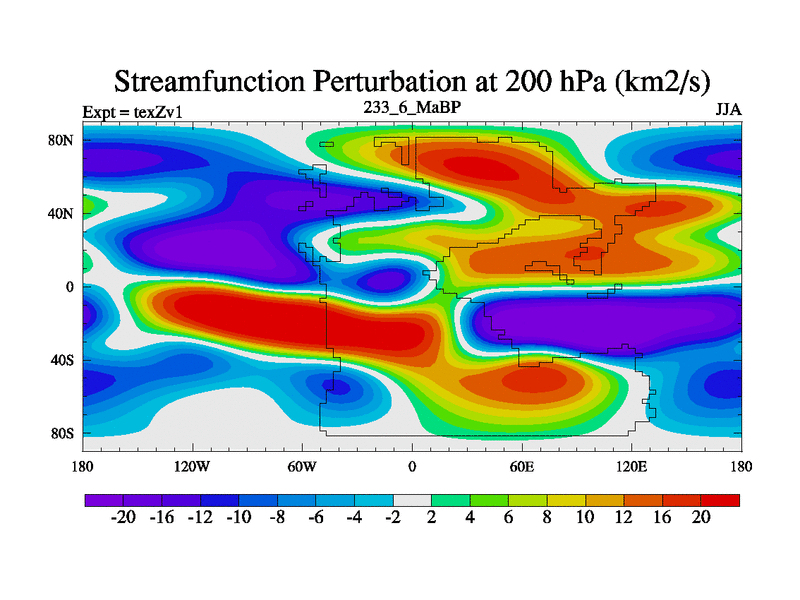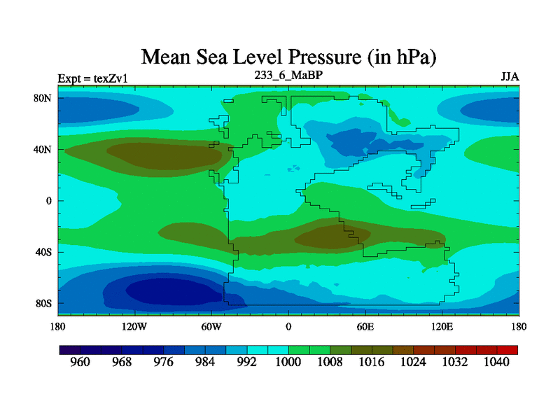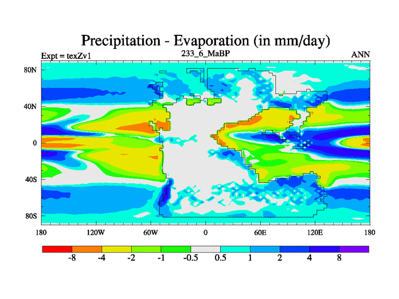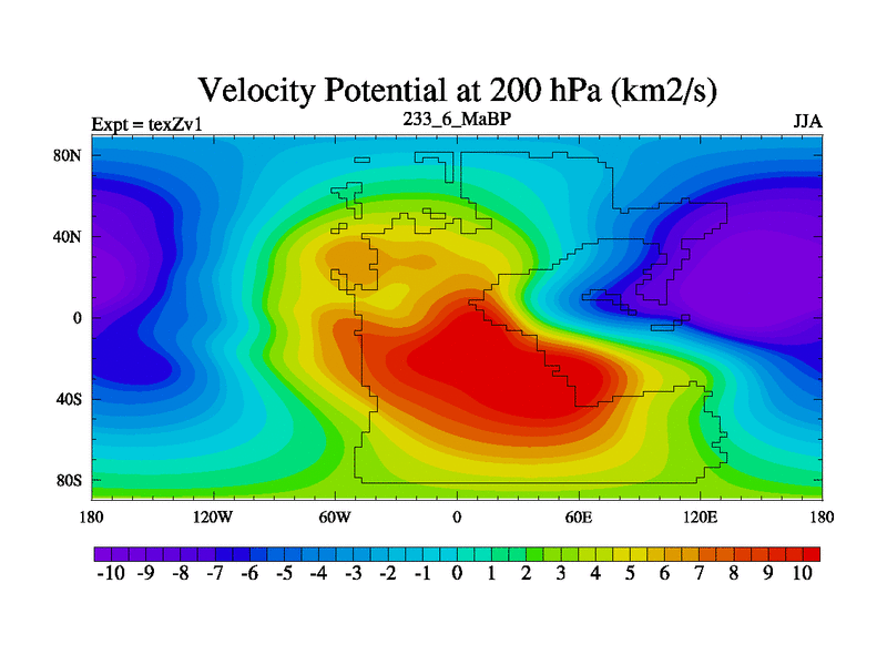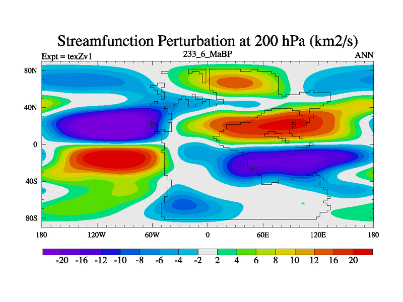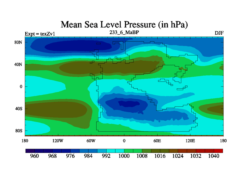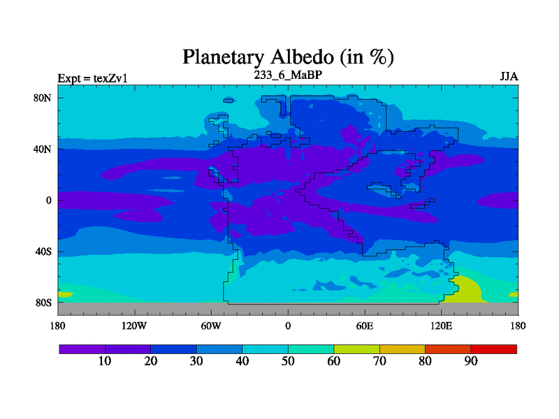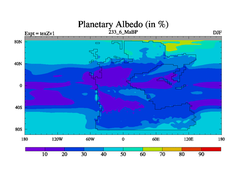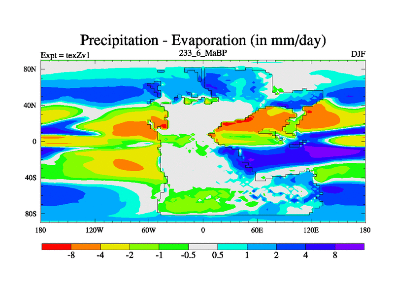 This is the 233.6 Ma simulation using the Scotese palaeogeographies. Extension of the tex[f..j] series.
