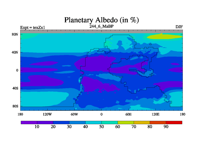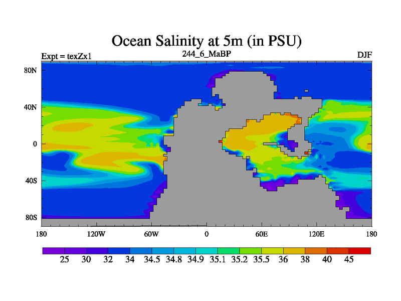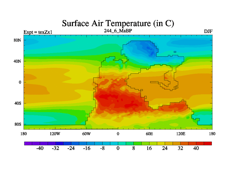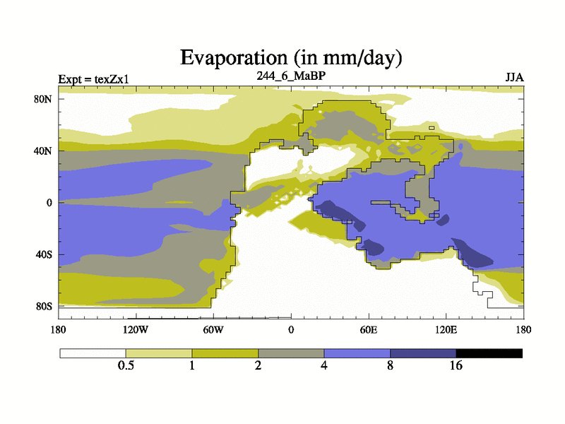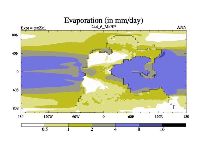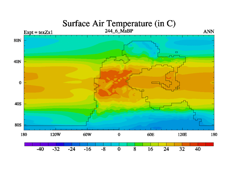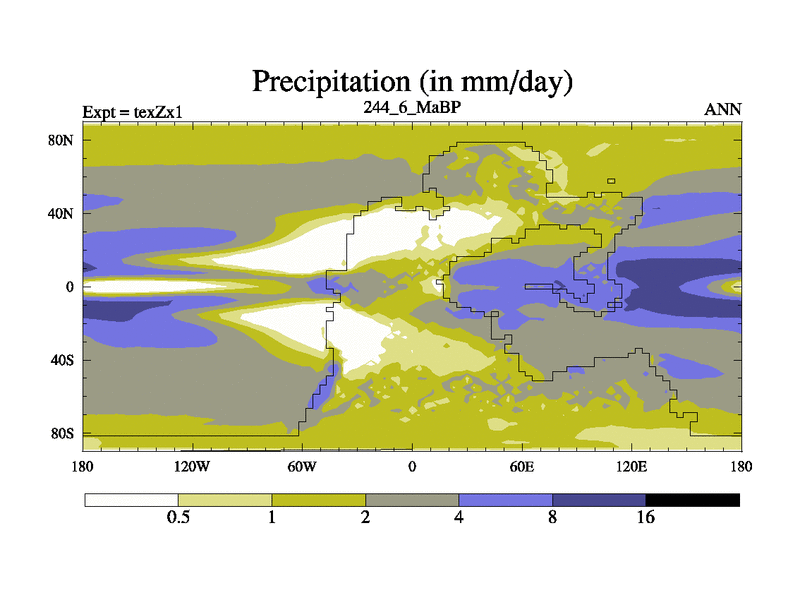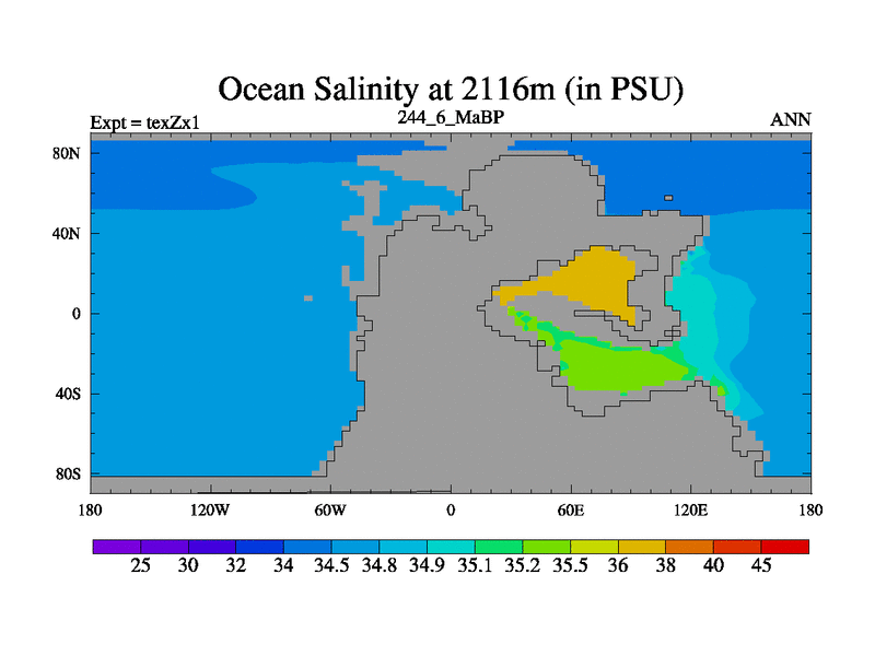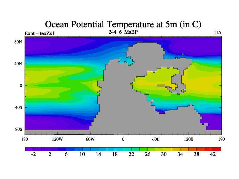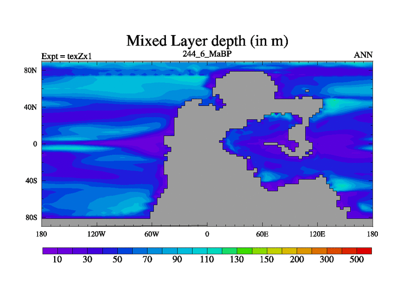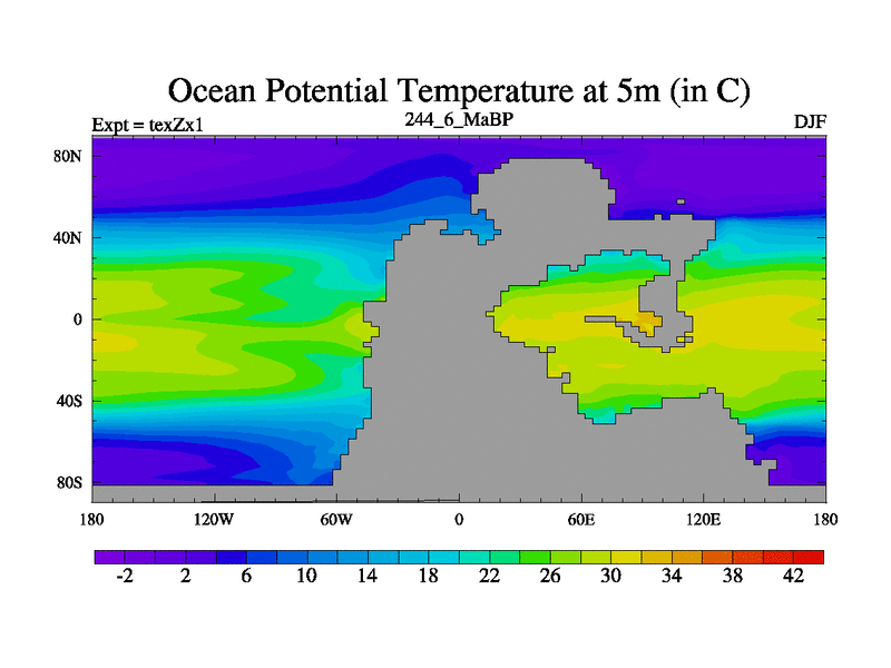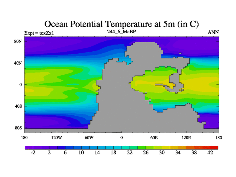 This is the 244.6 Ma simulation using the Scotese palaeogeographies. Extension of the tex[f..j] series.