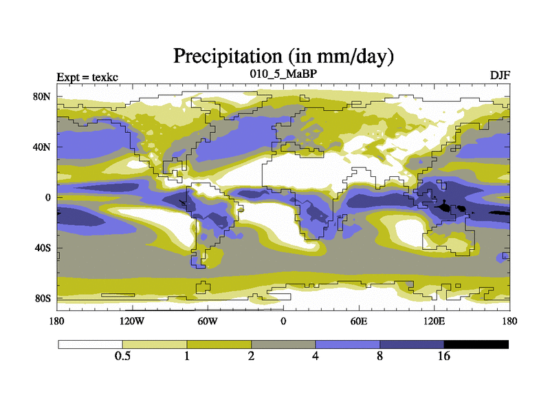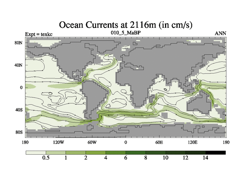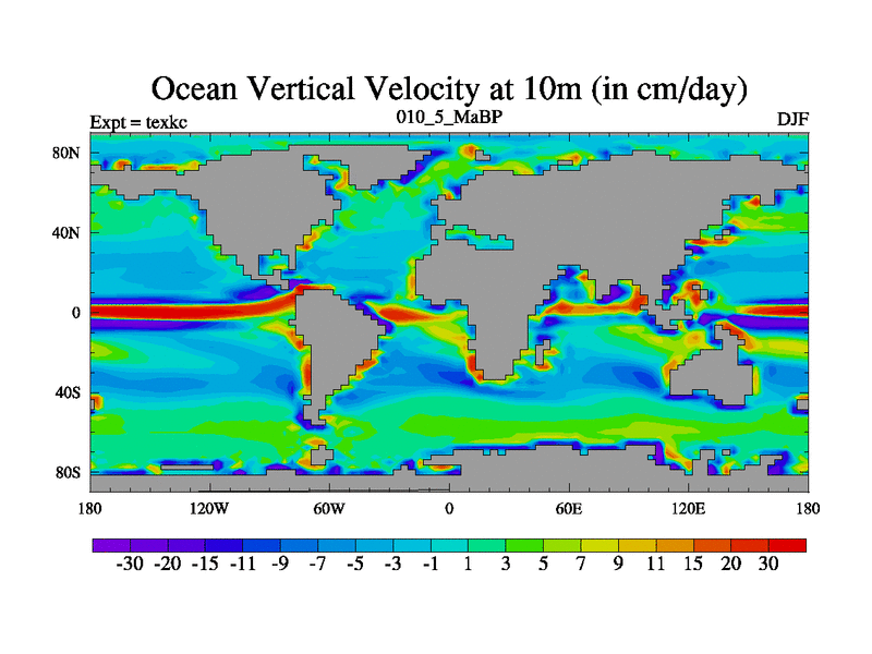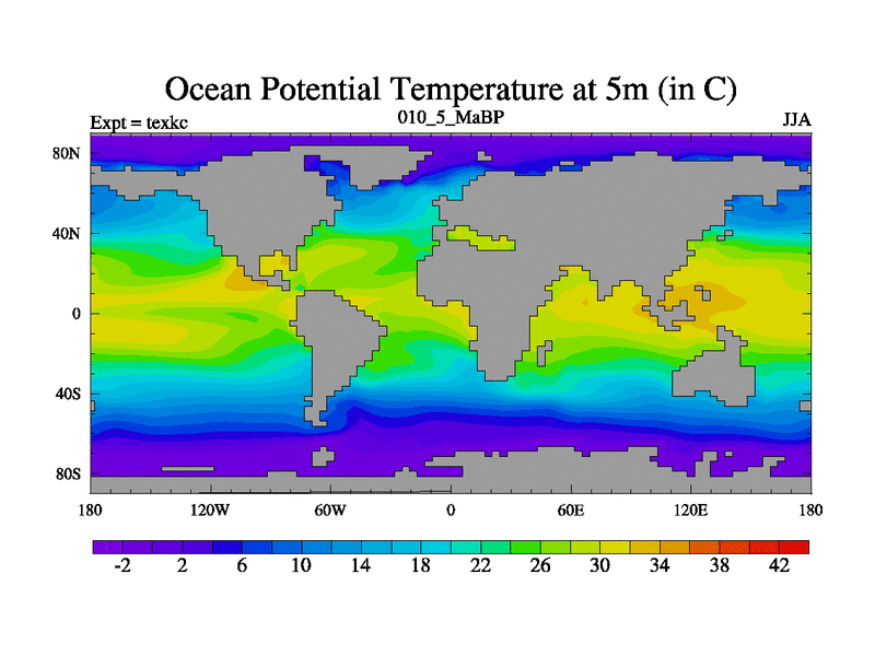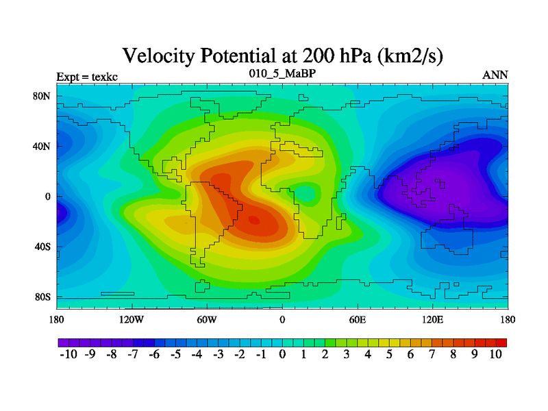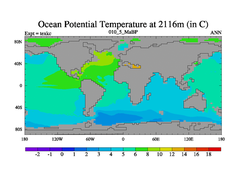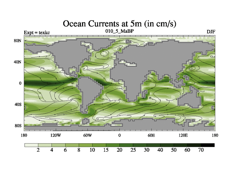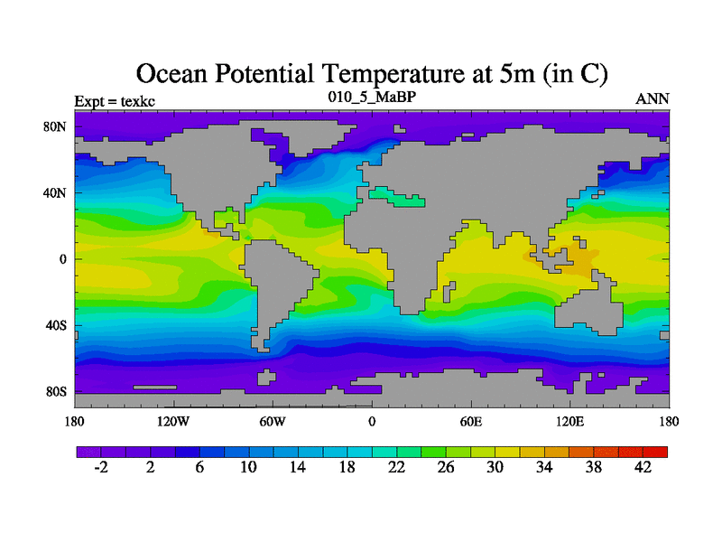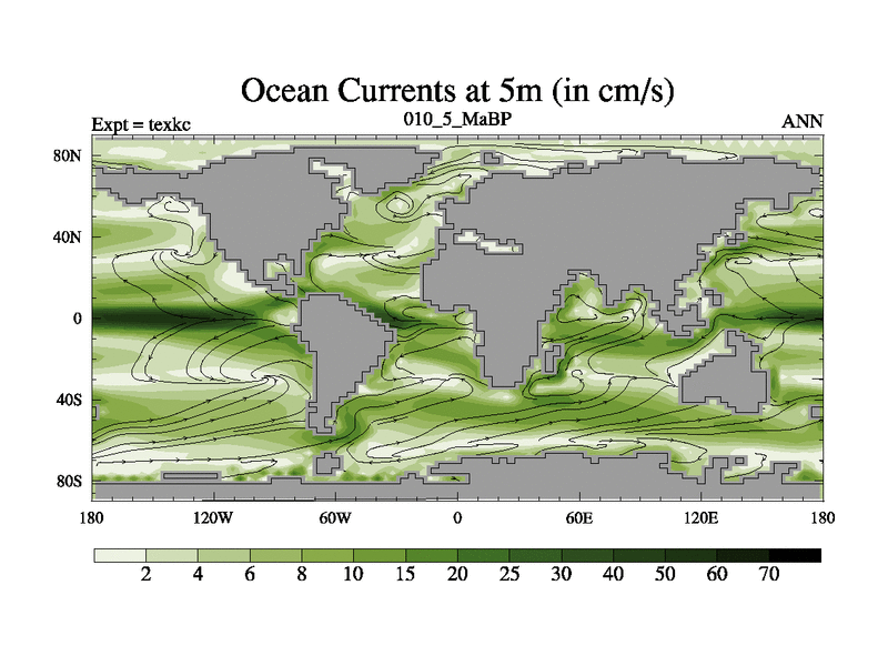 This is the 10.5 Ma simulation using the Scotese palaeogeographies. High output extension of the 5000 year spinup.
