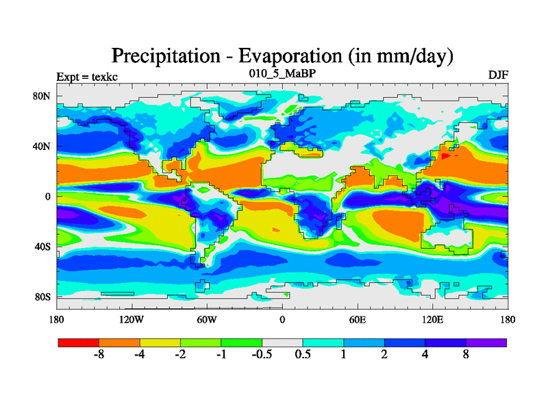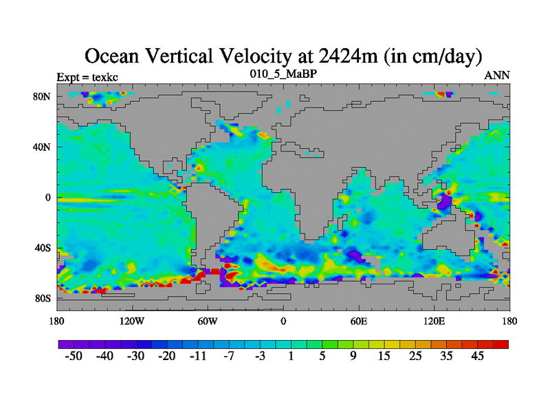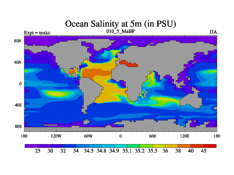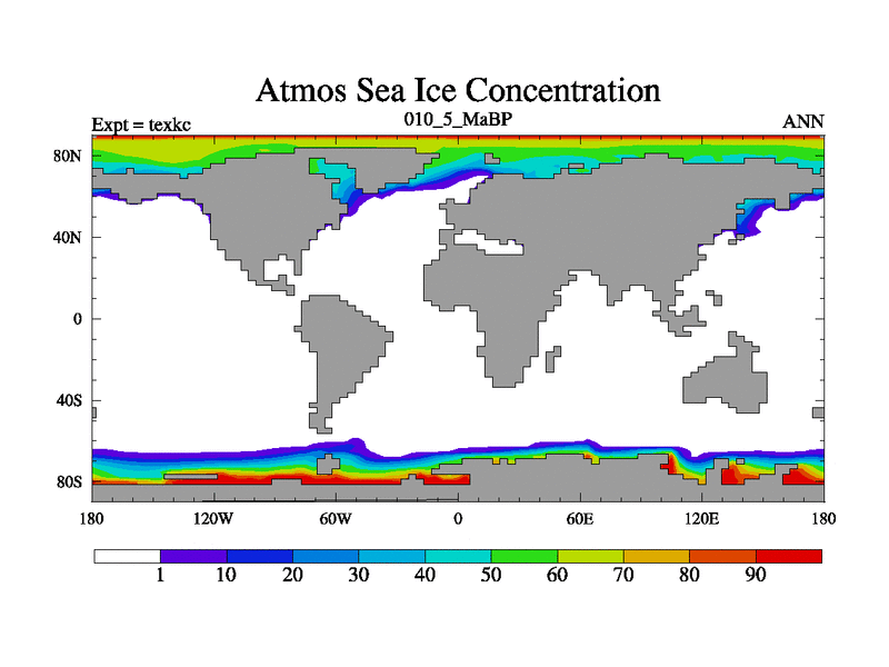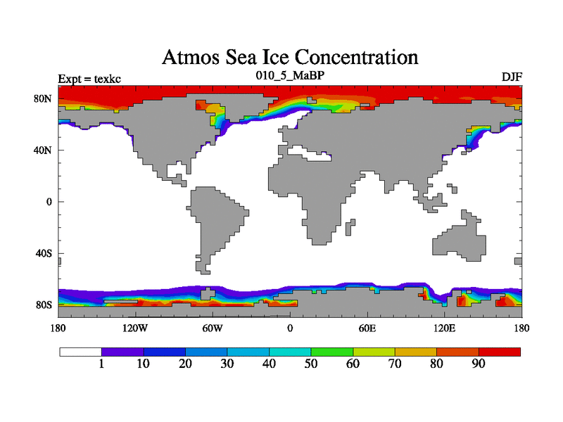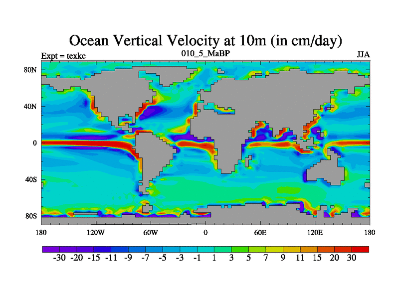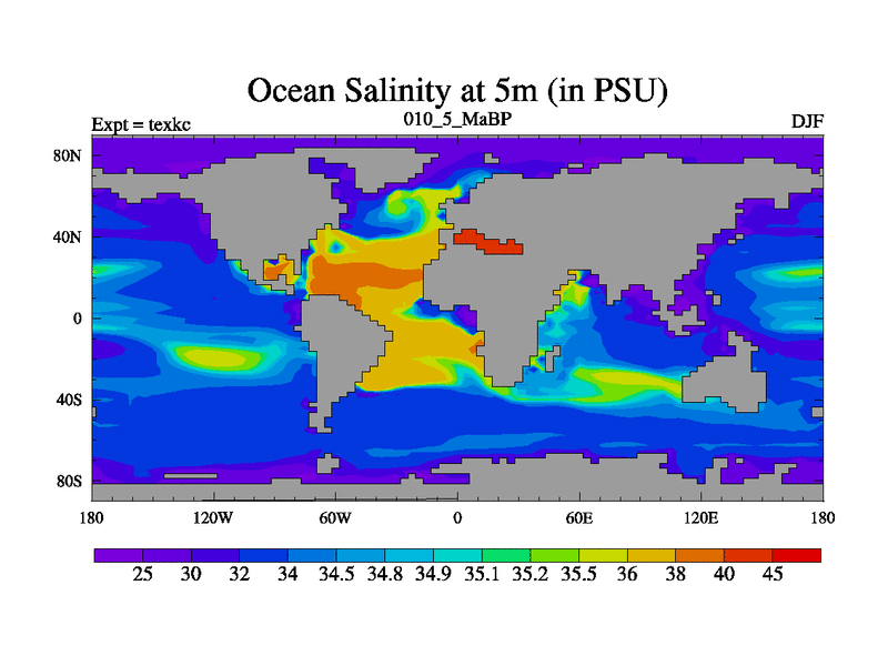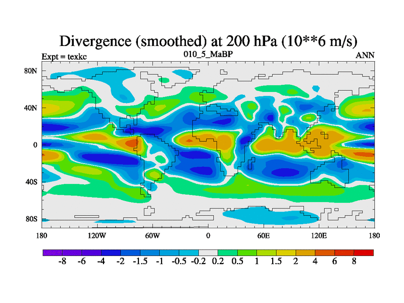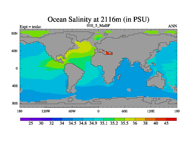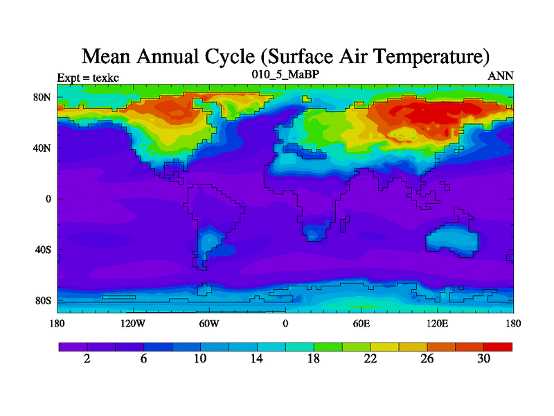 This is the 10.5 Ma simulation using the Scotese palaeogeographies. High output extension of the 5000 year spinup.