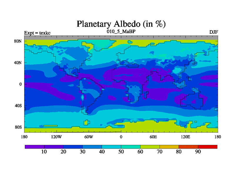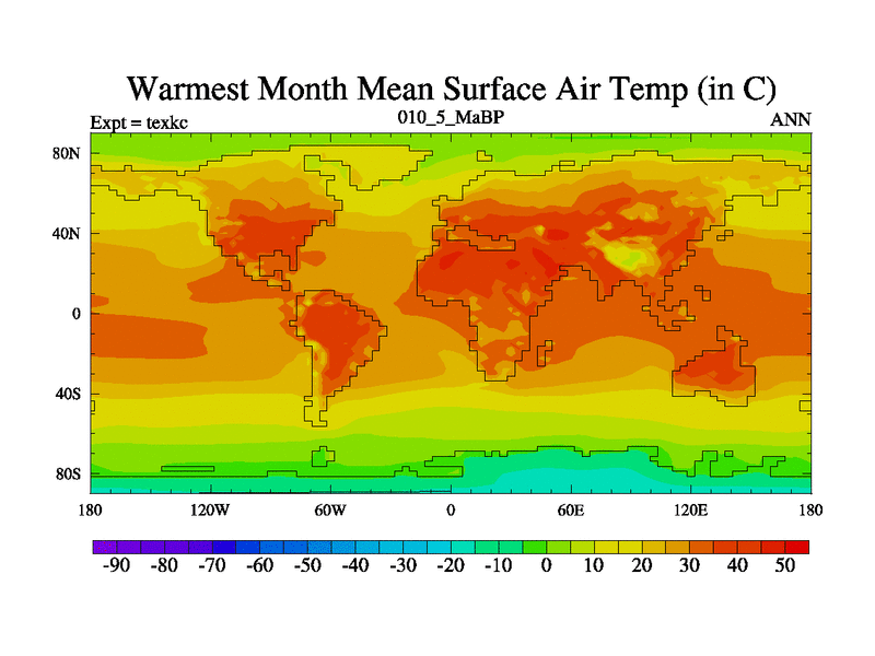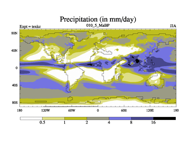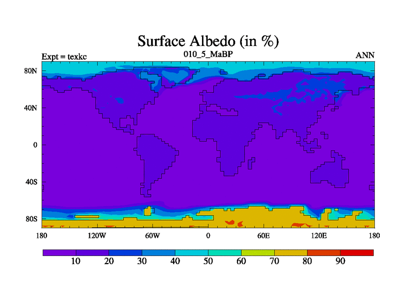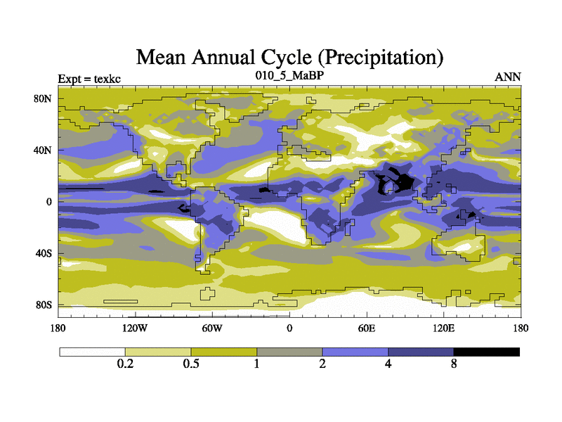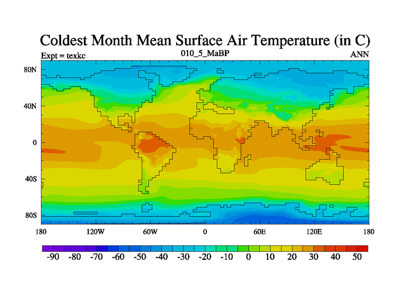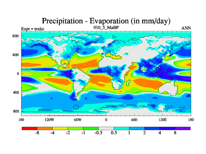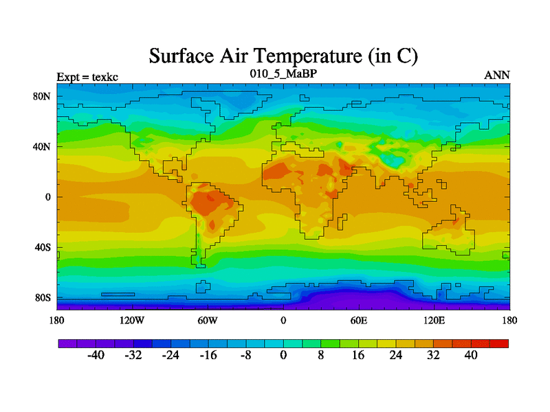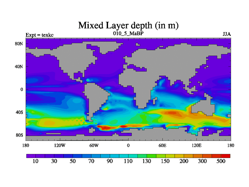 This is the 10.5 Ma simulation using the Scotese palaeogeographies. High output extension of the 5000 year spinup.