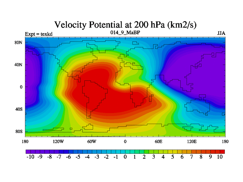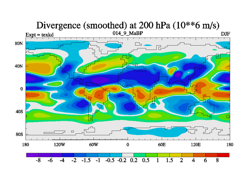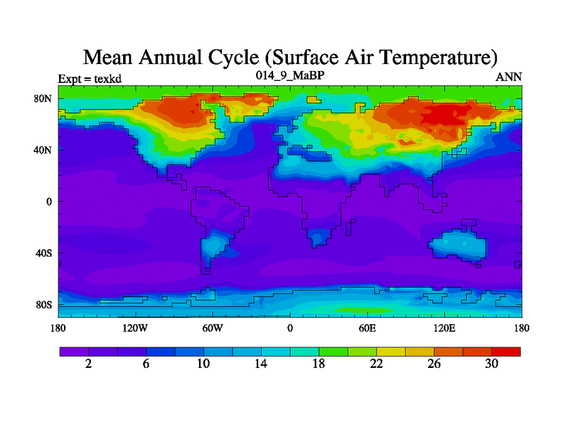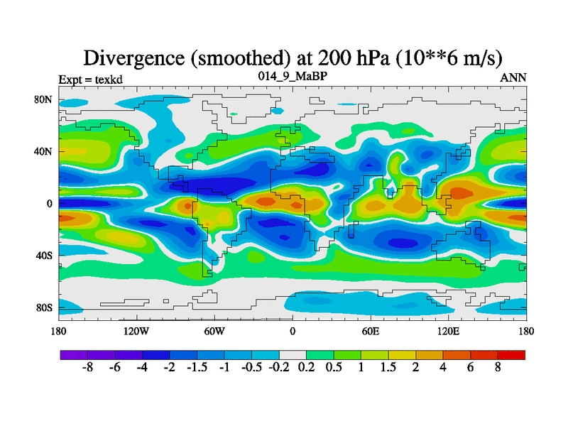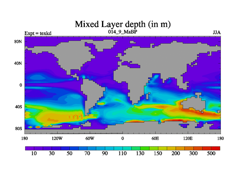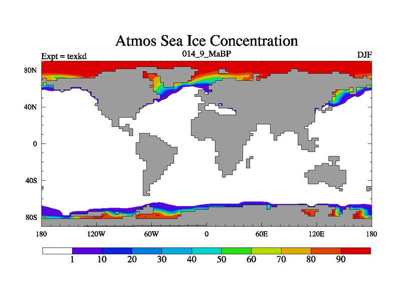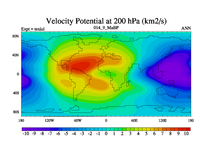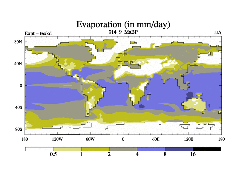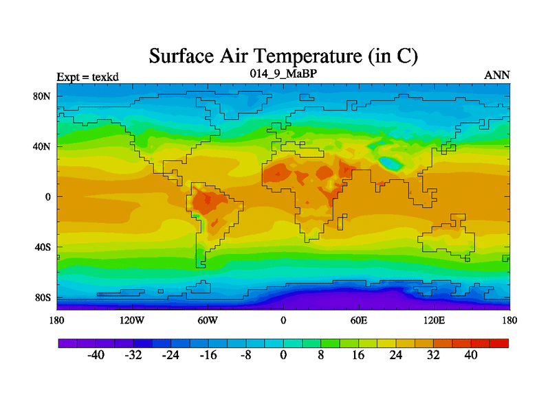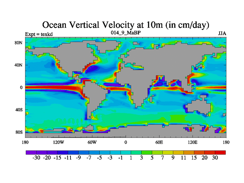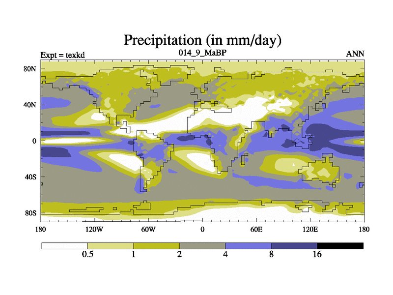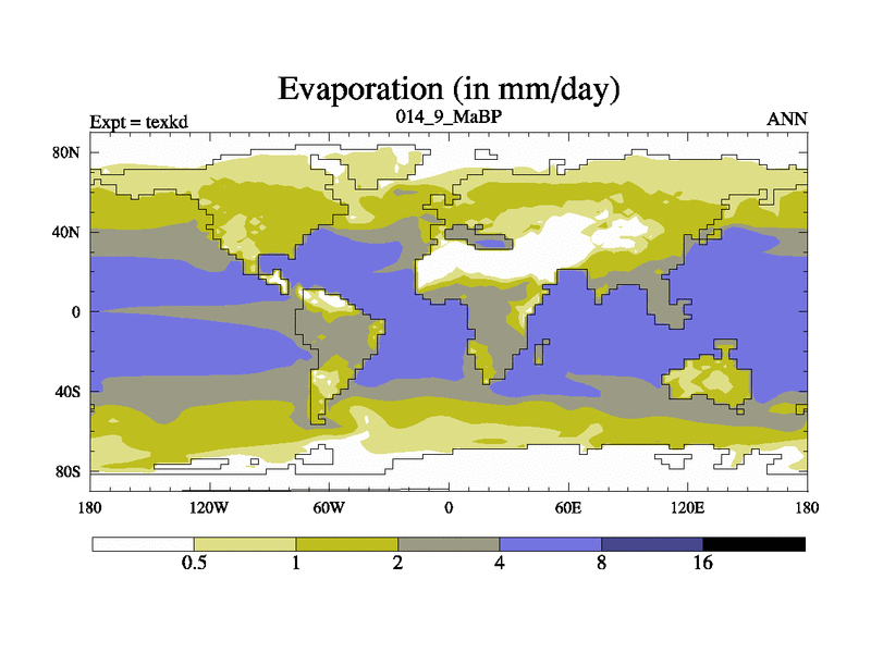 This is the 14.9 Ma simulation using the Scotese palaeogeographies. High output extension of the 5000 year spinup.