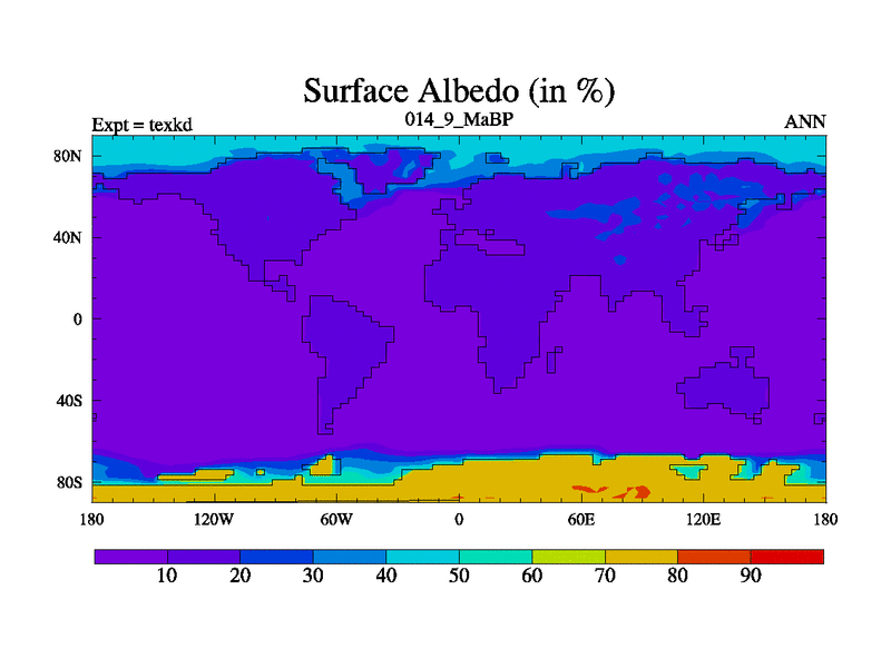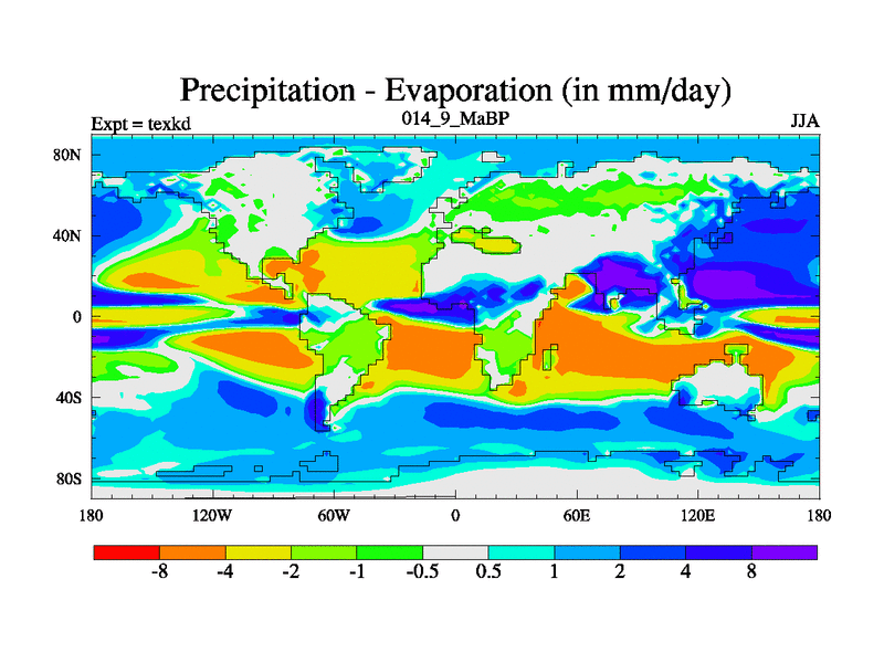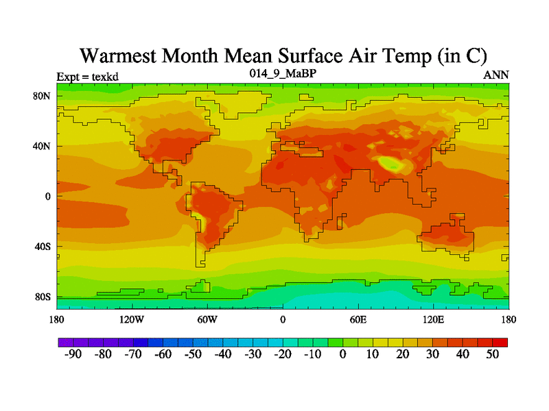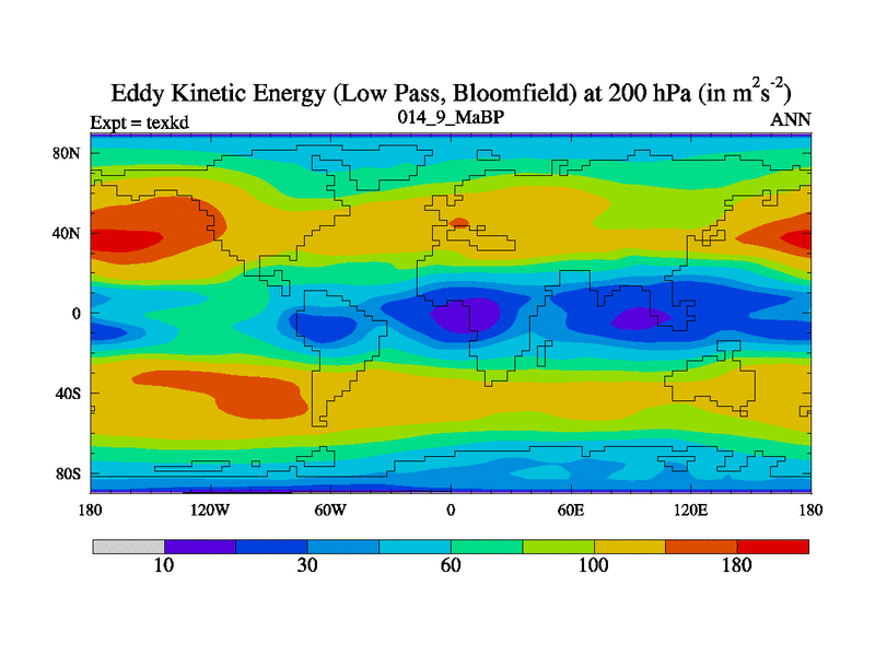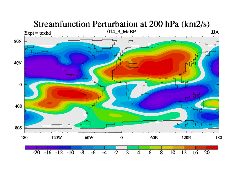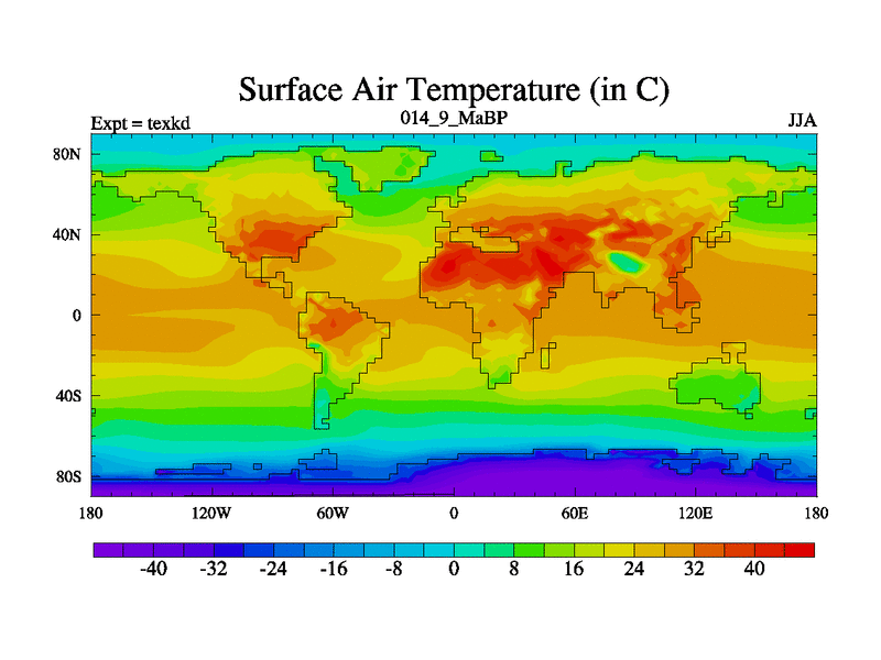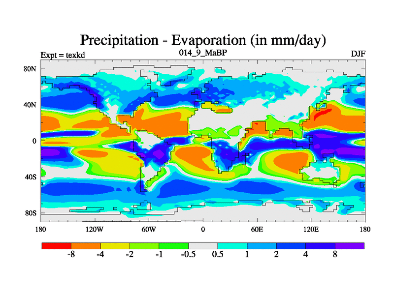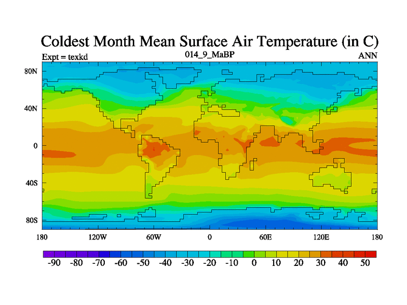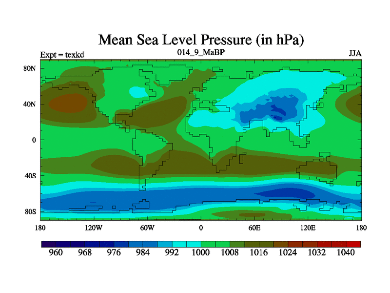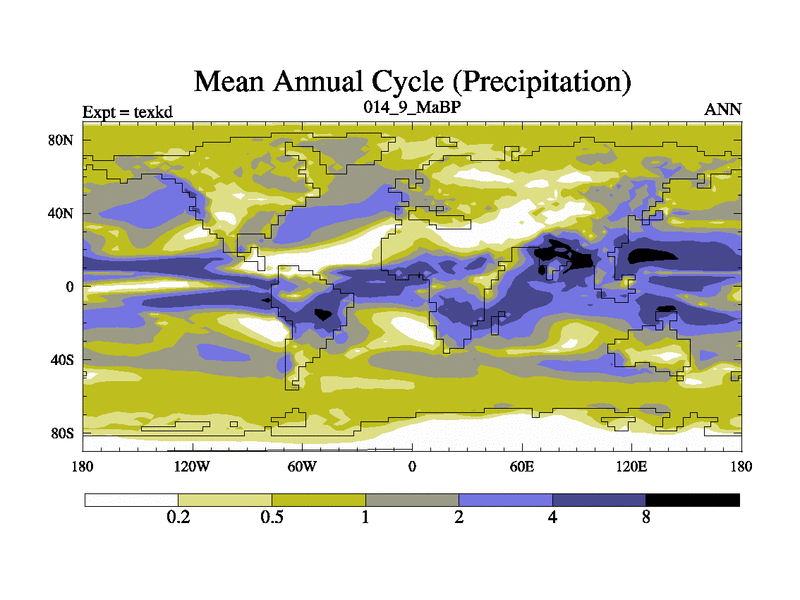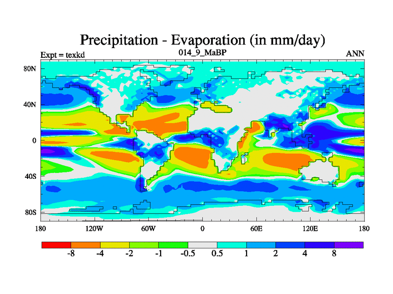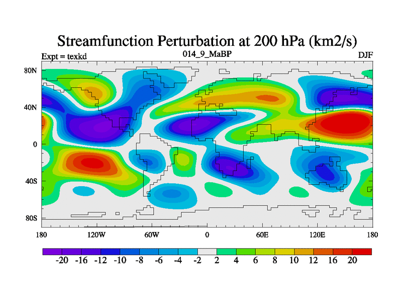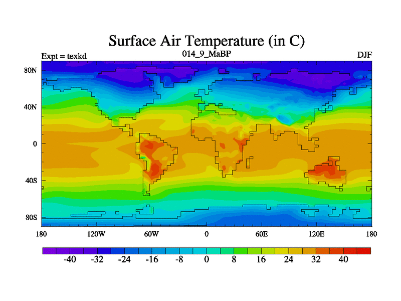 This is the 14.9 Ma simulation using the Scotese palaeogeographies. High output extension of the 5000 year spinup.