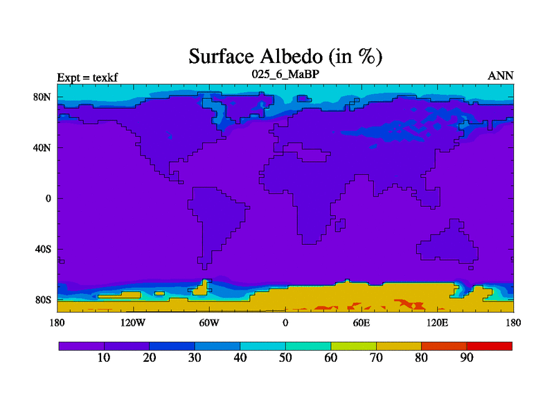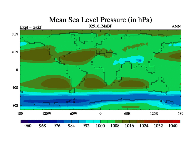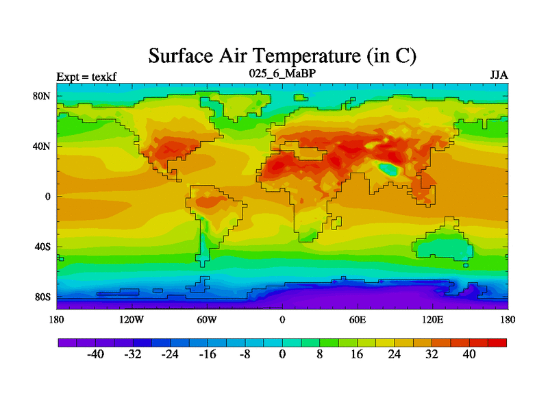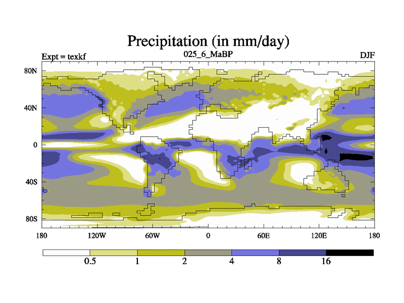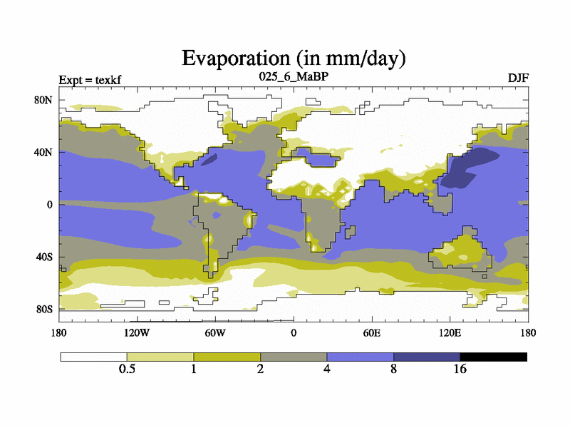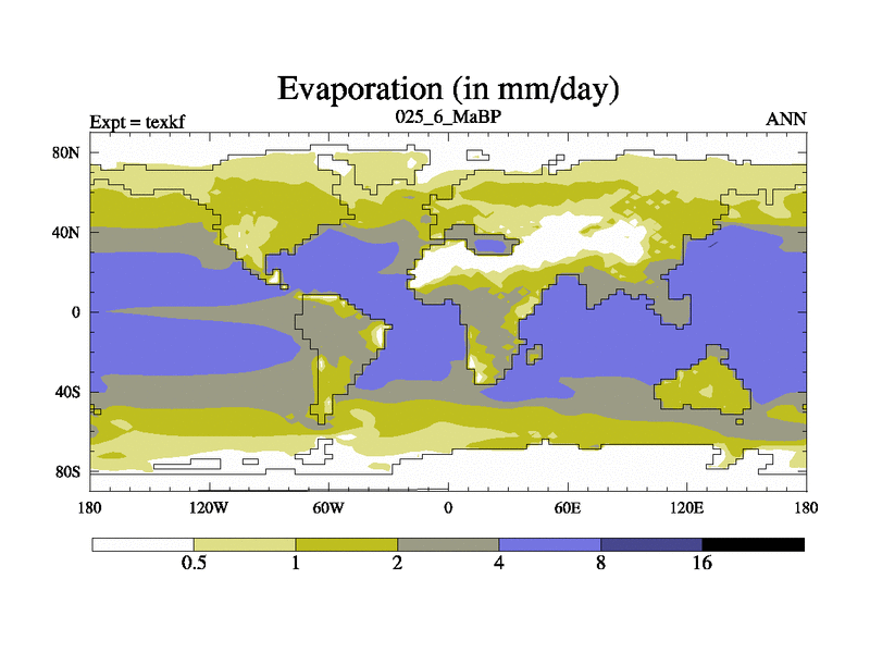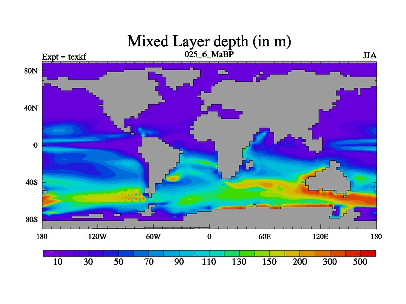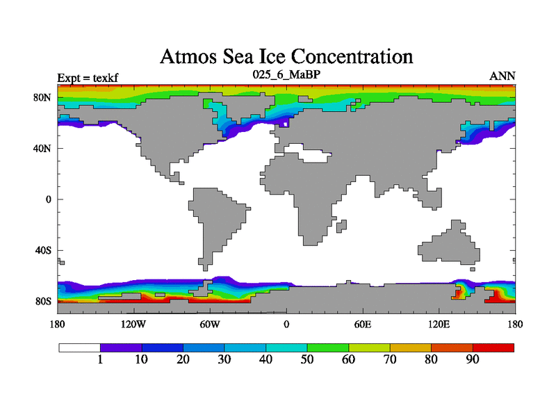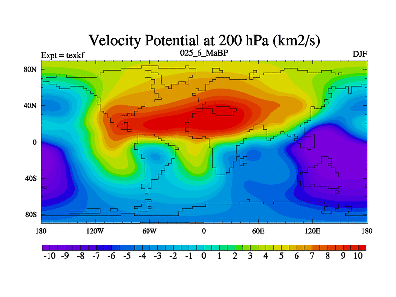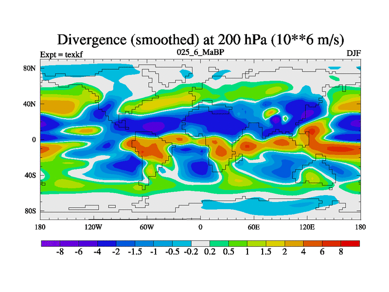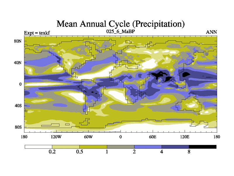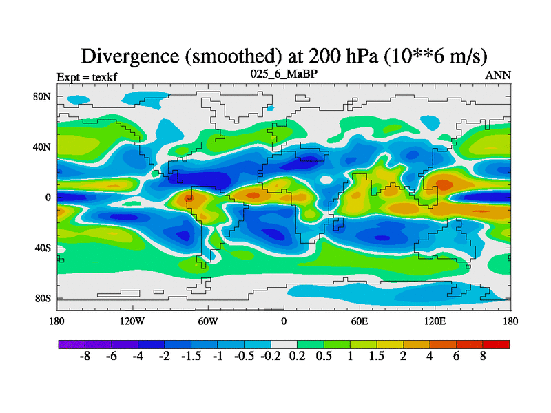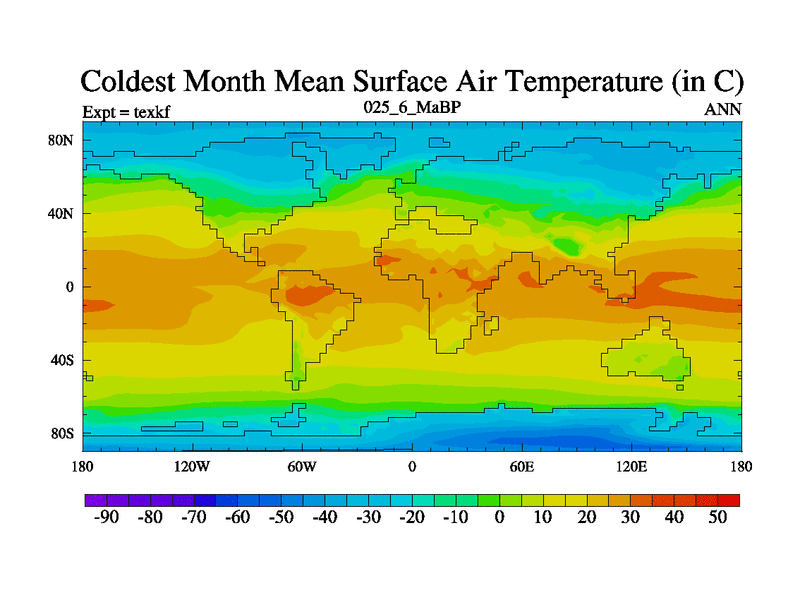 This is the 25.6 Ma simulation using the Scotese palaeogeographies. High output extension of the 5000 year spinup.