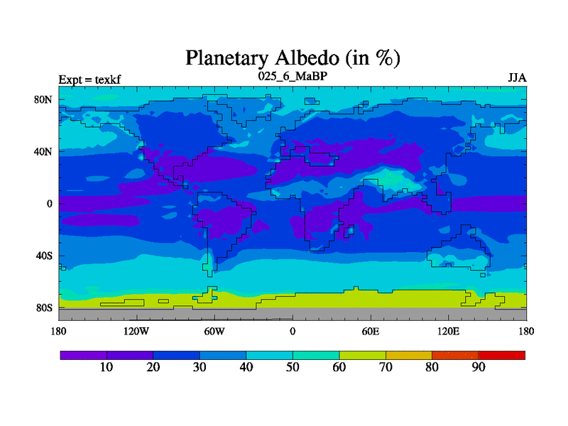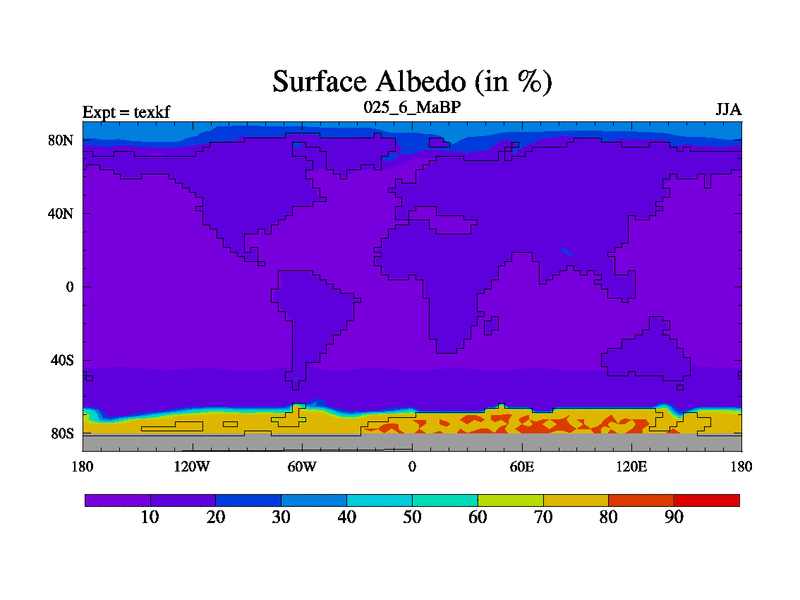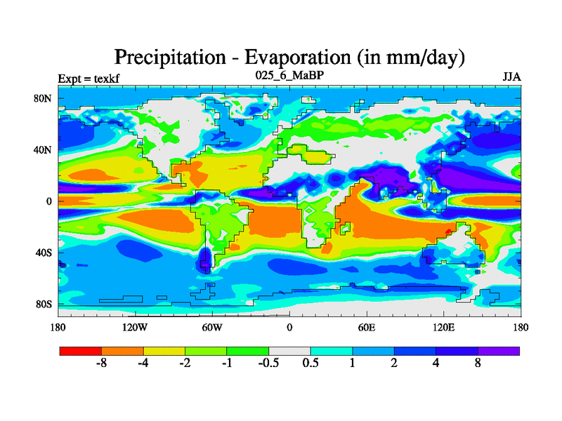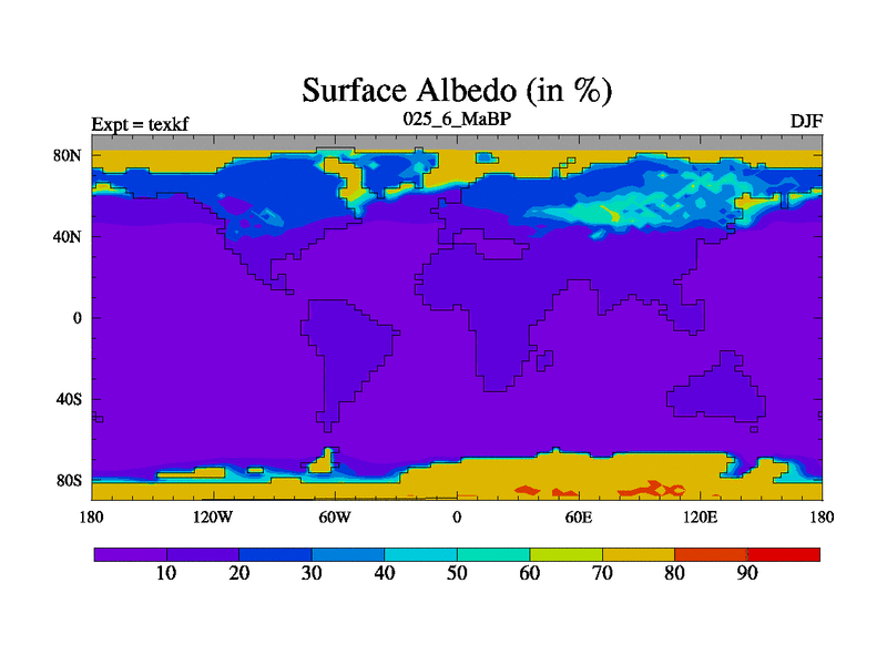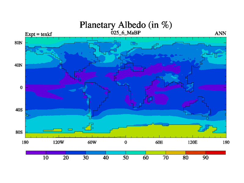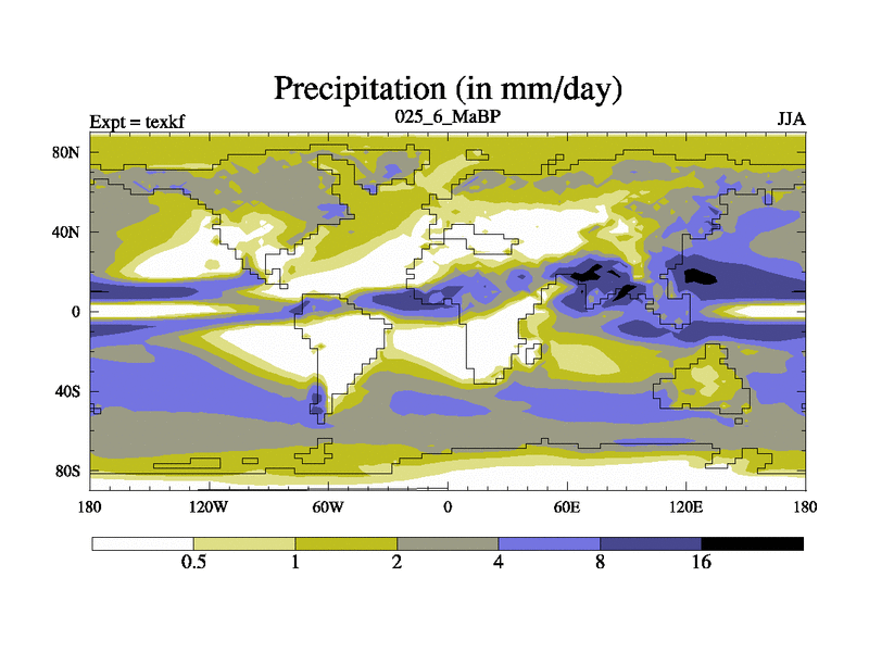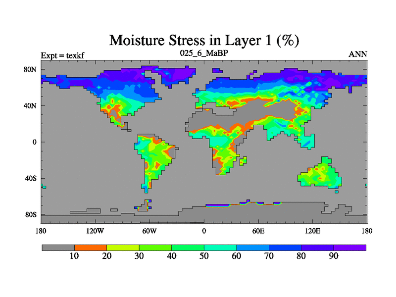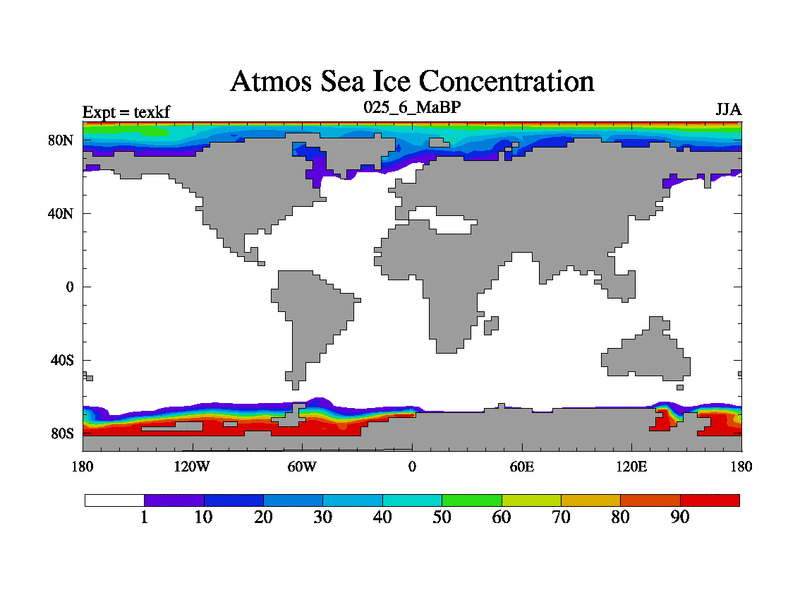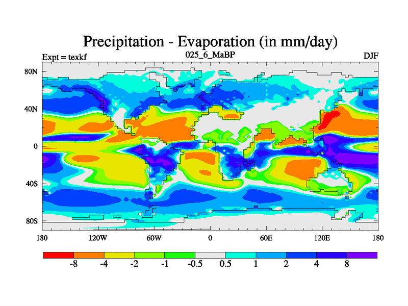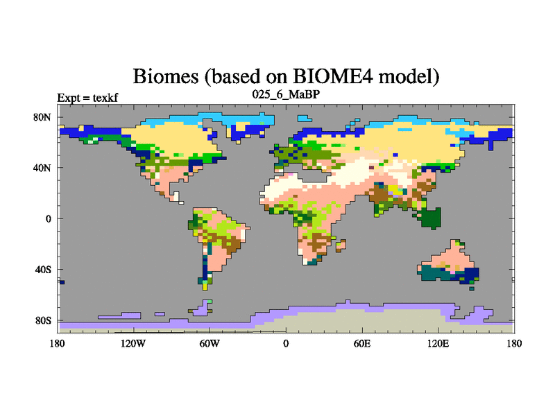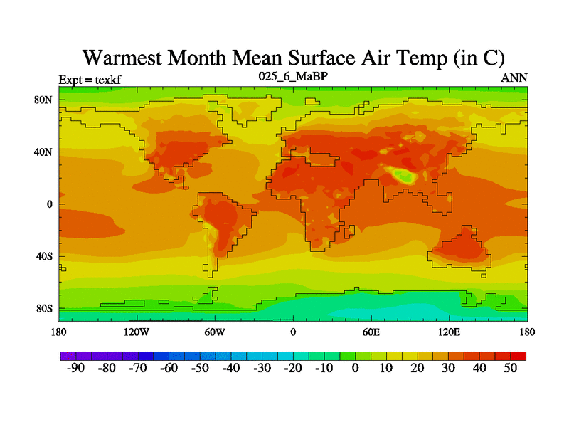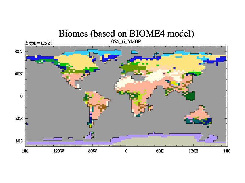 This is the 25.6 Ma simulation using the Scotese palaeogeographies. High output extension of the 5000 year spinup.