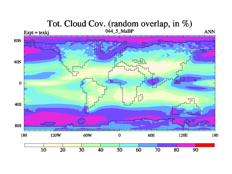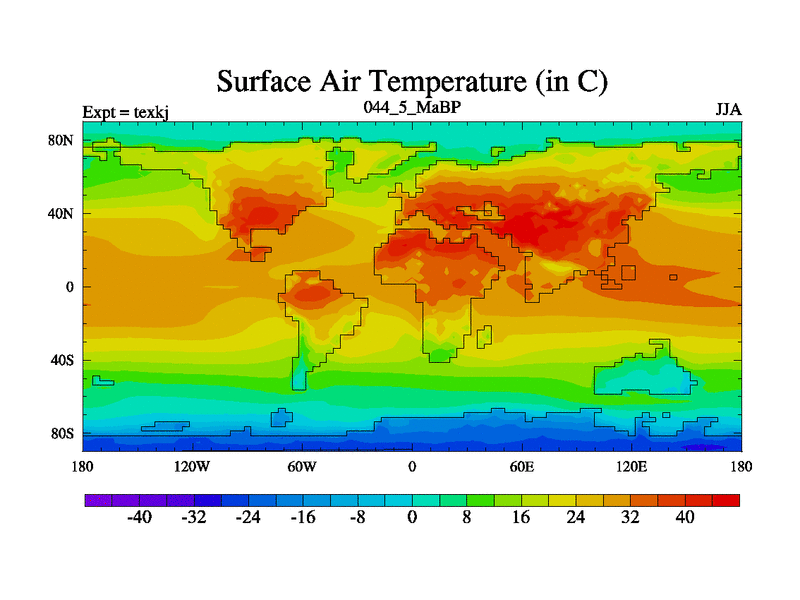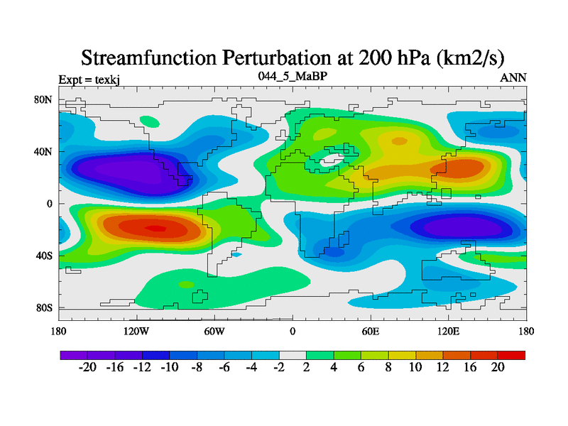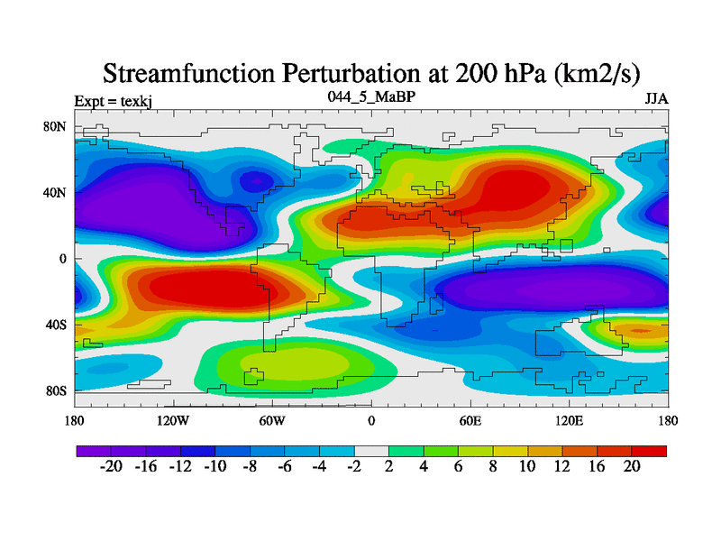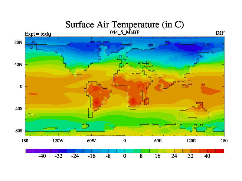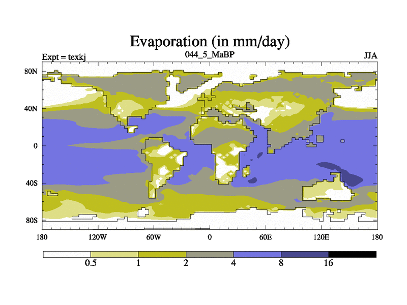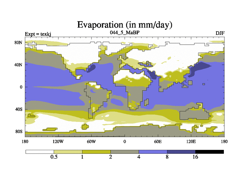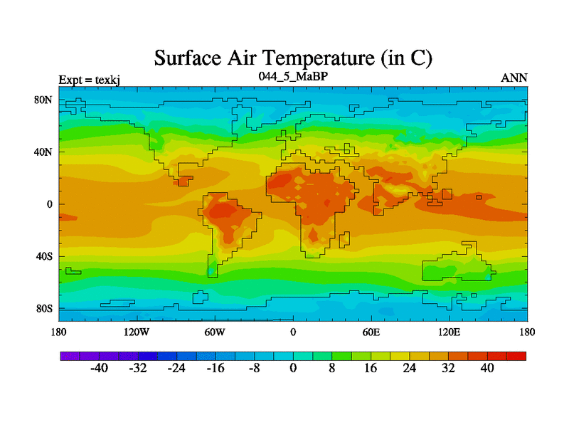 This is the 44.5 Ma simulation using the Scotese palaeogeographies. High output extension of the 5000 year spinup.