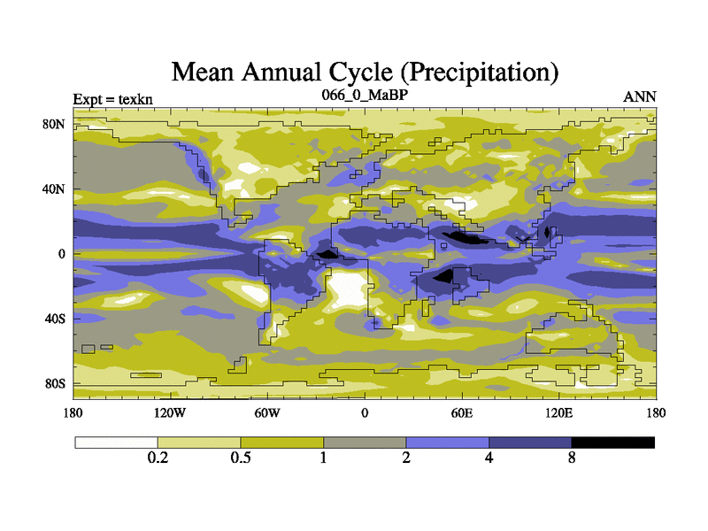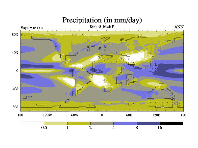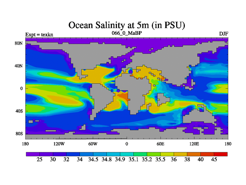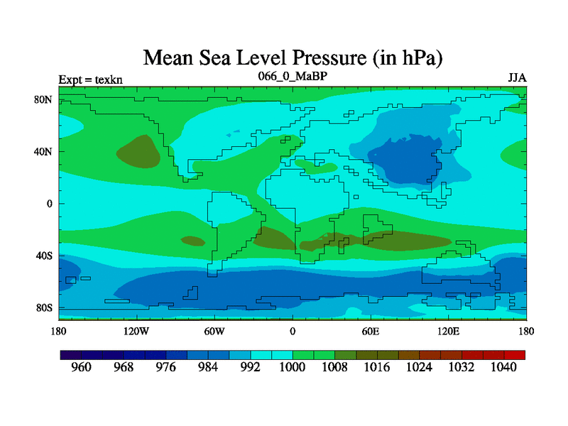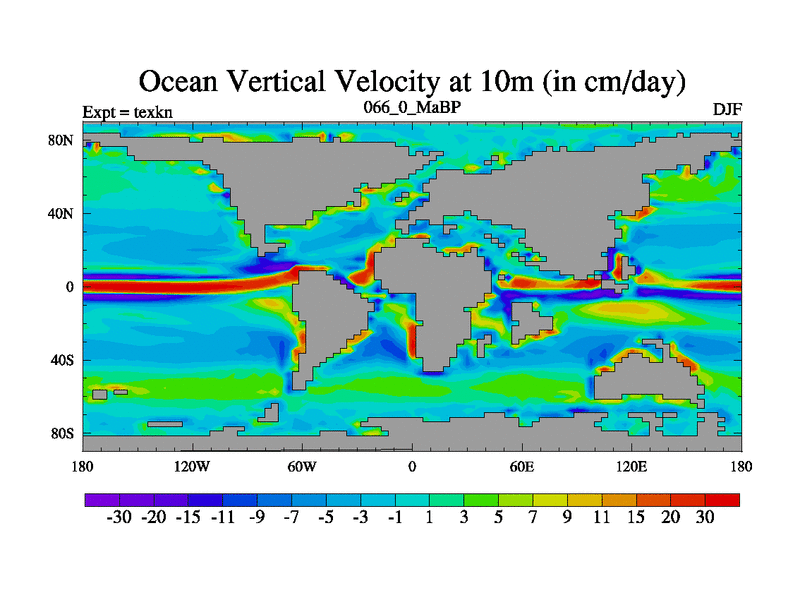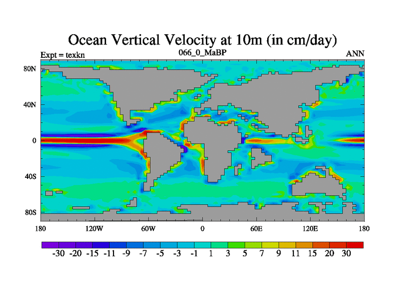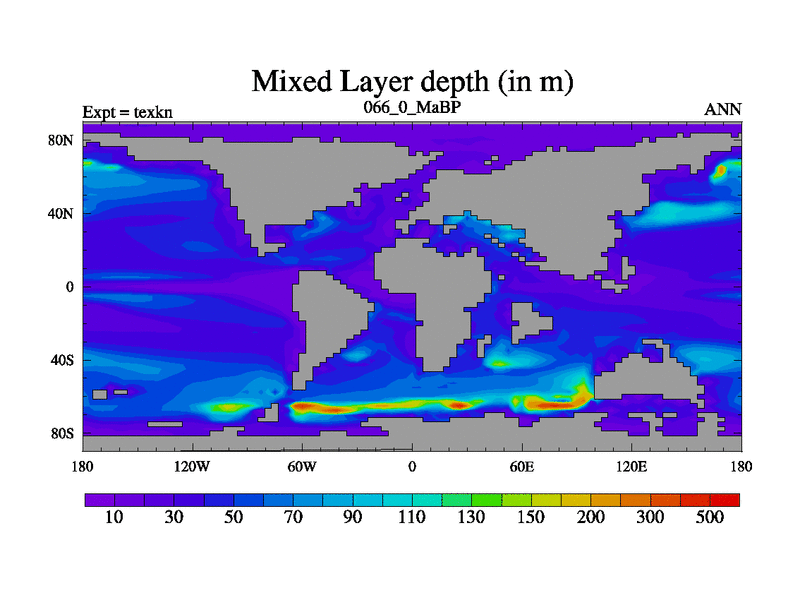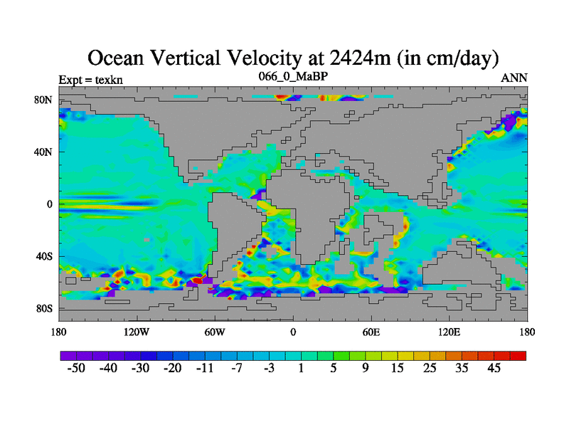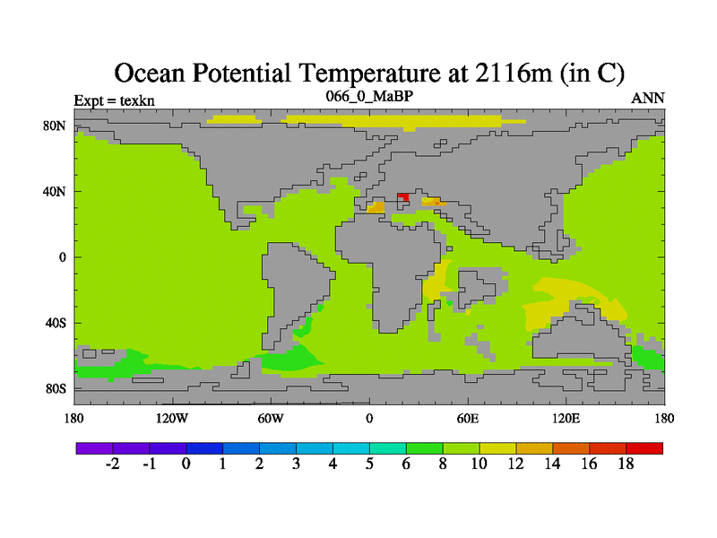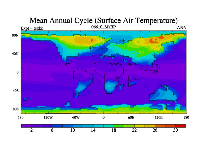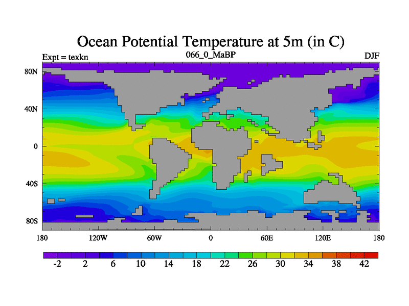 This is the 66.0 Ma simulation using the Scotese palaeogeographies. High output extension of the 5000 year spinup.
