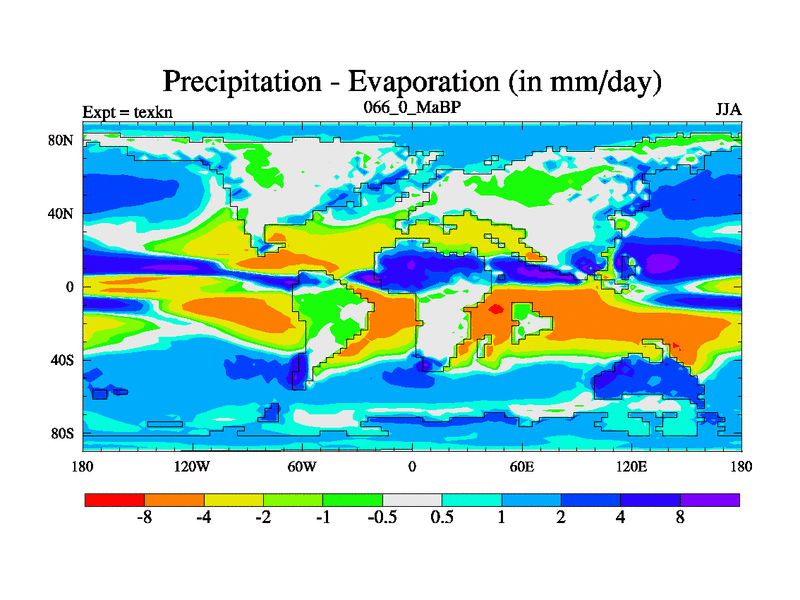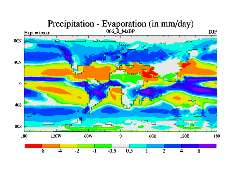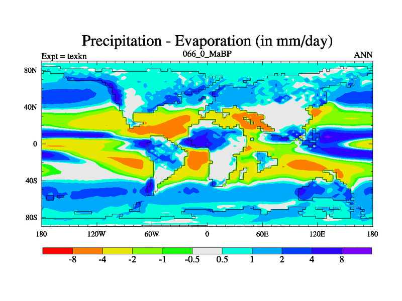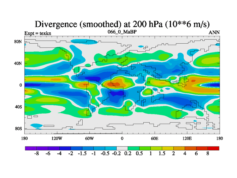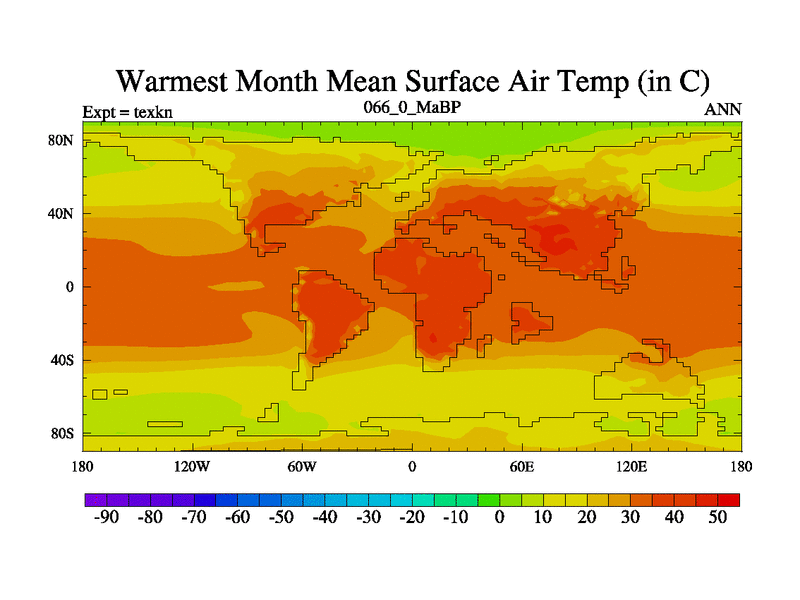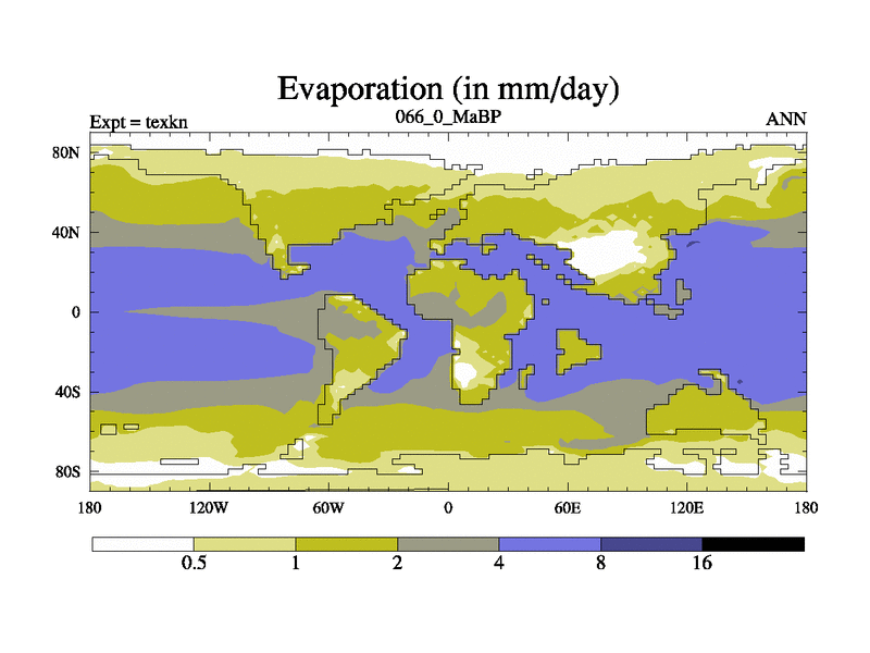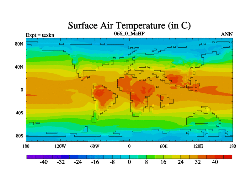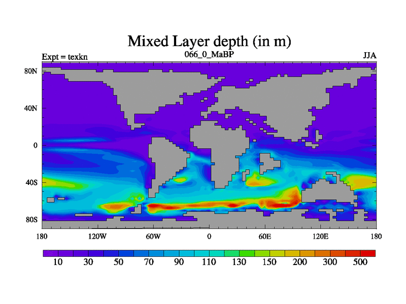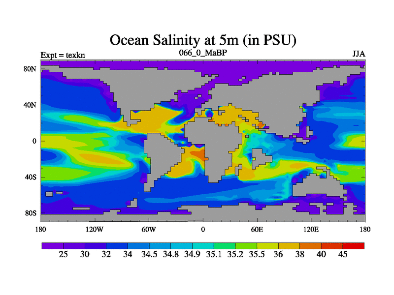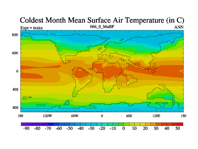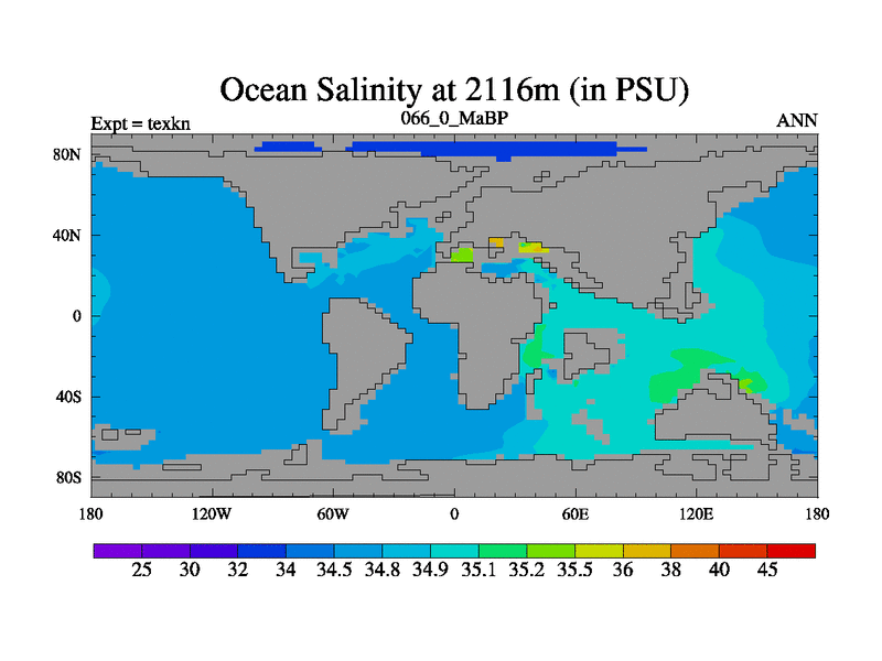 This is the 66.0 Ma simulation using the Scotese palaeogeographies. High output extension of the 5000 year spinup.
