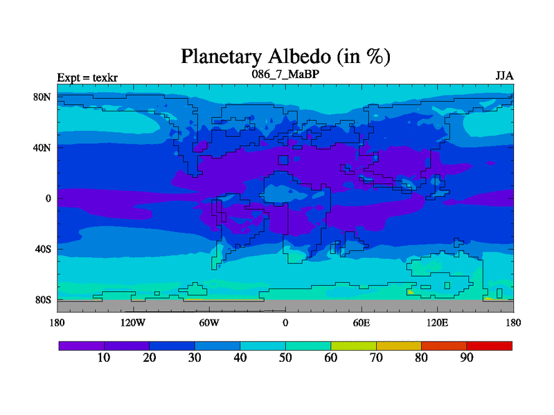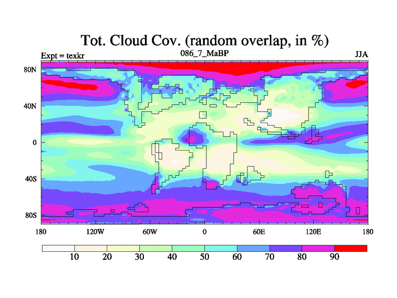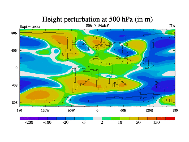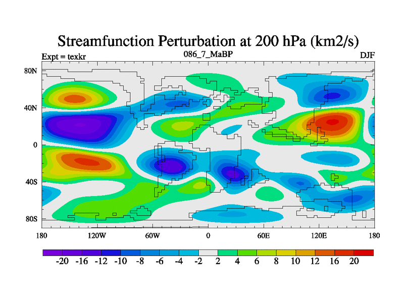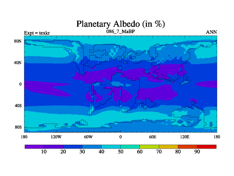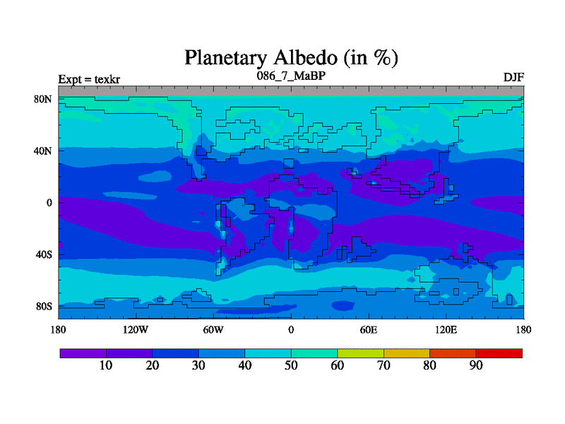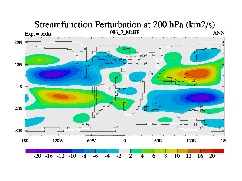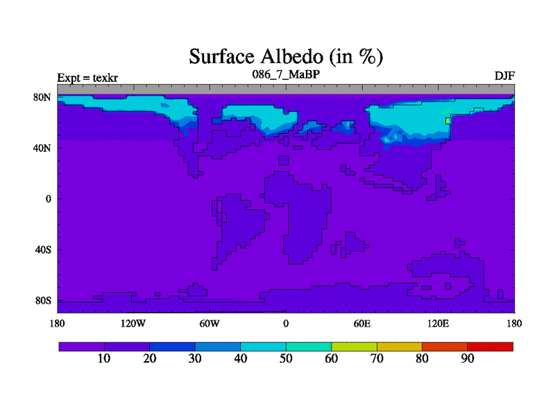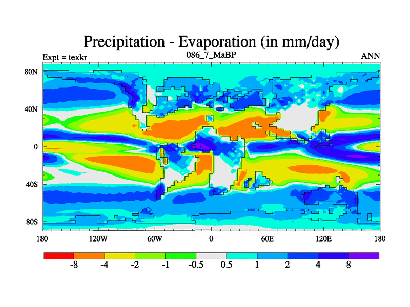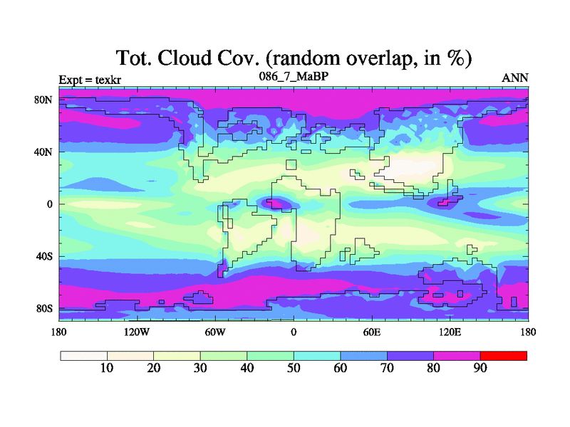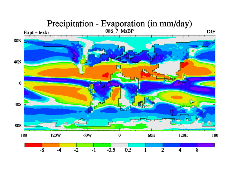 This is the 86.7 Ma simulation using the Scotese palaeogeographies. High output extension of the 5000 year spinup.
