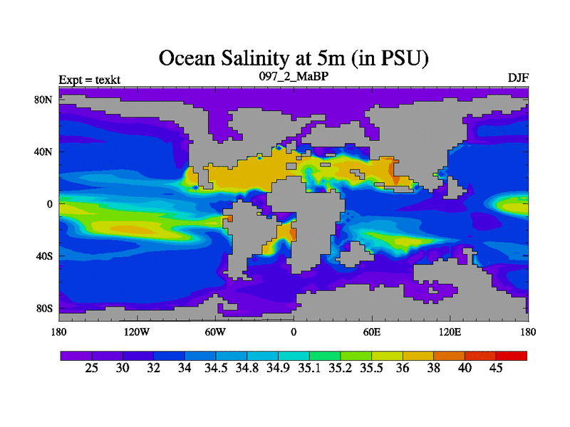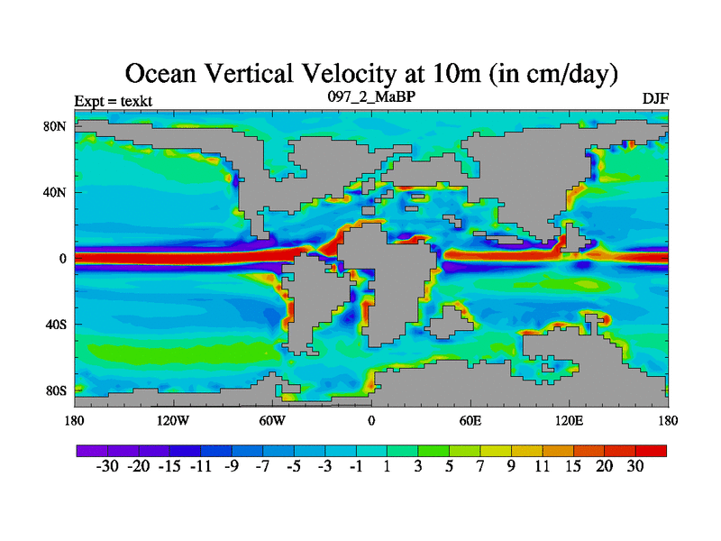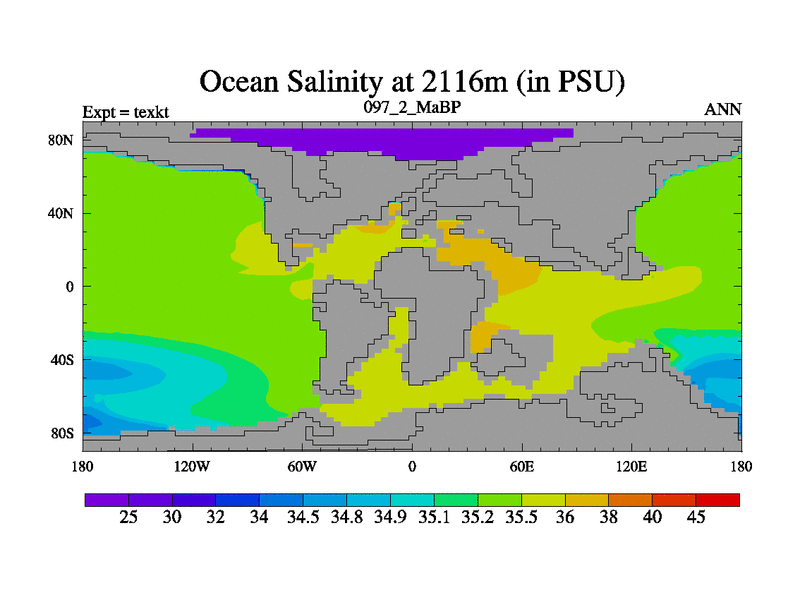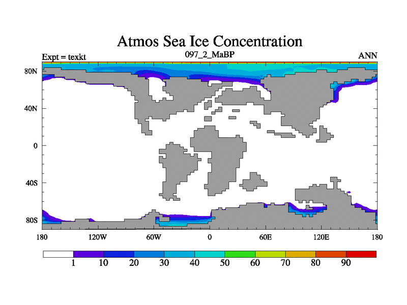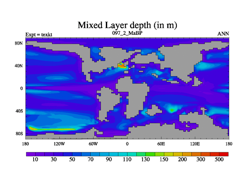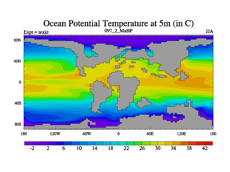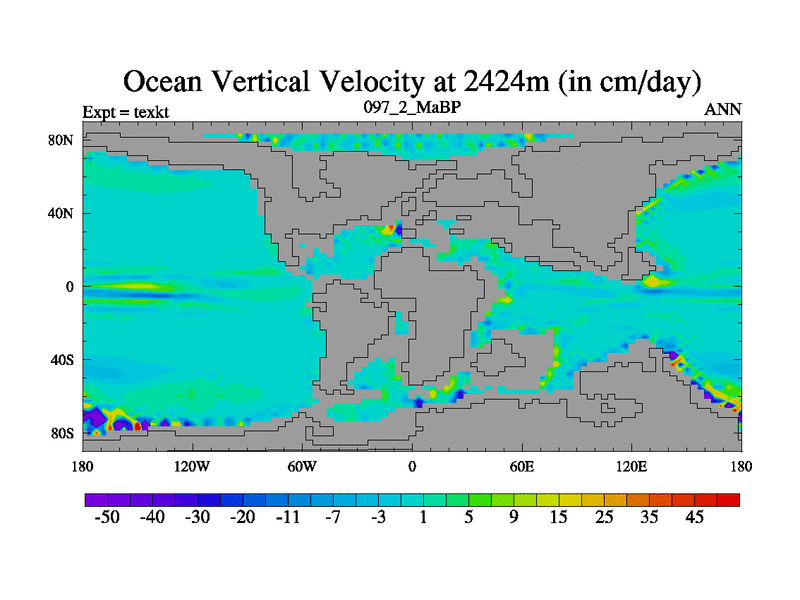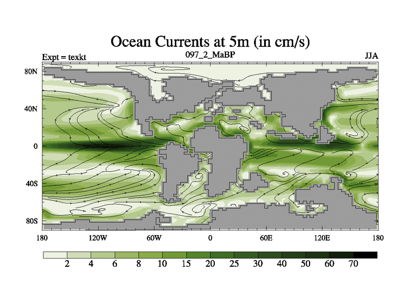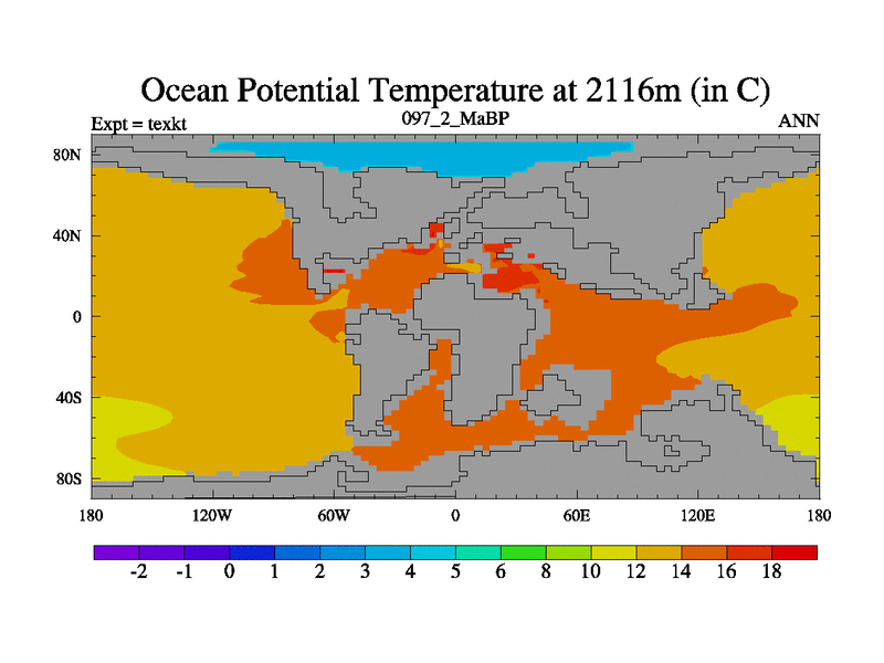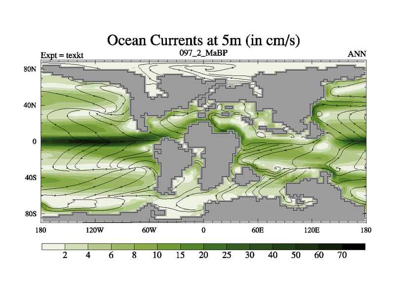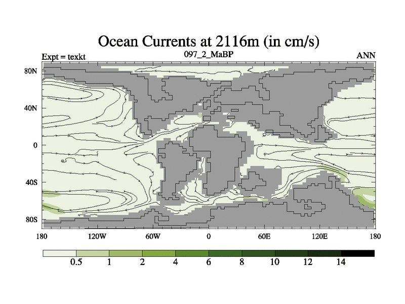 This is the 97.2 Ma simulation using the Scotese palaeogeographies. High output extension of the 5000 year spinup.