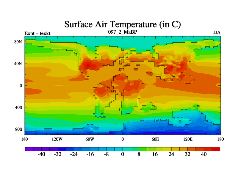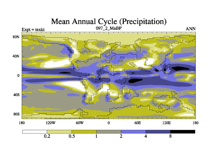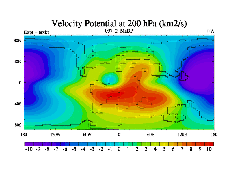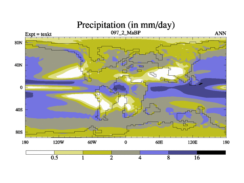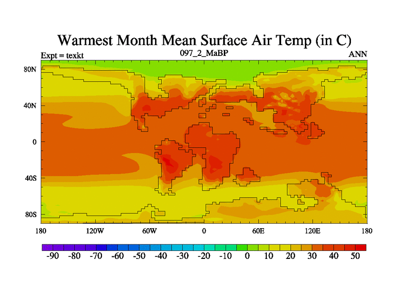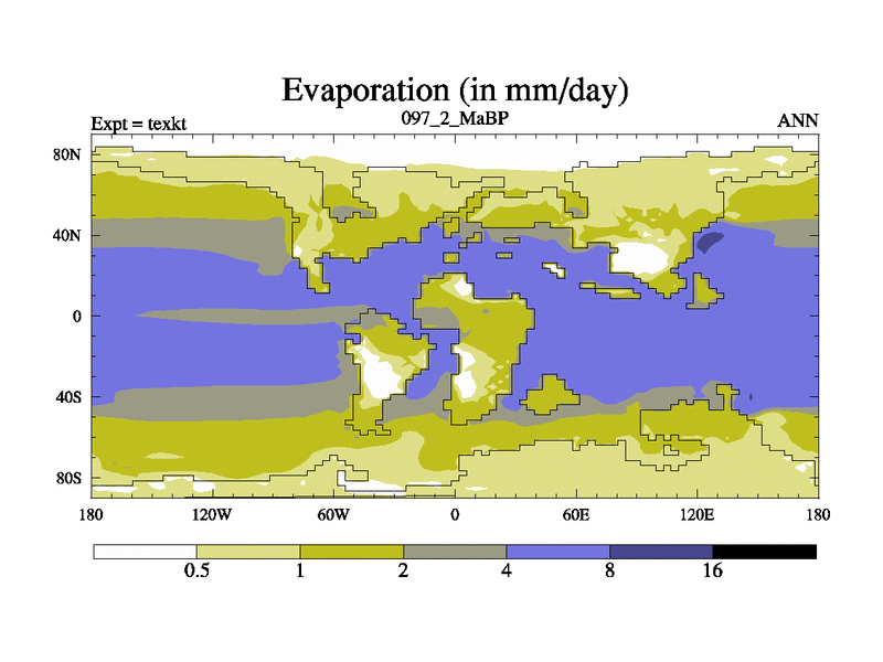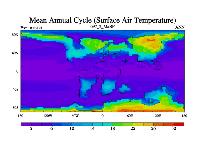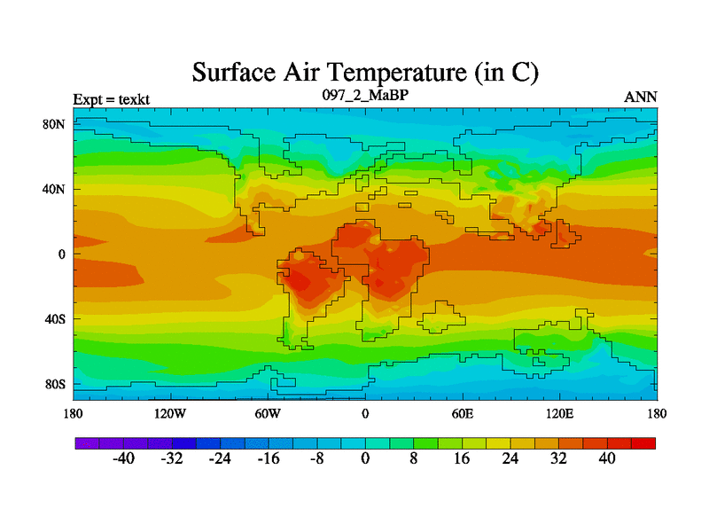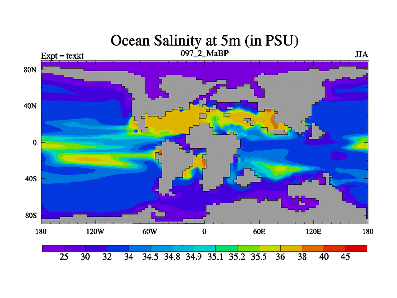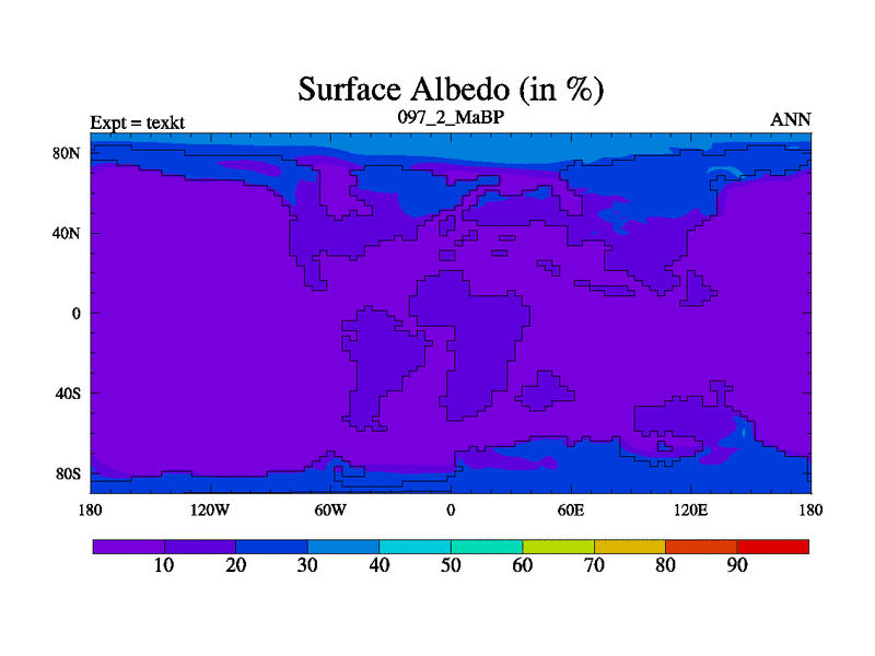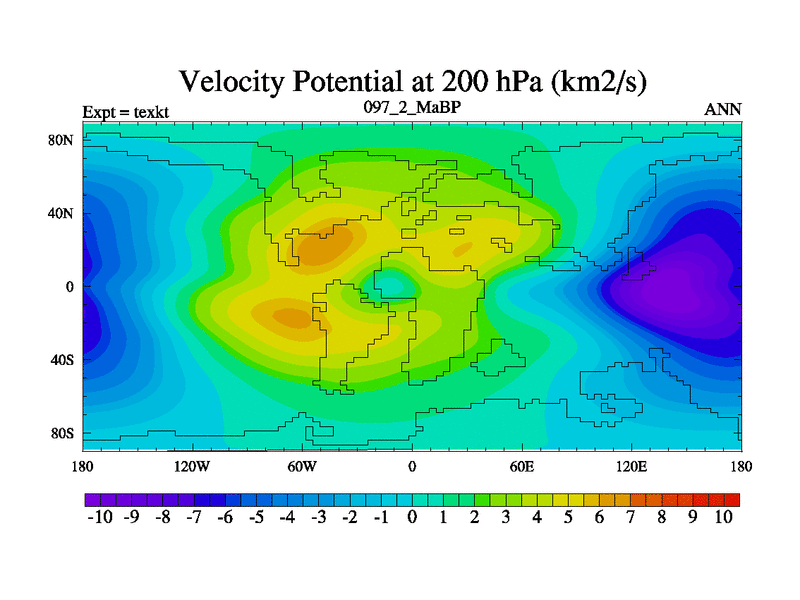 This is the 97.2 Ma simulation using the Scotese palaeogeographies. High output extension of the 5000 year spinup.