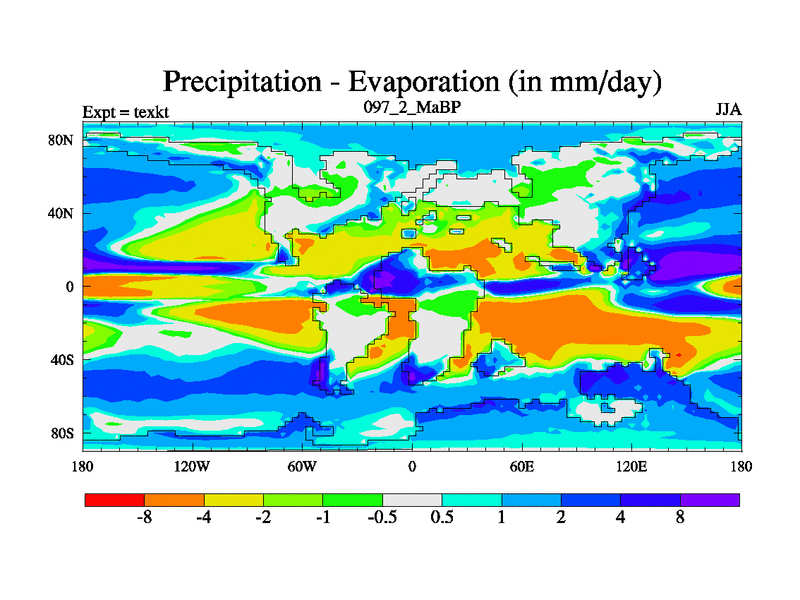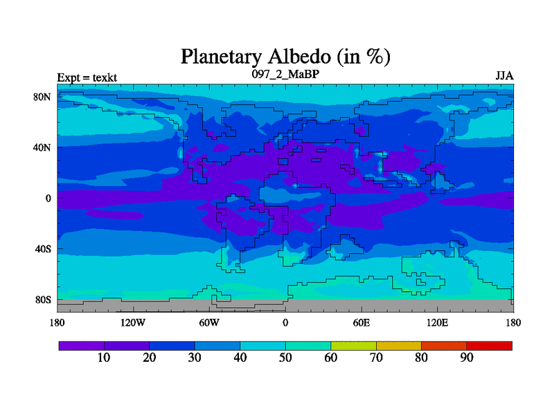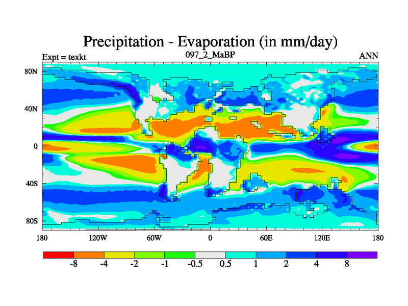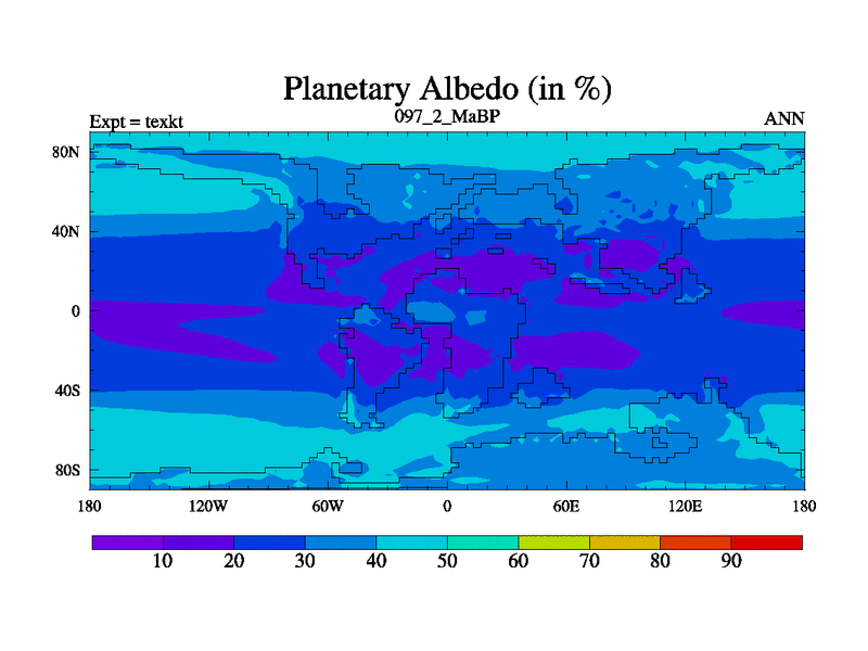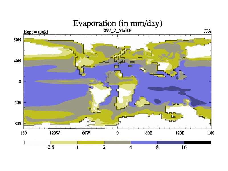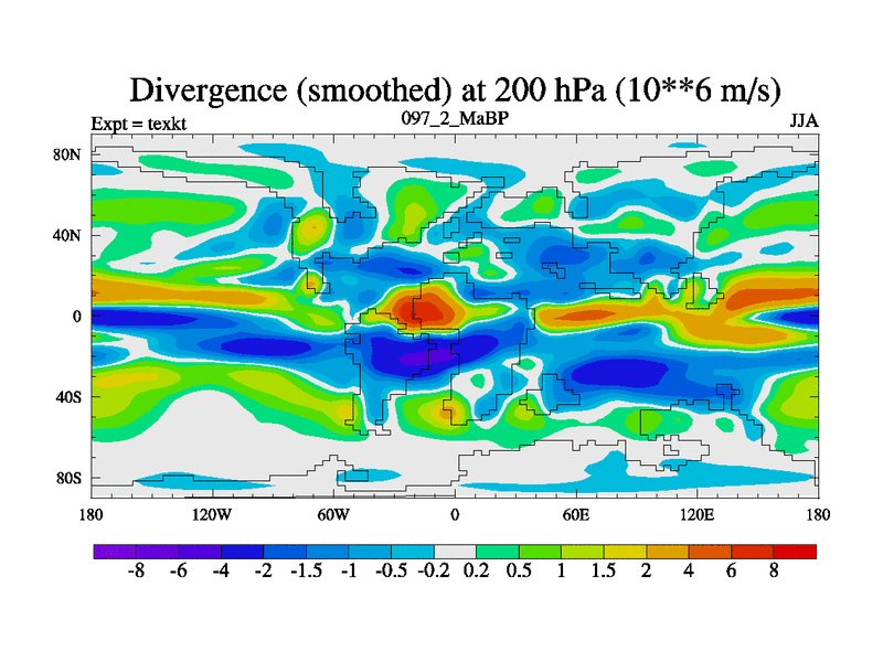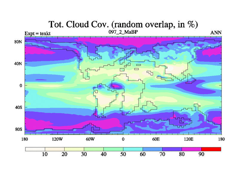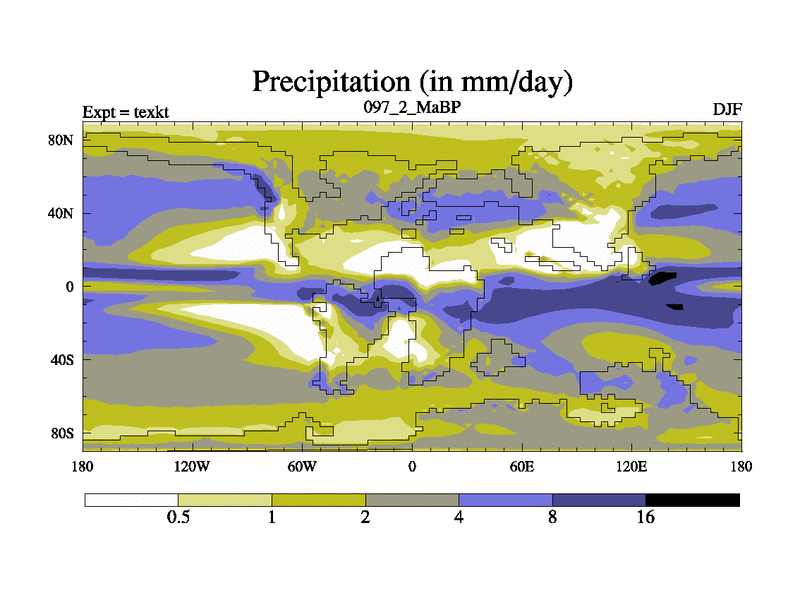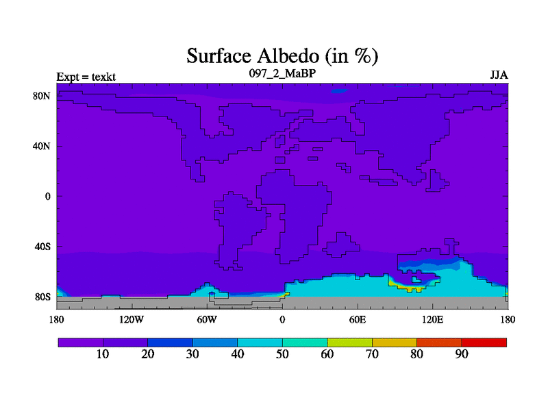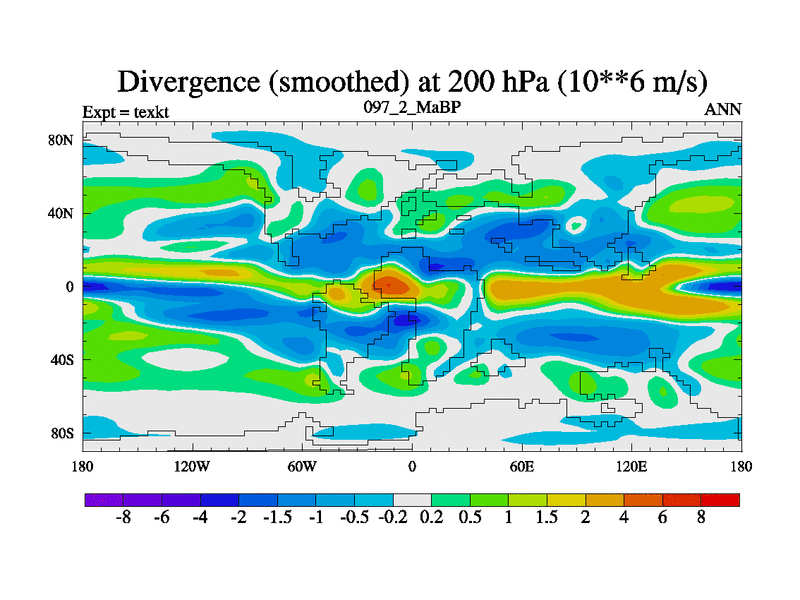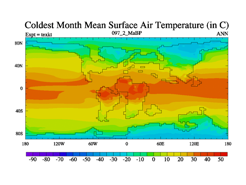 This is the 97.2 Ma simulation using the Scotese palaeogeographies. High output extension of the 5000 year spinup.