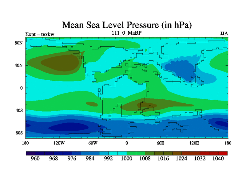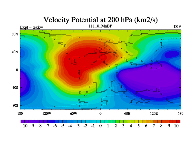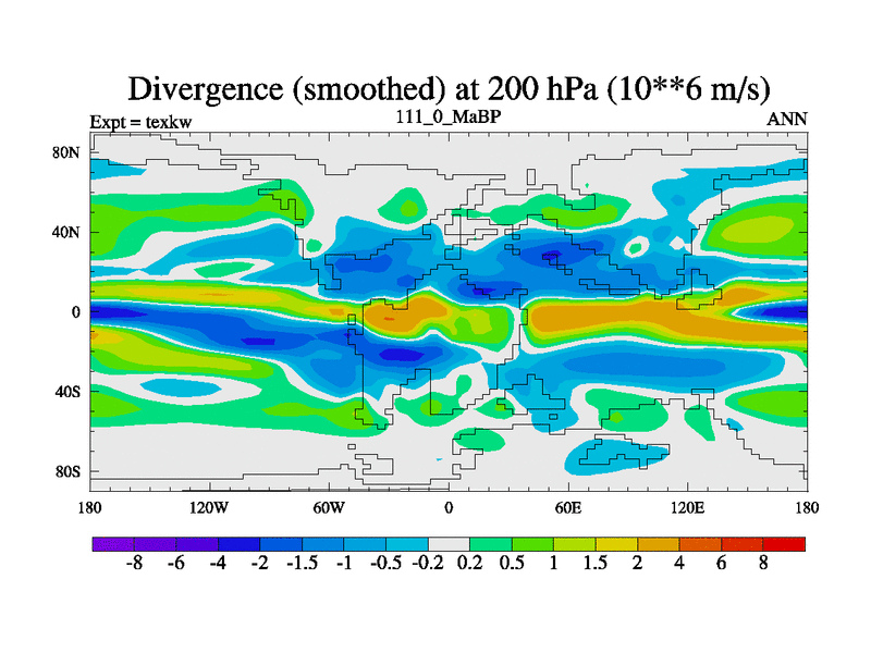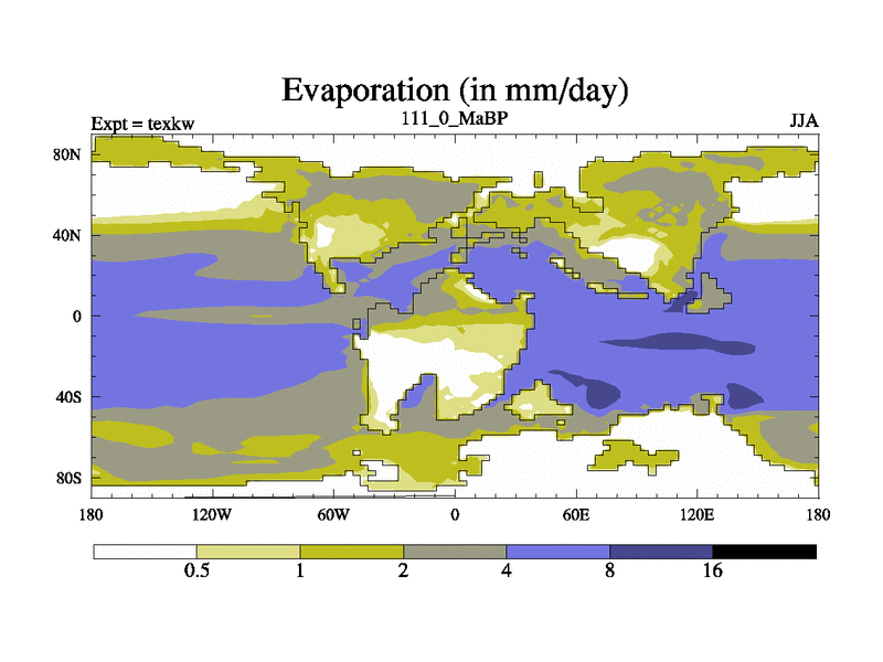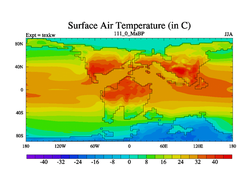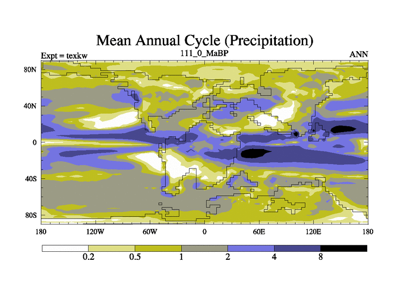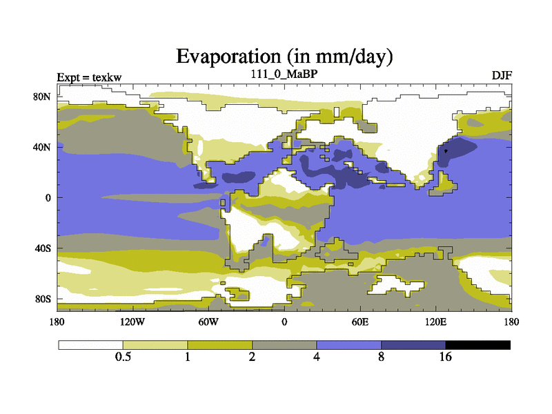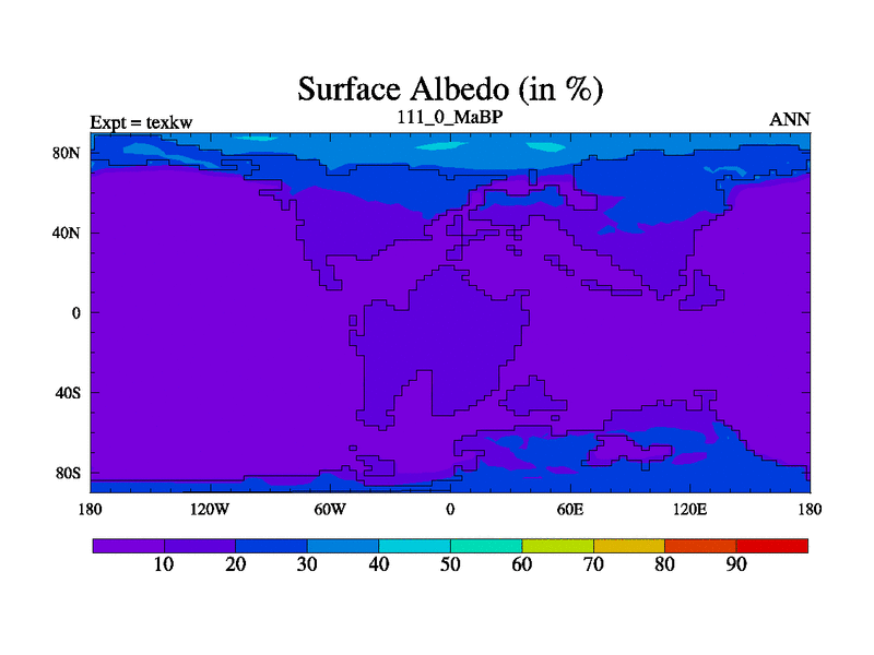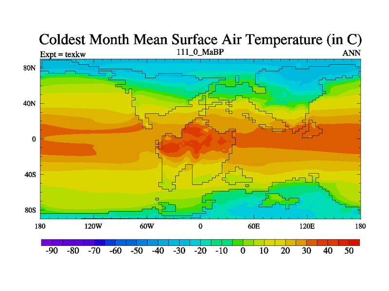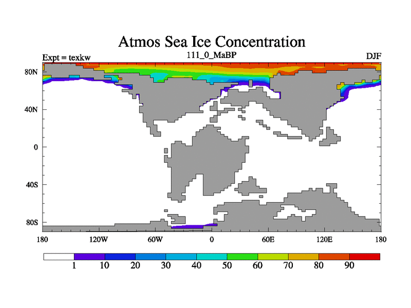 This is the 111.0 Ma simulation using the Scotese palaeogeographies. High output extension of the 5000 year spinup.