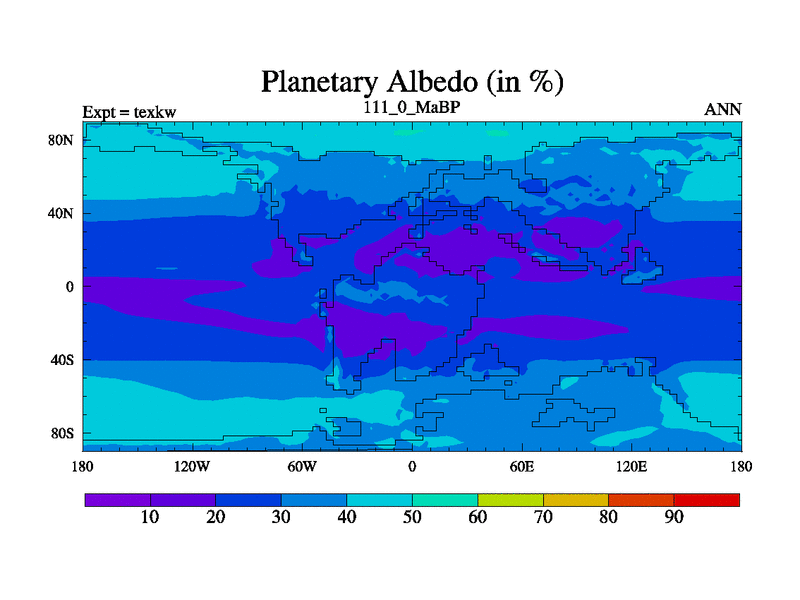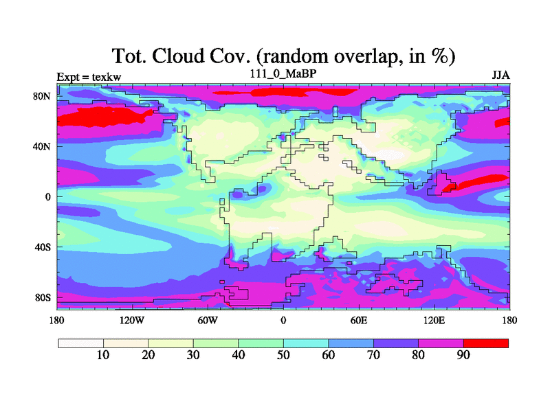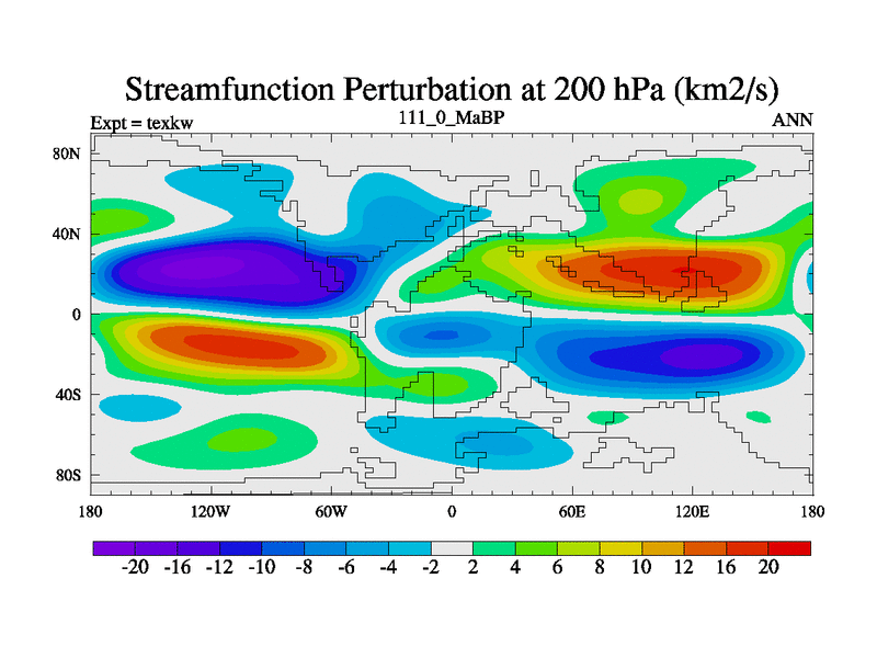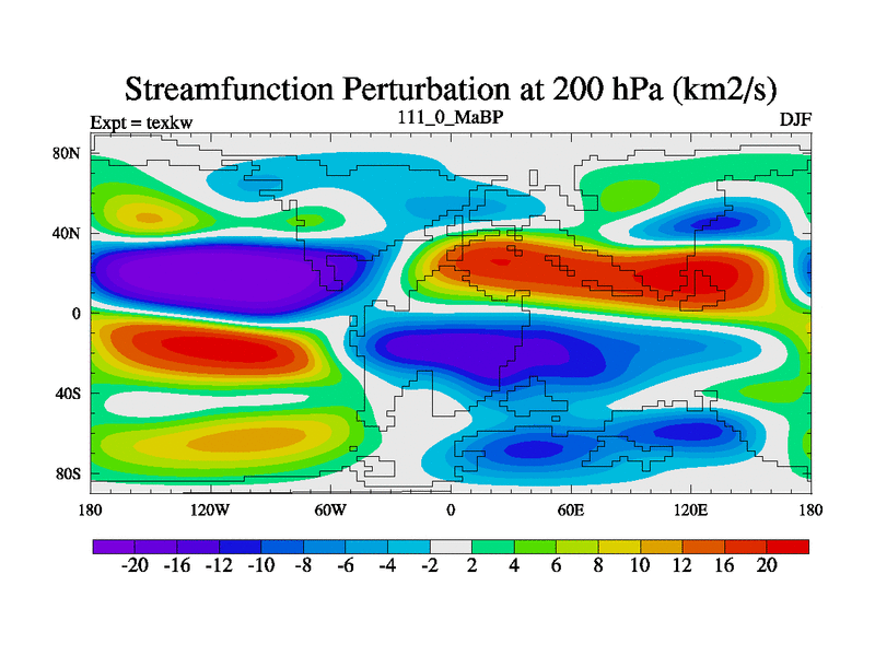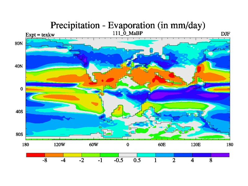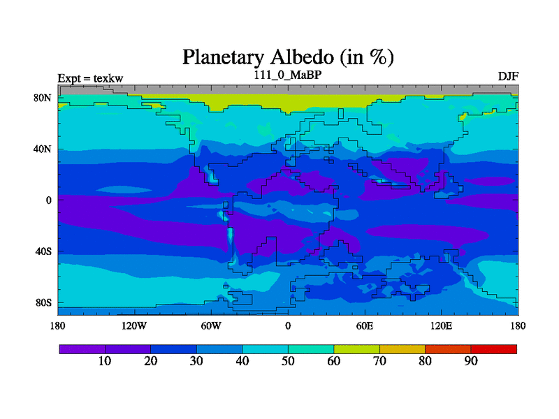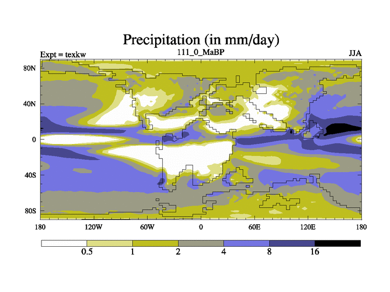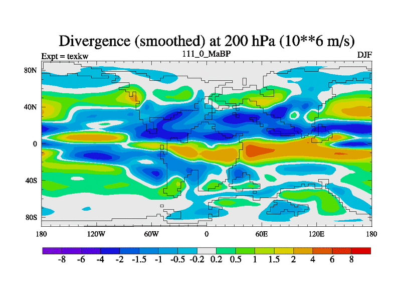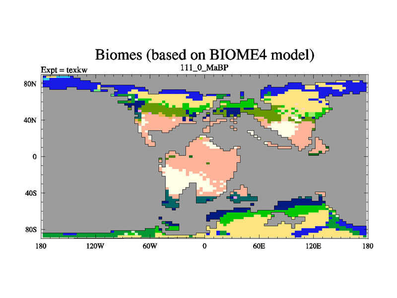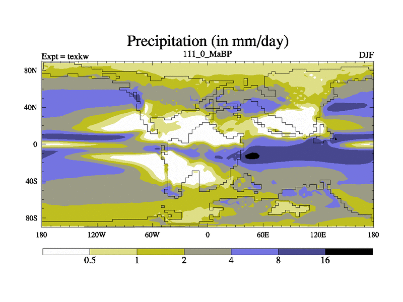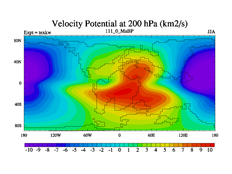 This is the 111.0 Ma simulation using the Scotese palaeogeographies. High output extension of the 5000 year spinup.