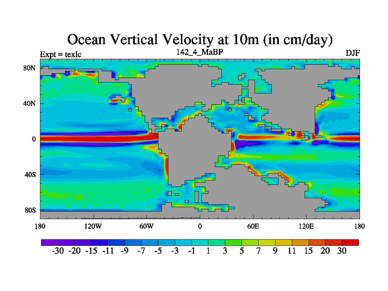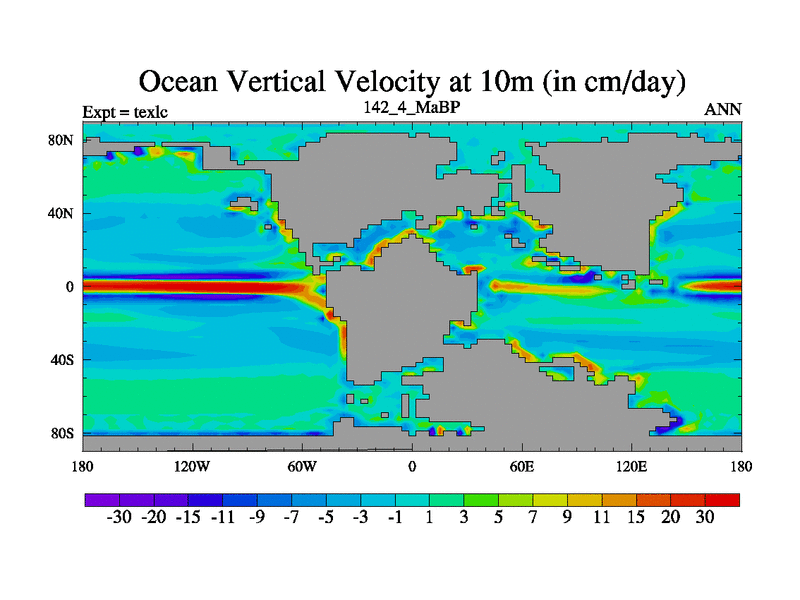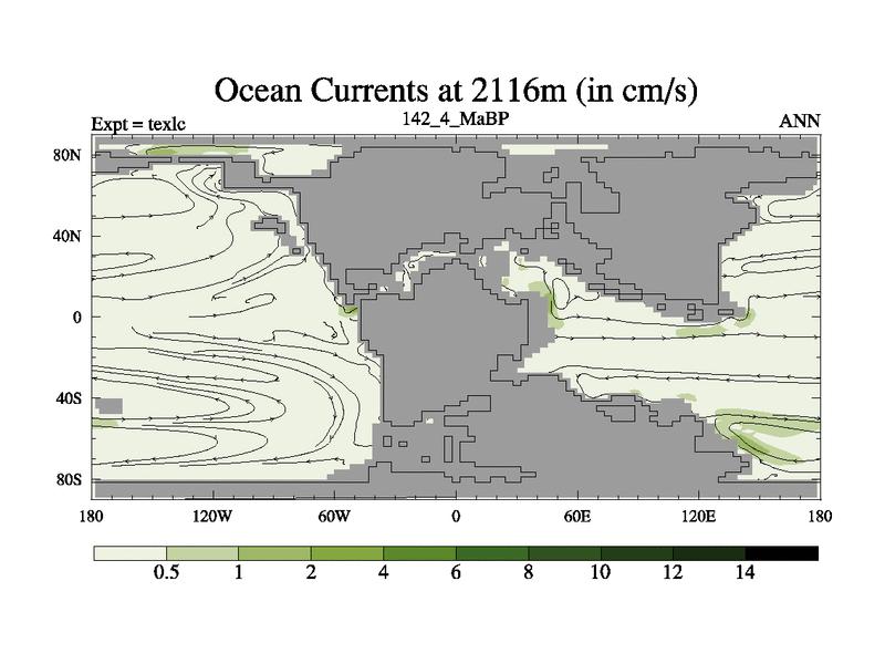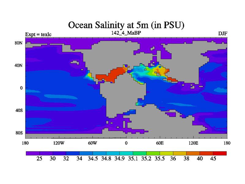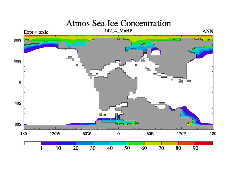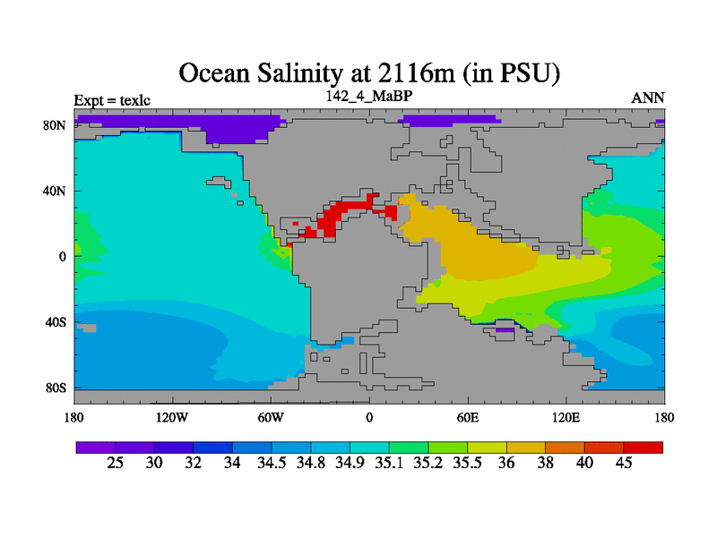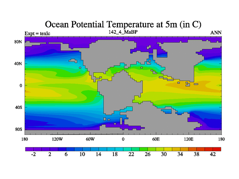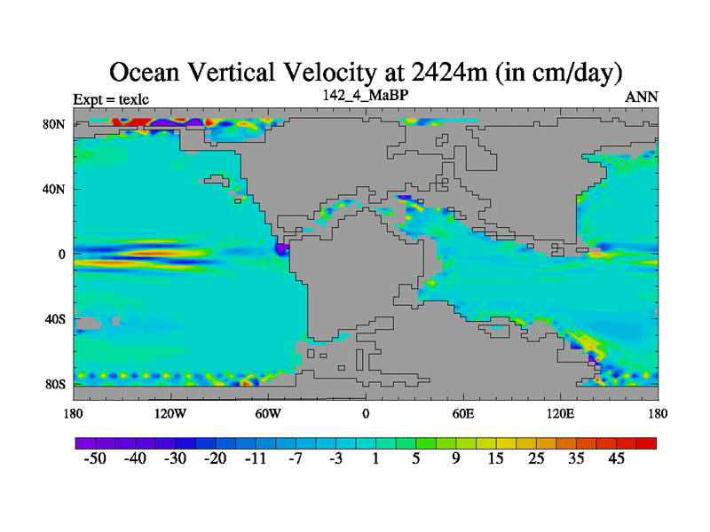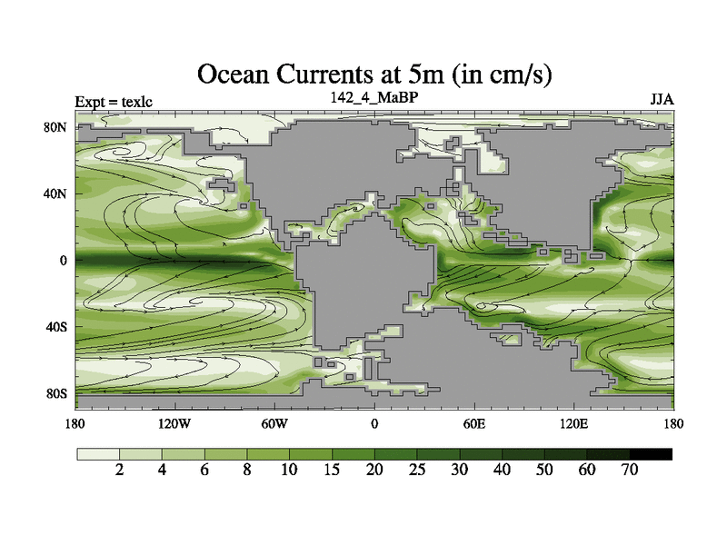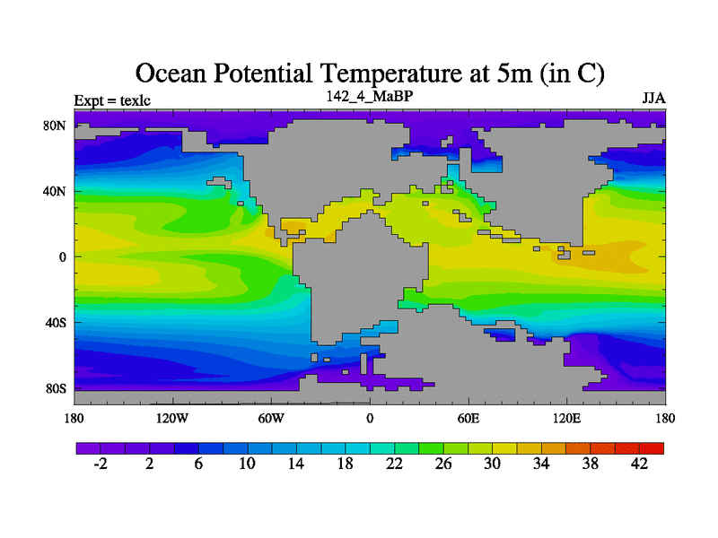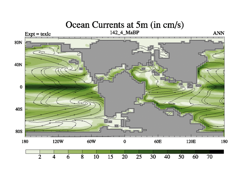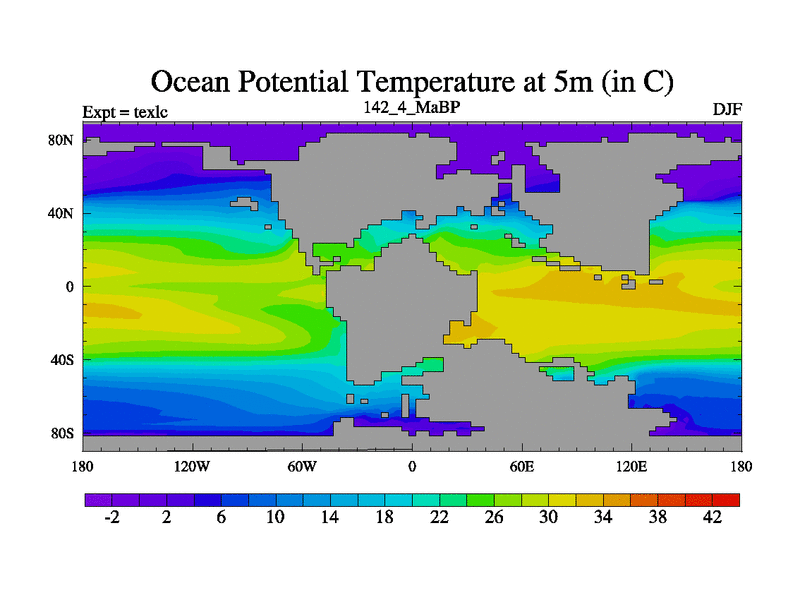 This is the 142.4 Ma simulation using the Scotese palaeogeographies. High output extension of the 5000 year spinup.