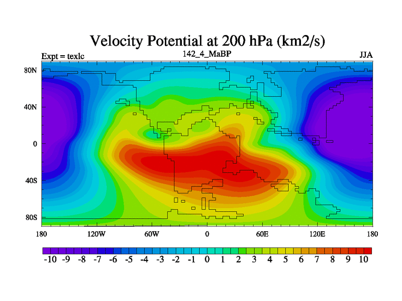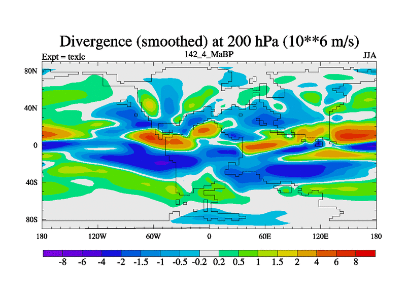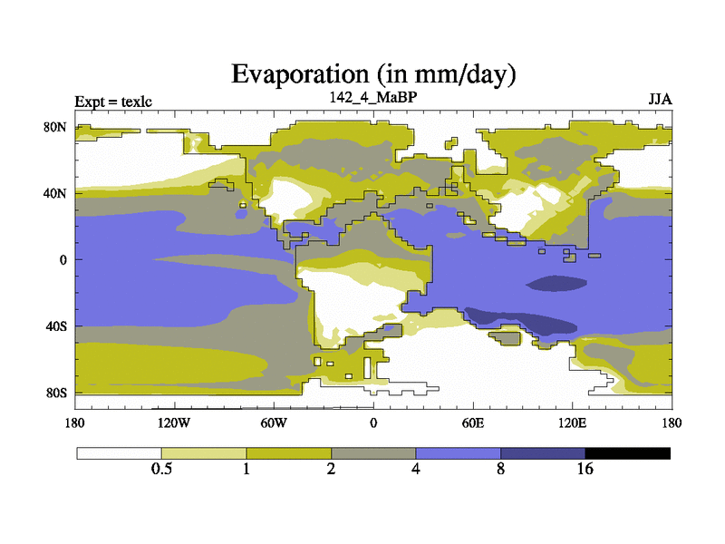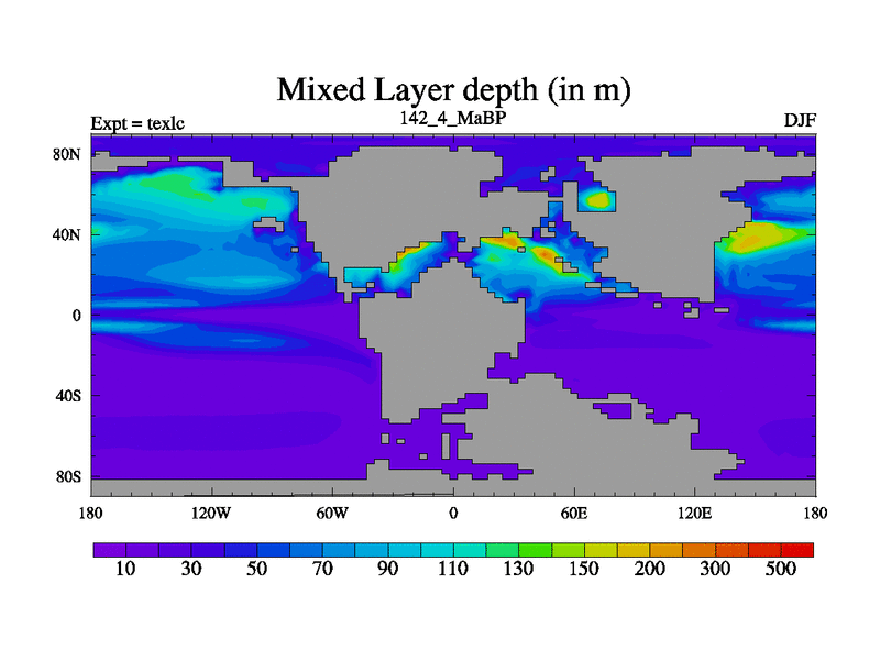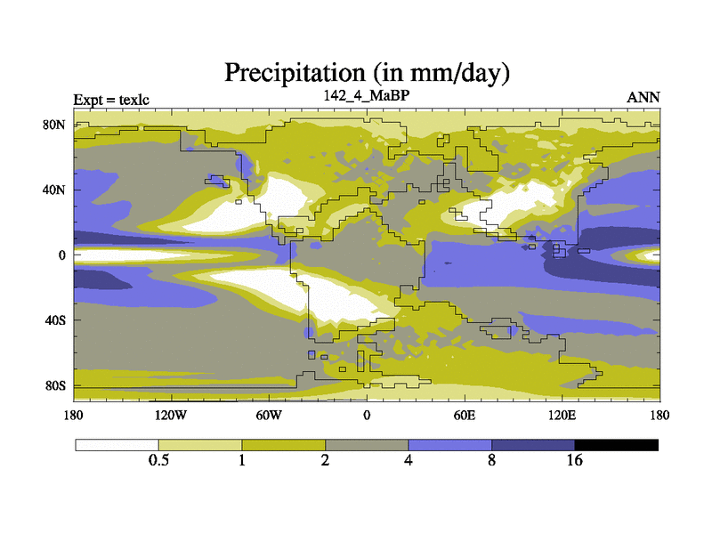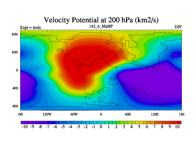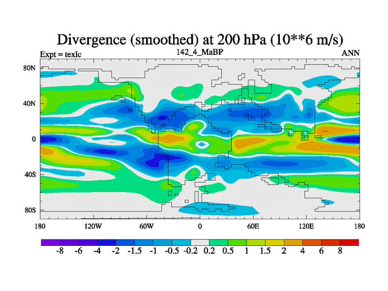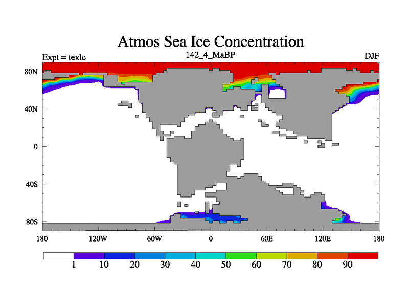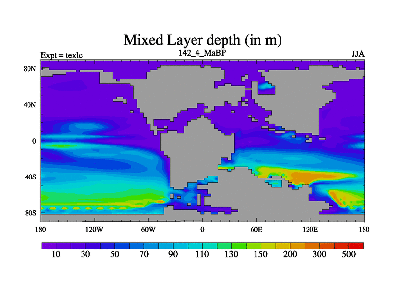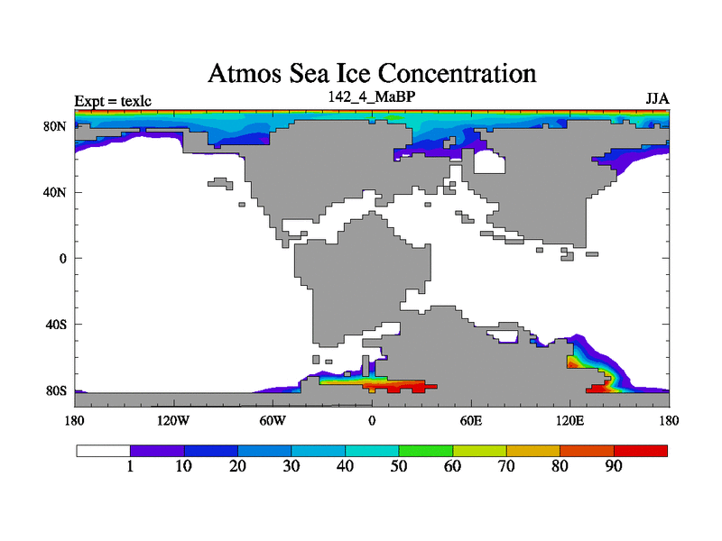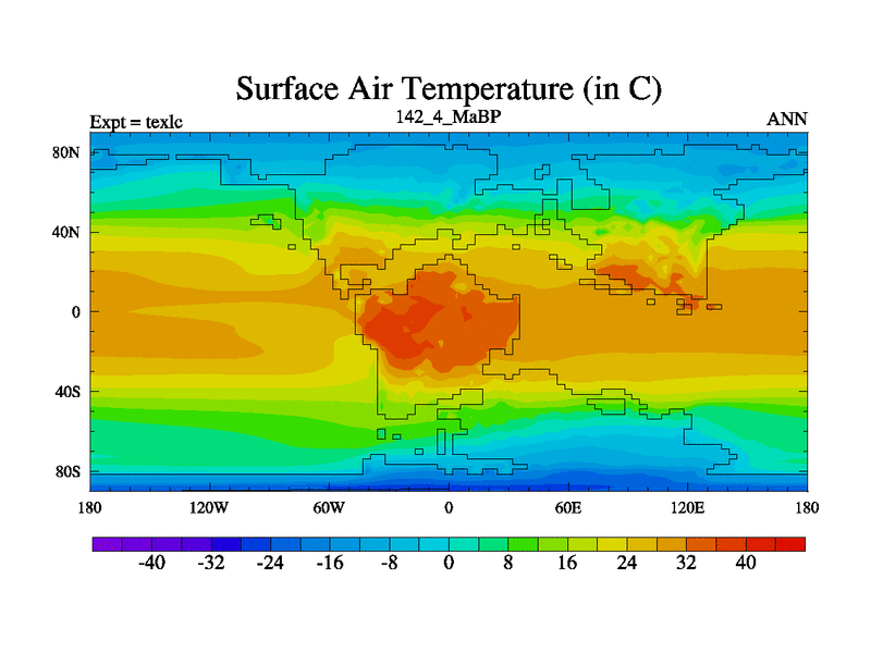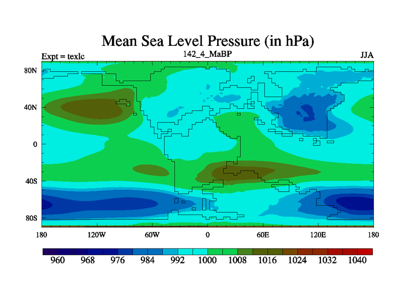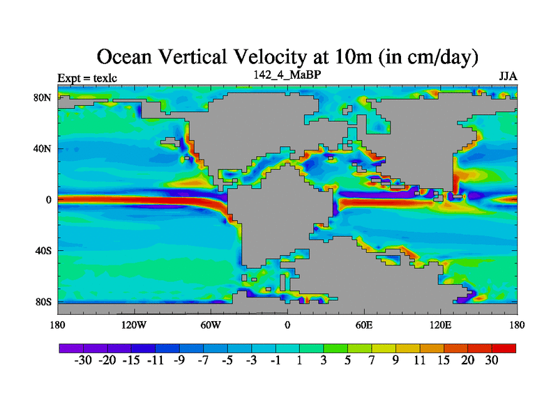 This is the 142.4 Ma simulation using the Scotese palaeogeographies. High output extension of the 5000 year spinup.