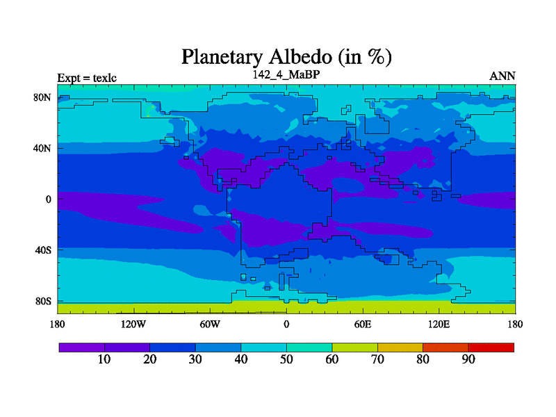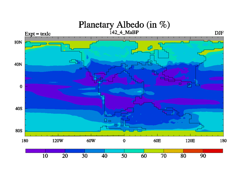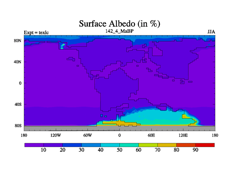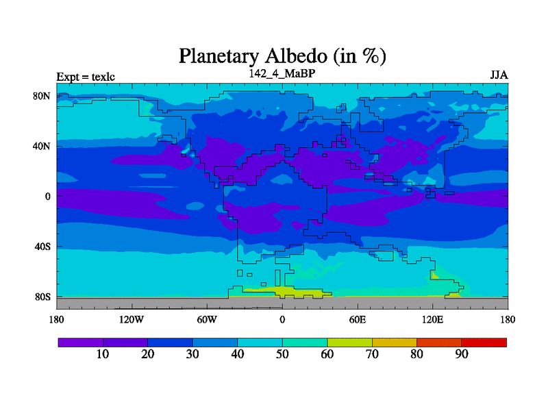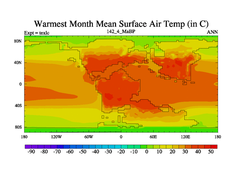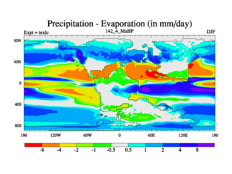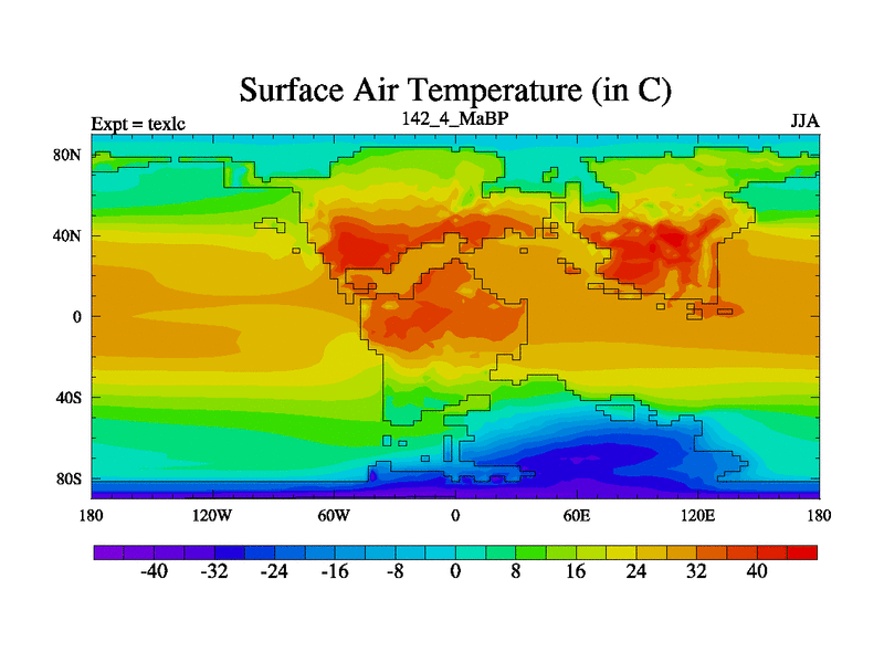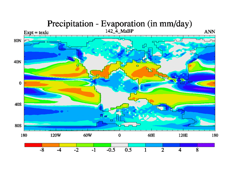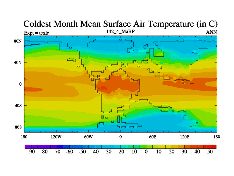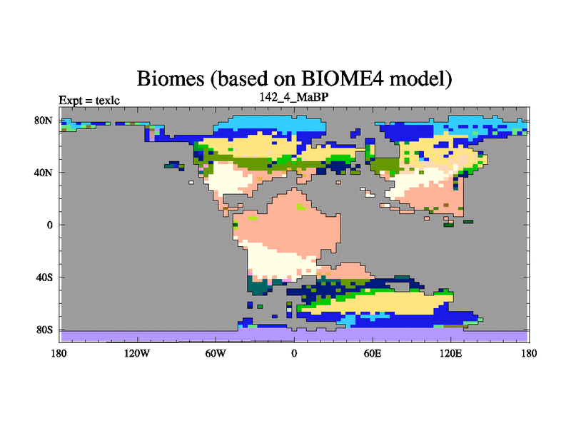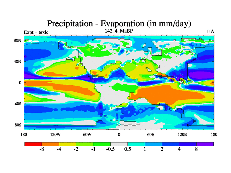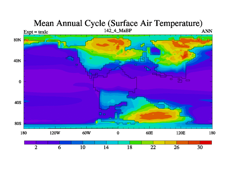 This is the 142.4 Ma simulation using the Scotese palaeogeographies. High output extension of the 5000 year spinup.