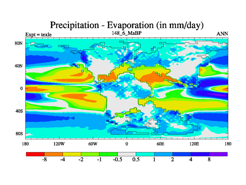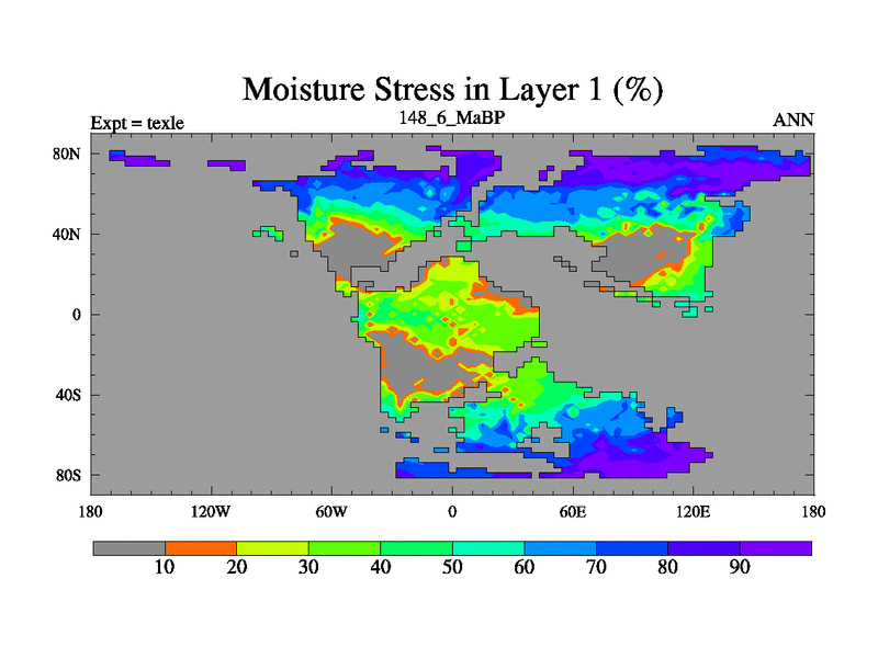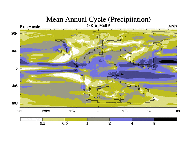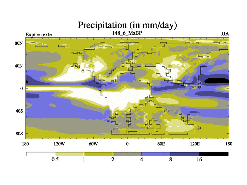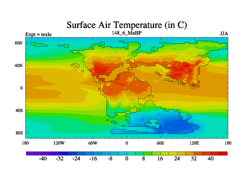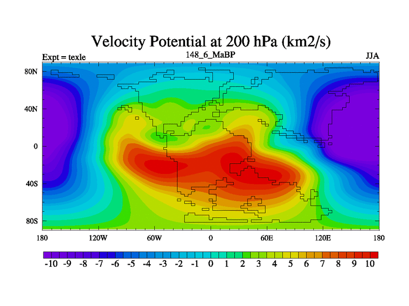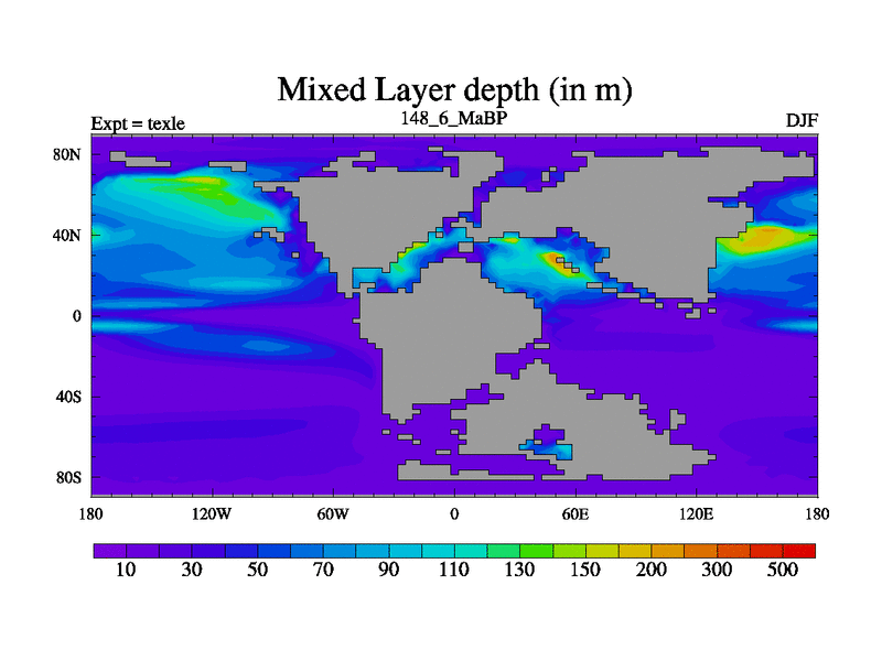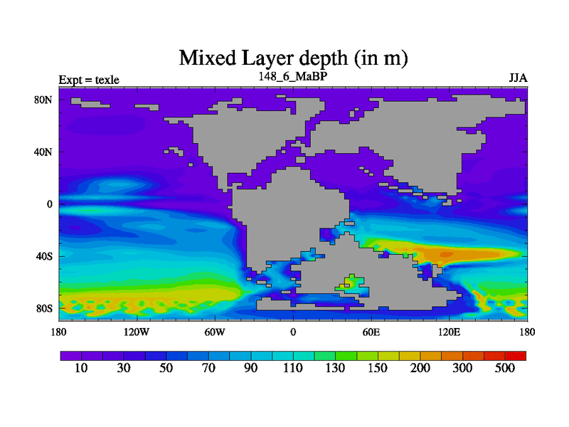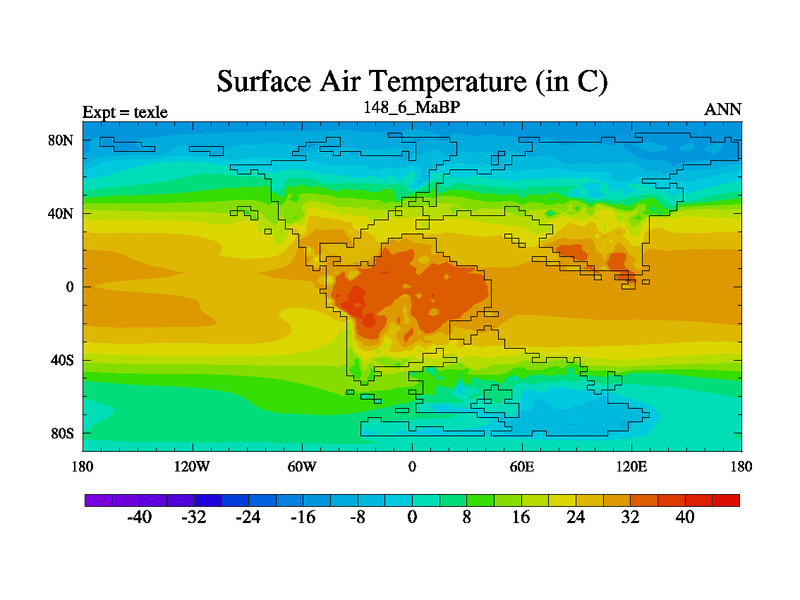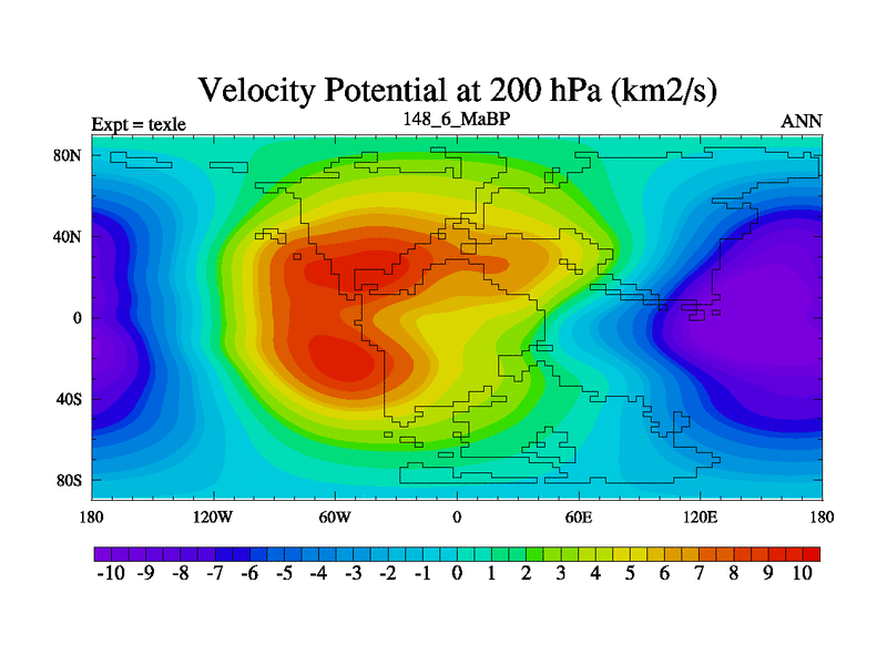 This is the 148.6 Ma simulation using the Scotese palaeogeographies. High output extension of the 5000 year spinup.