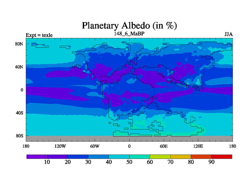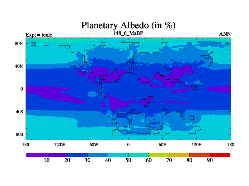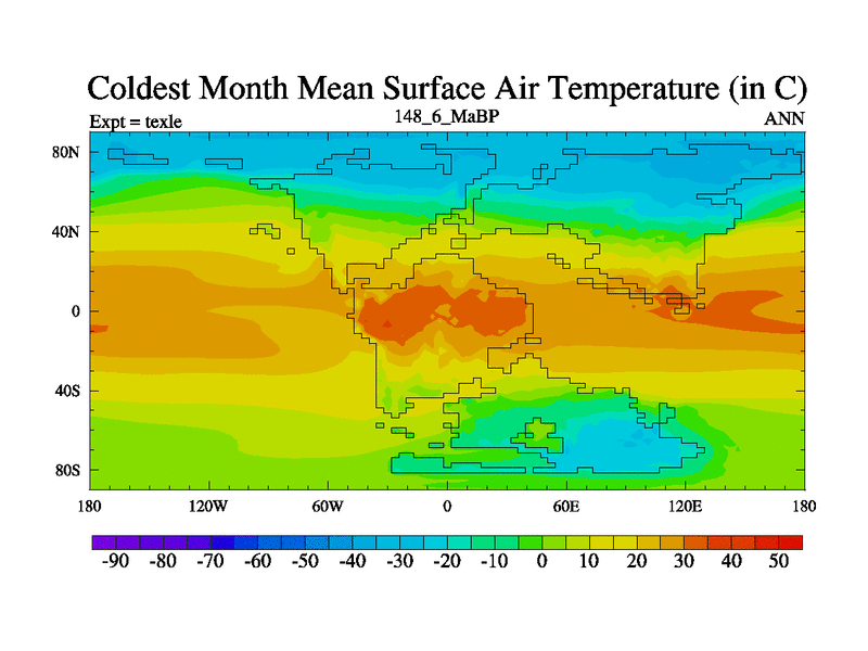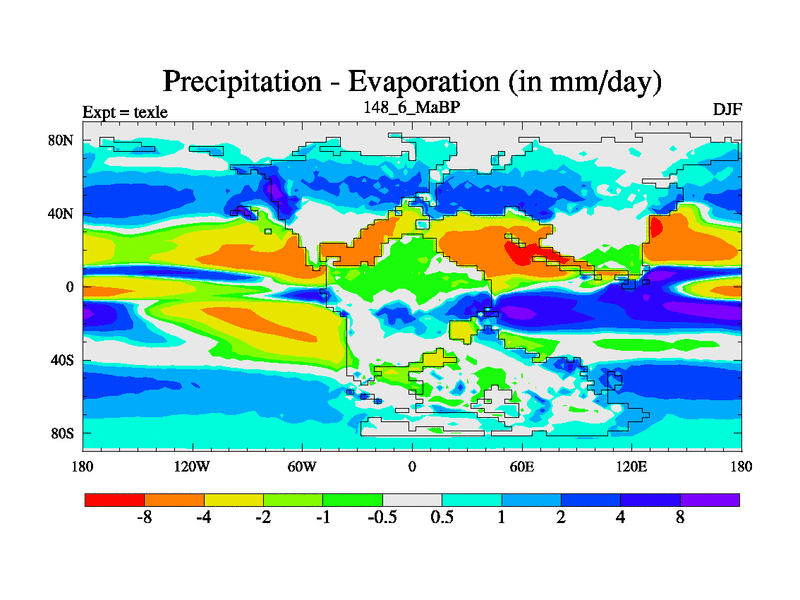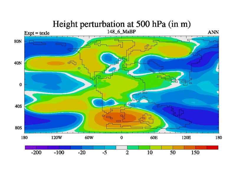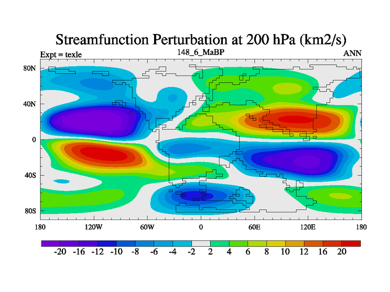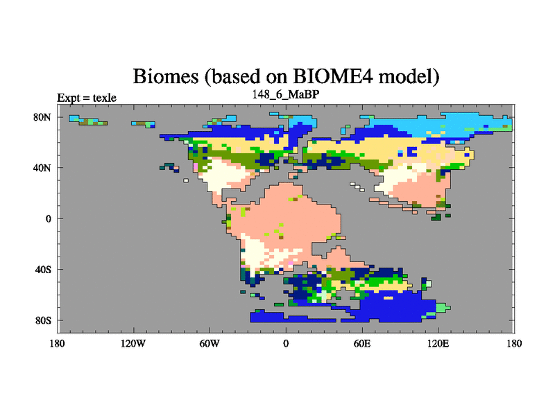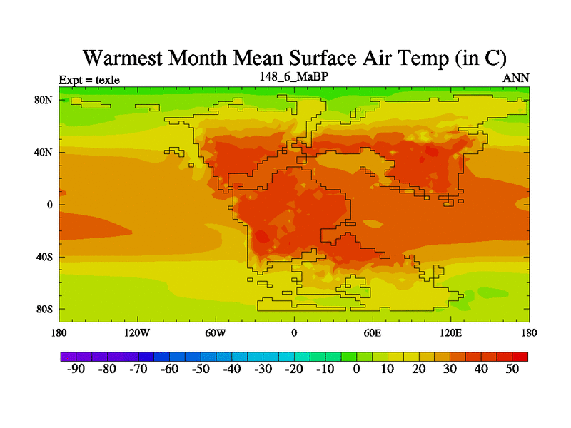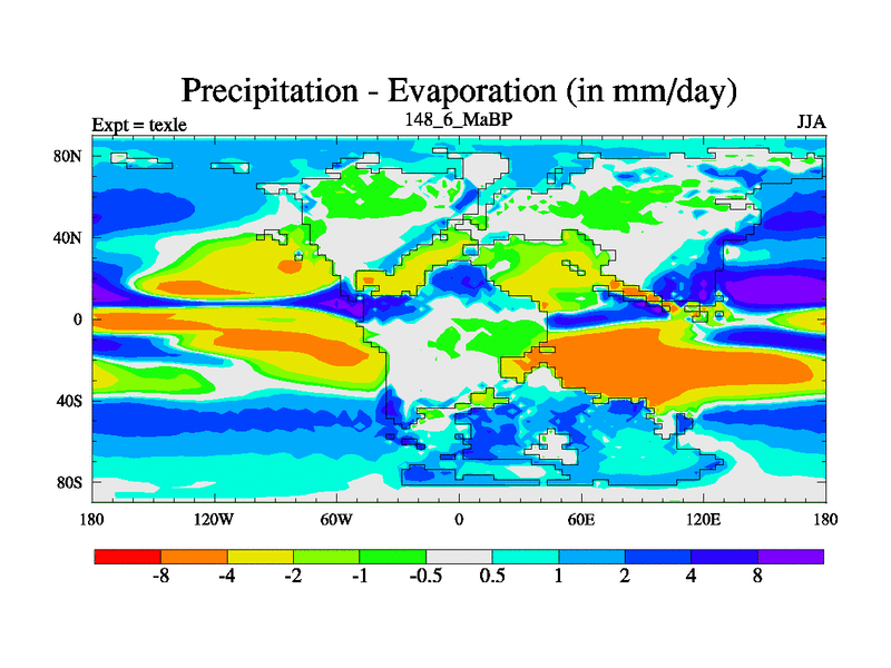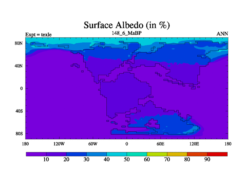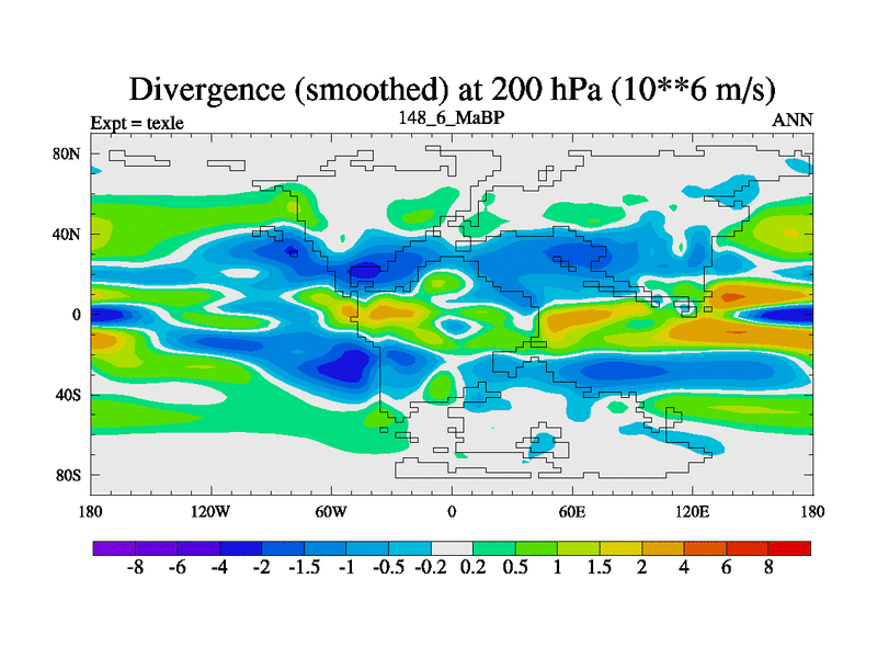 This is the 148.6 Ma simulation using the Scotese palaeogeographies. High output extension of the 5000 year spinup.