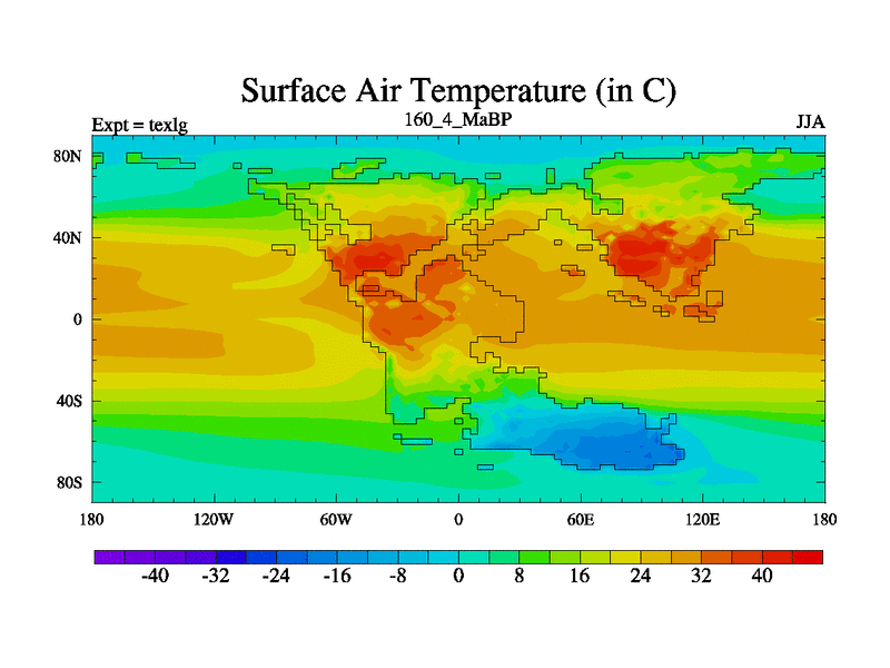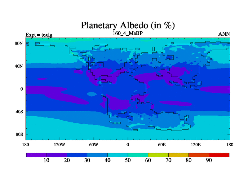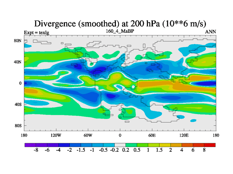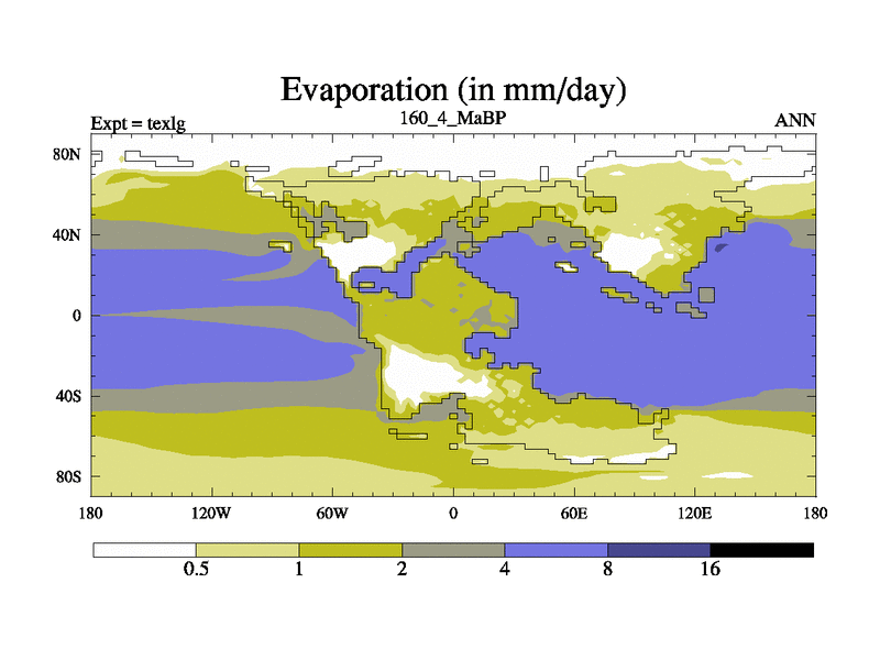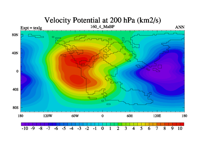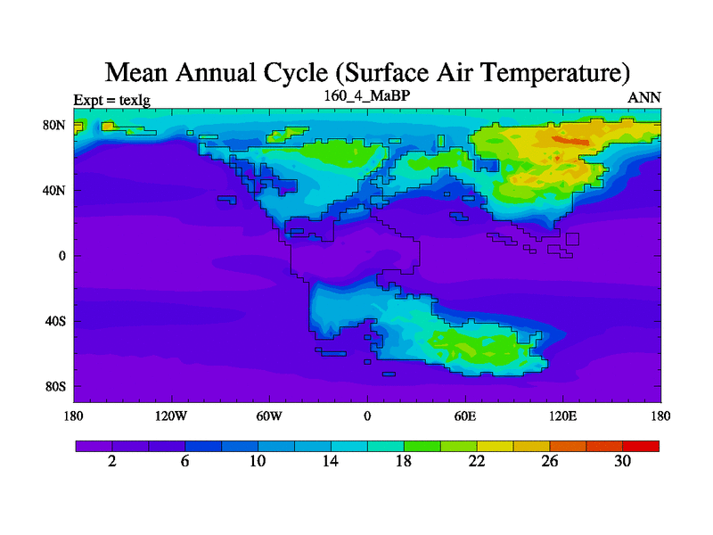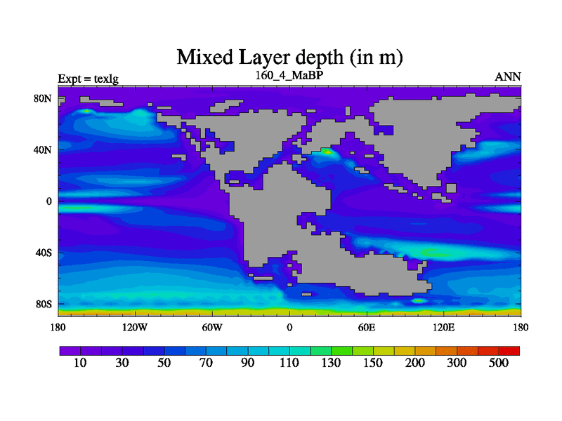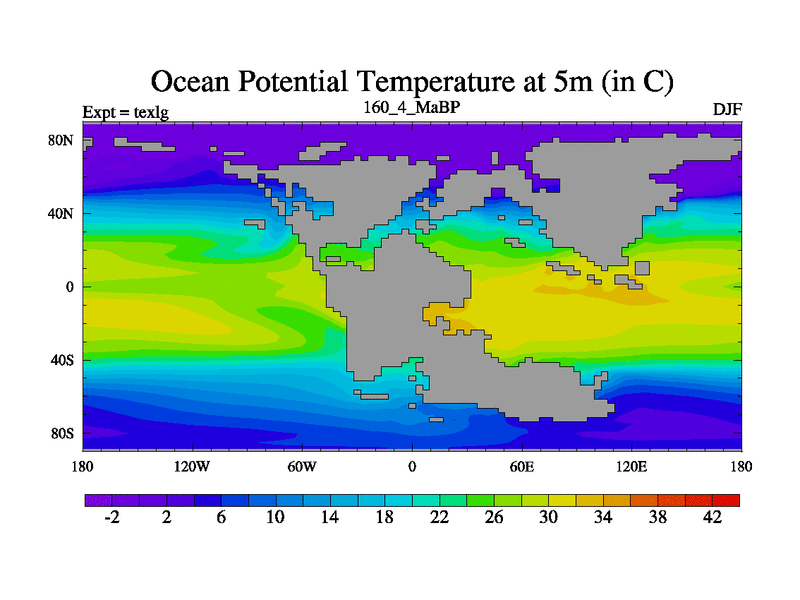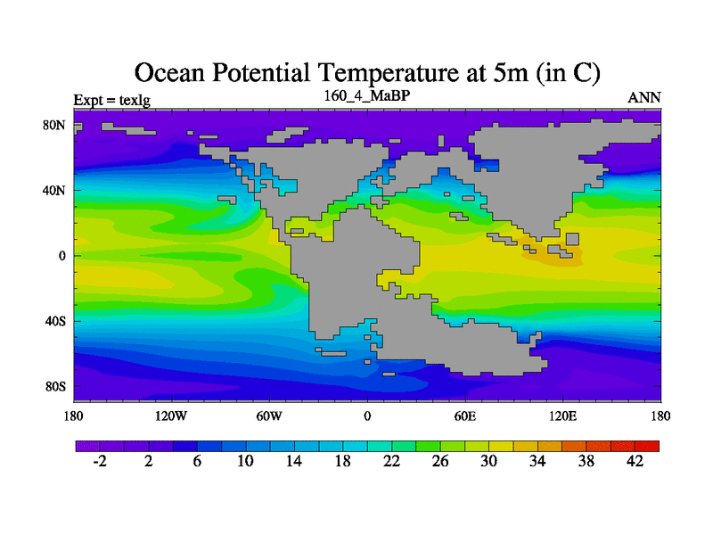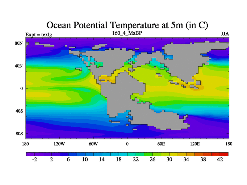 This is the 160.4 Ma simulation using the Scotese palaeogeographies. High output extension of the 5000 year spinup.
