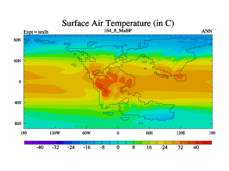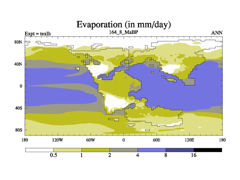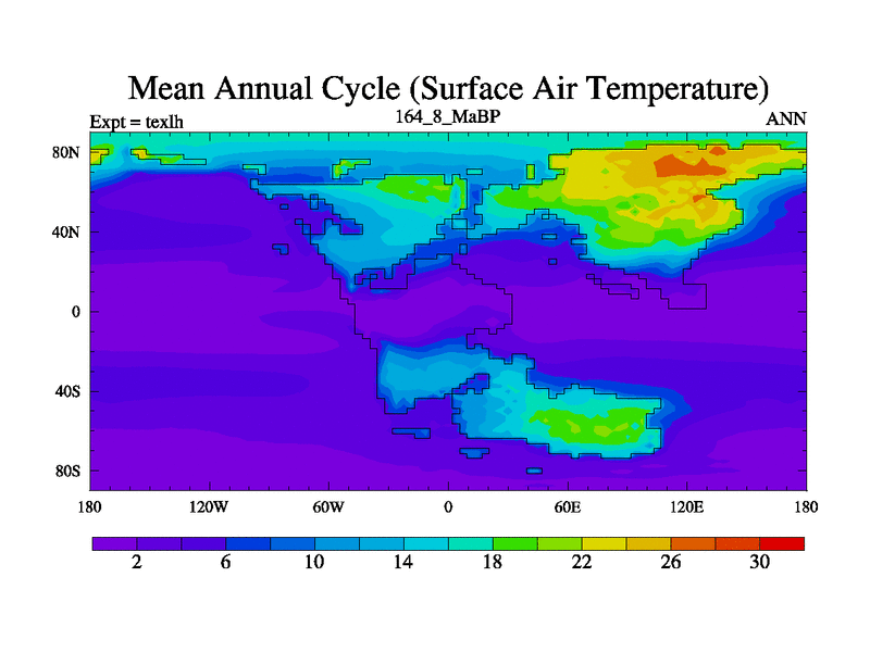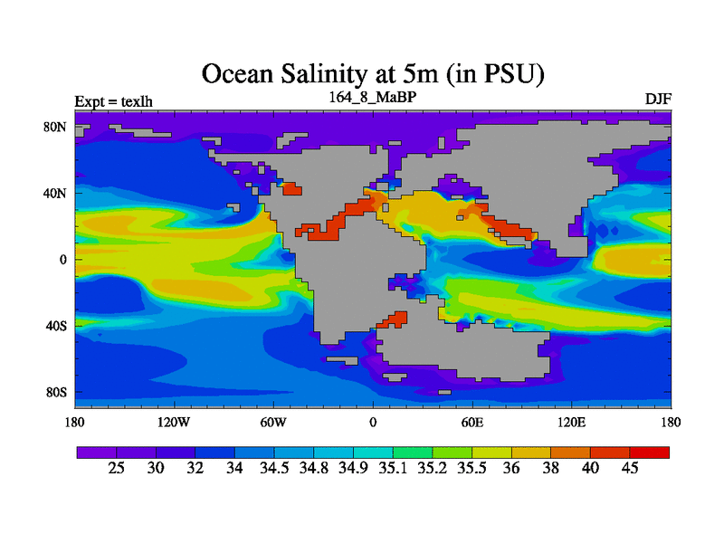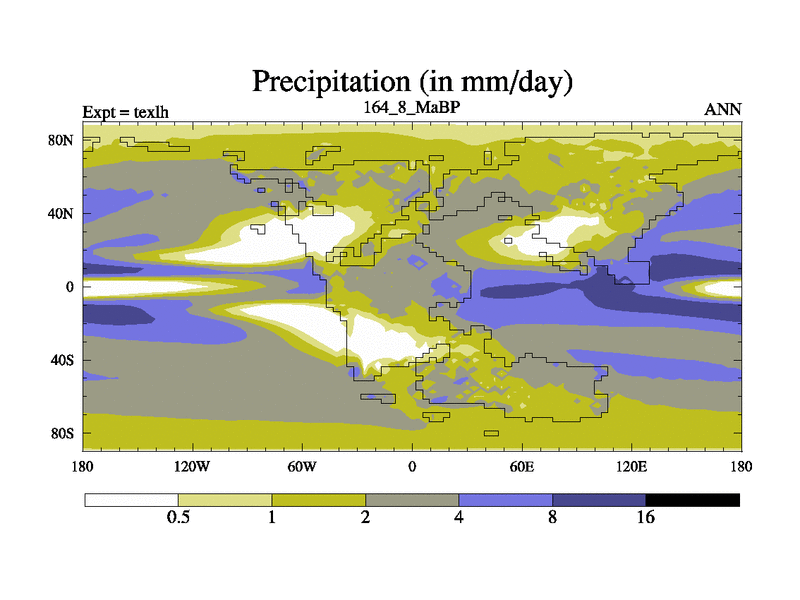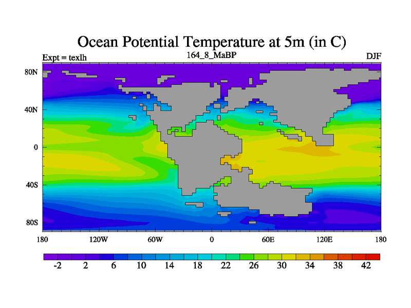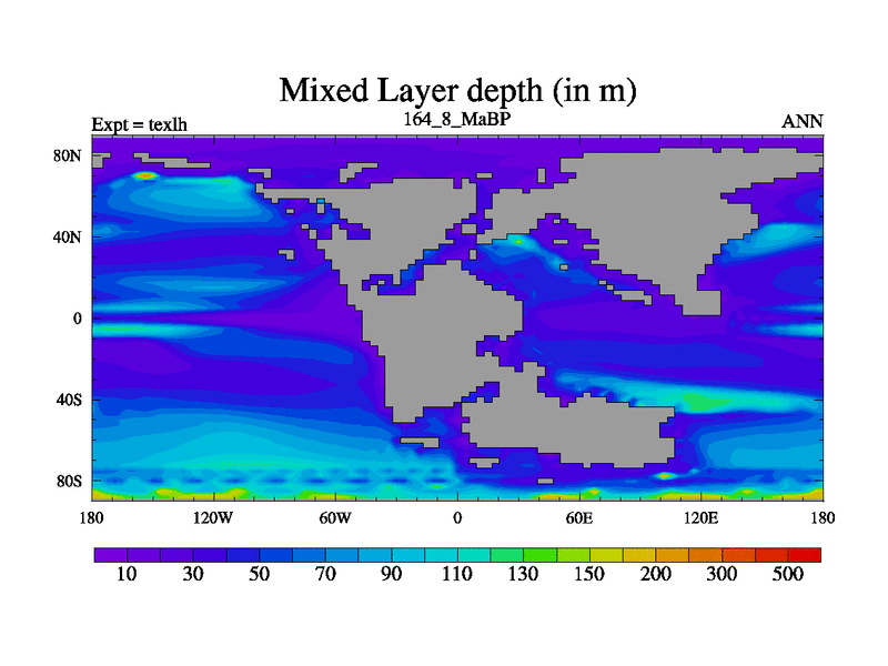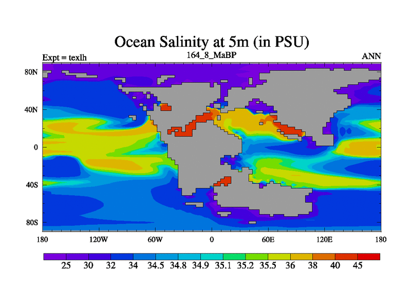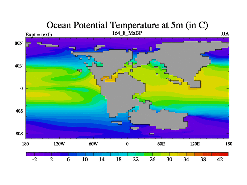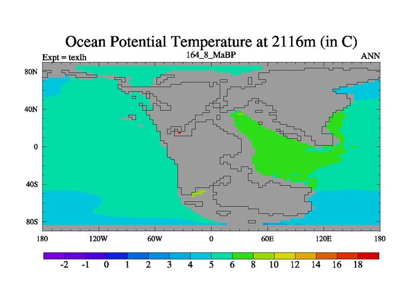 This is the 164.8 Ma simulation using the Scotese palaeogeographies. High output extension of the 5000 year spinup.