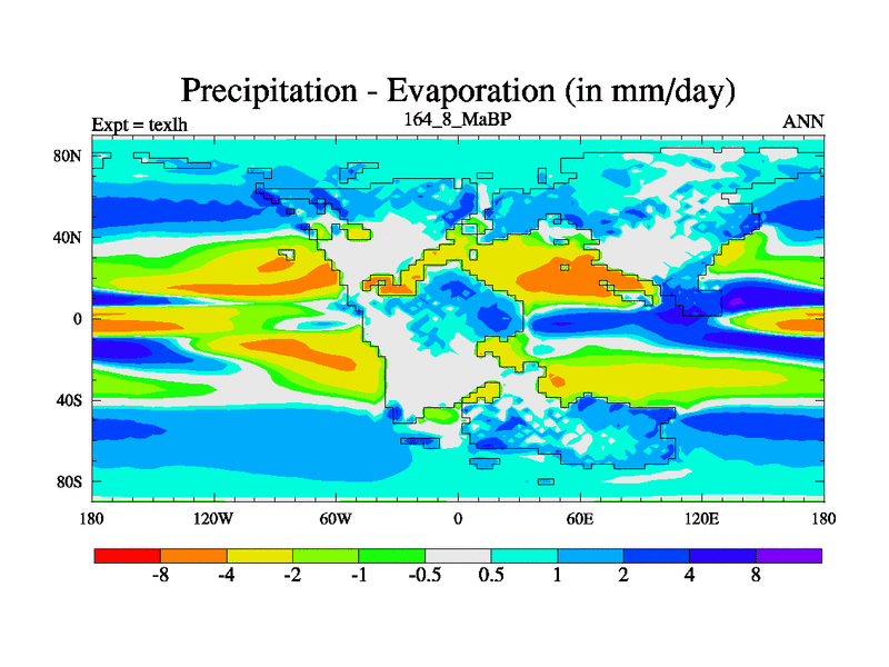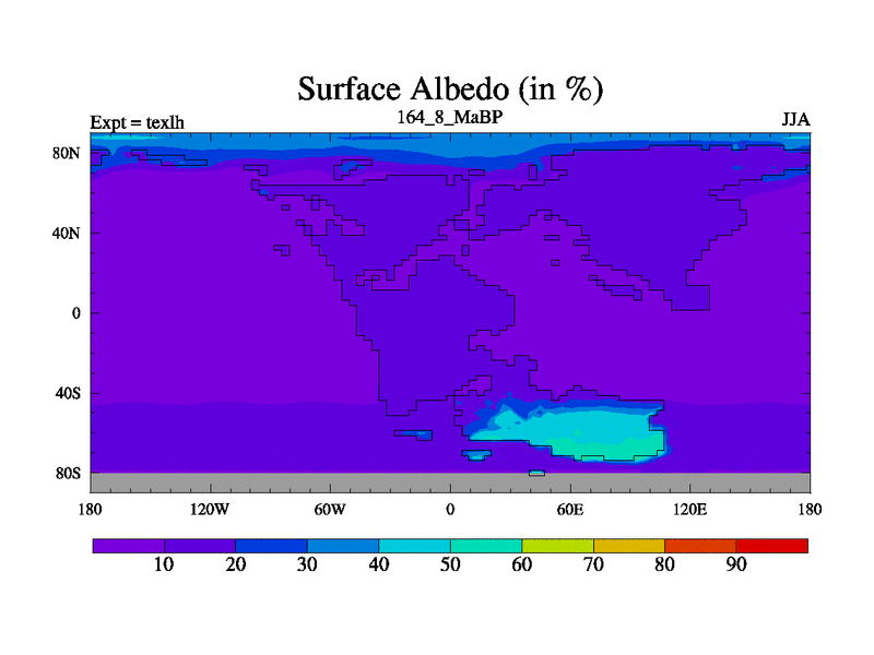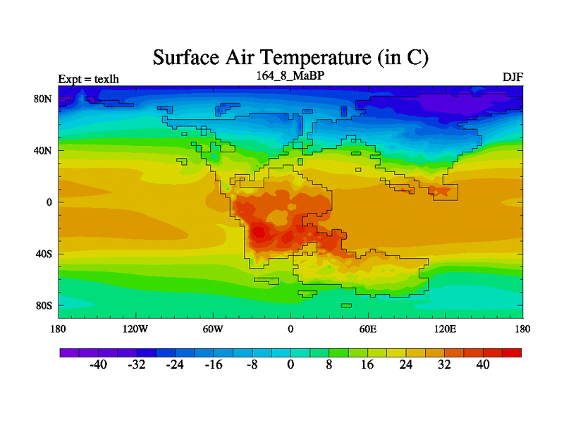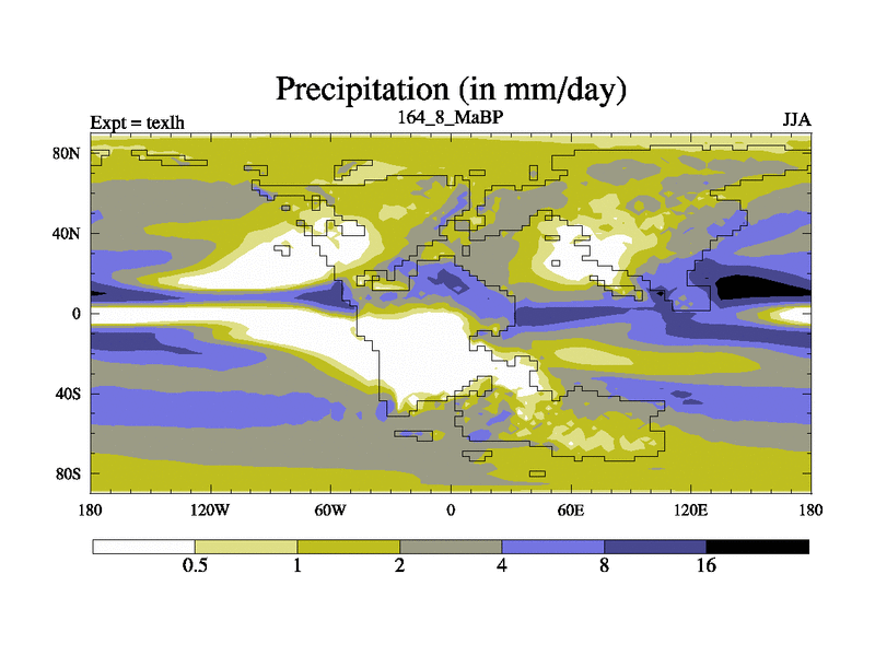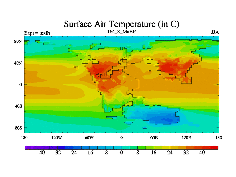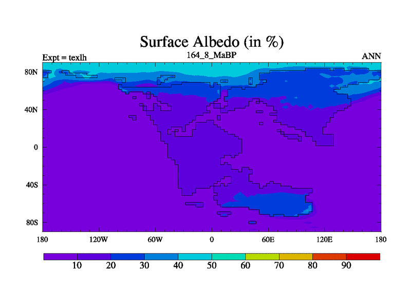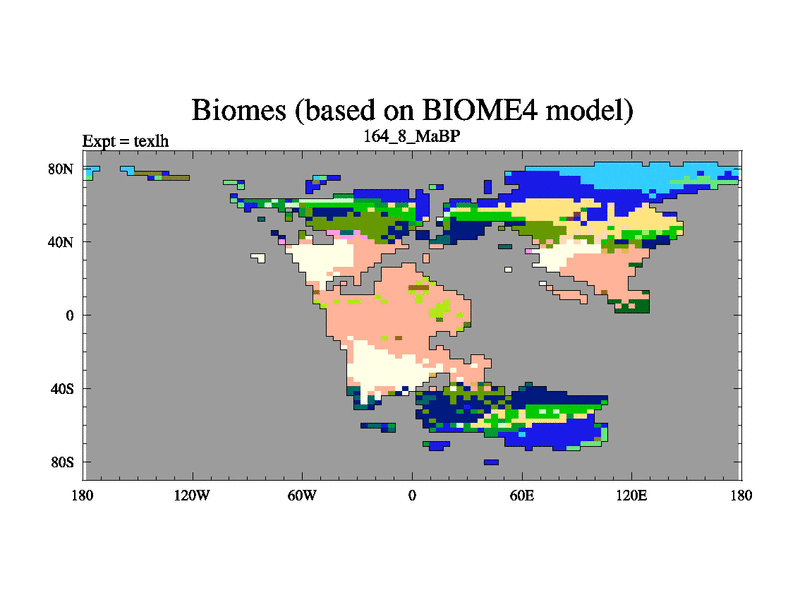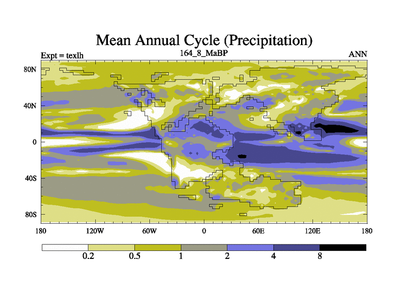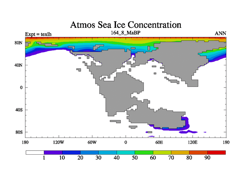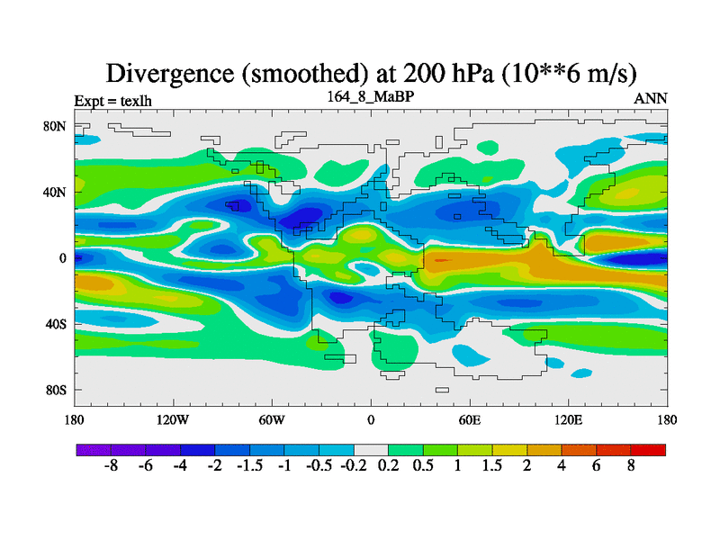 This is the 164.8 Ma simulation using the Scotese palaeogeographies. High output extension of the 5000 year spinup.